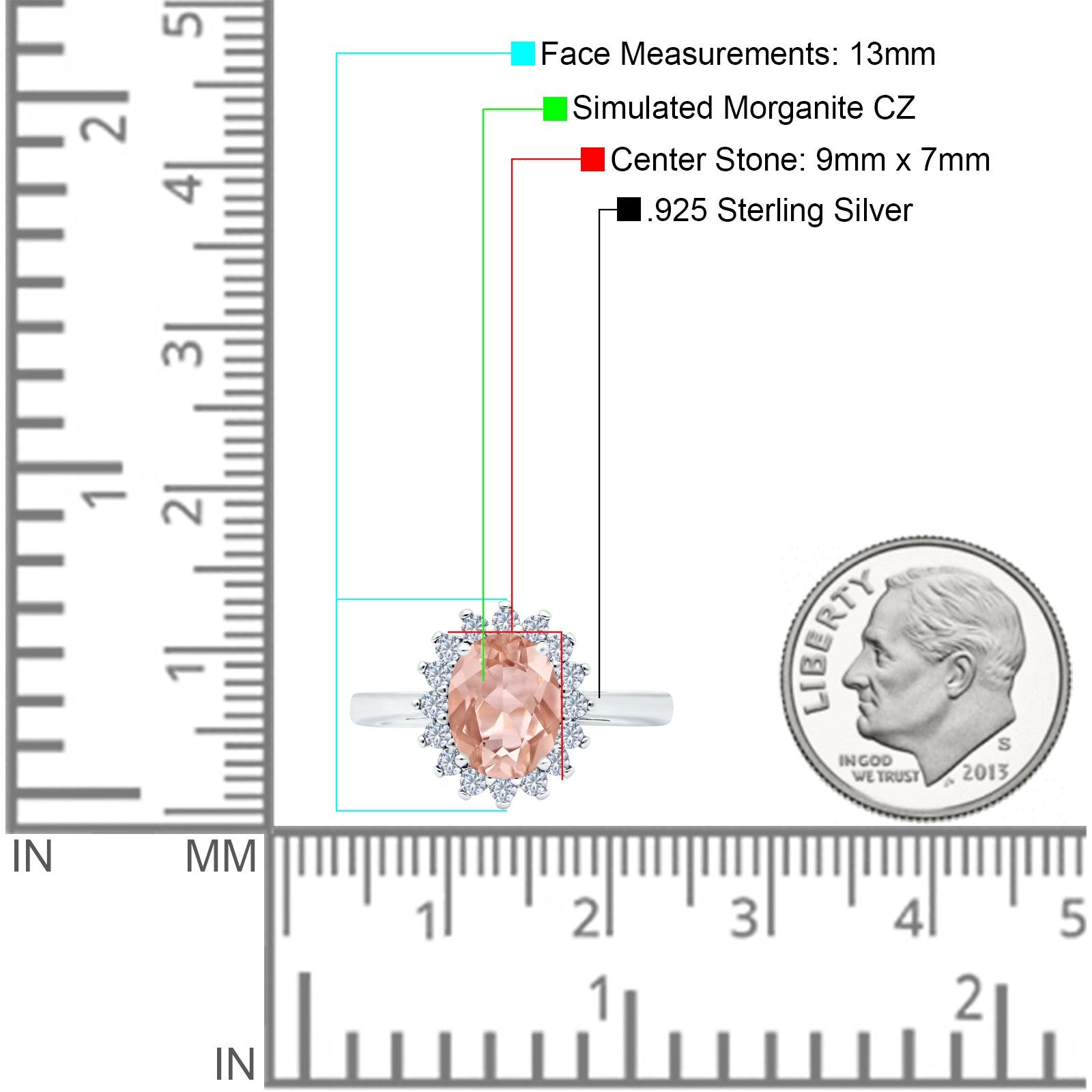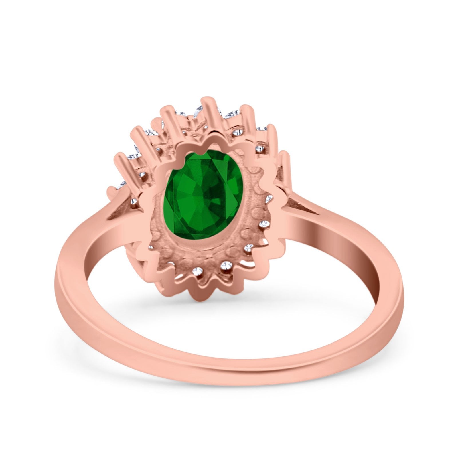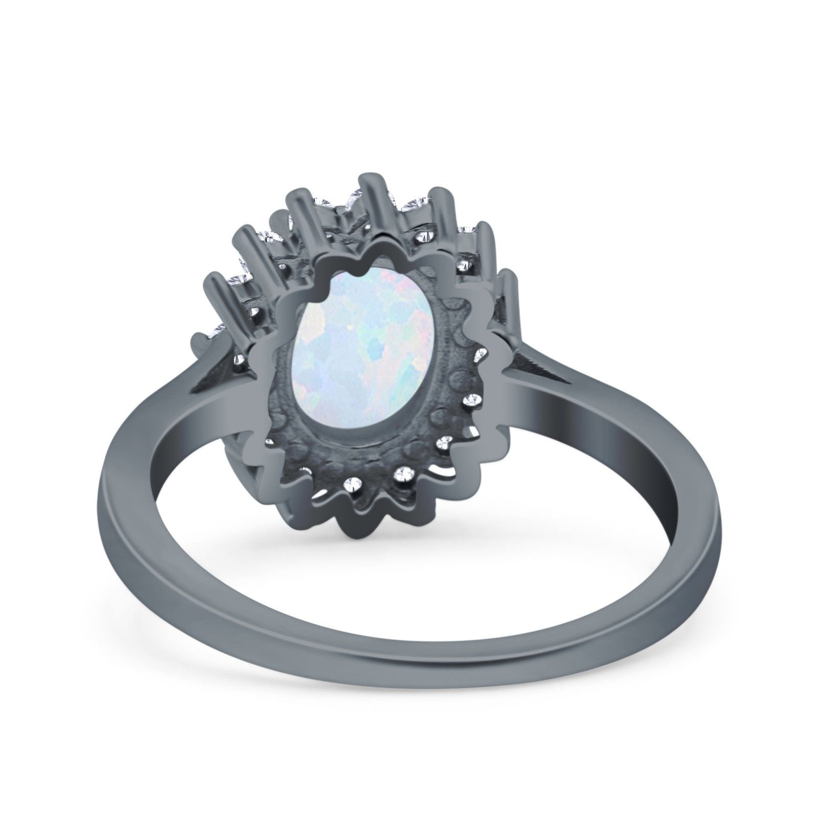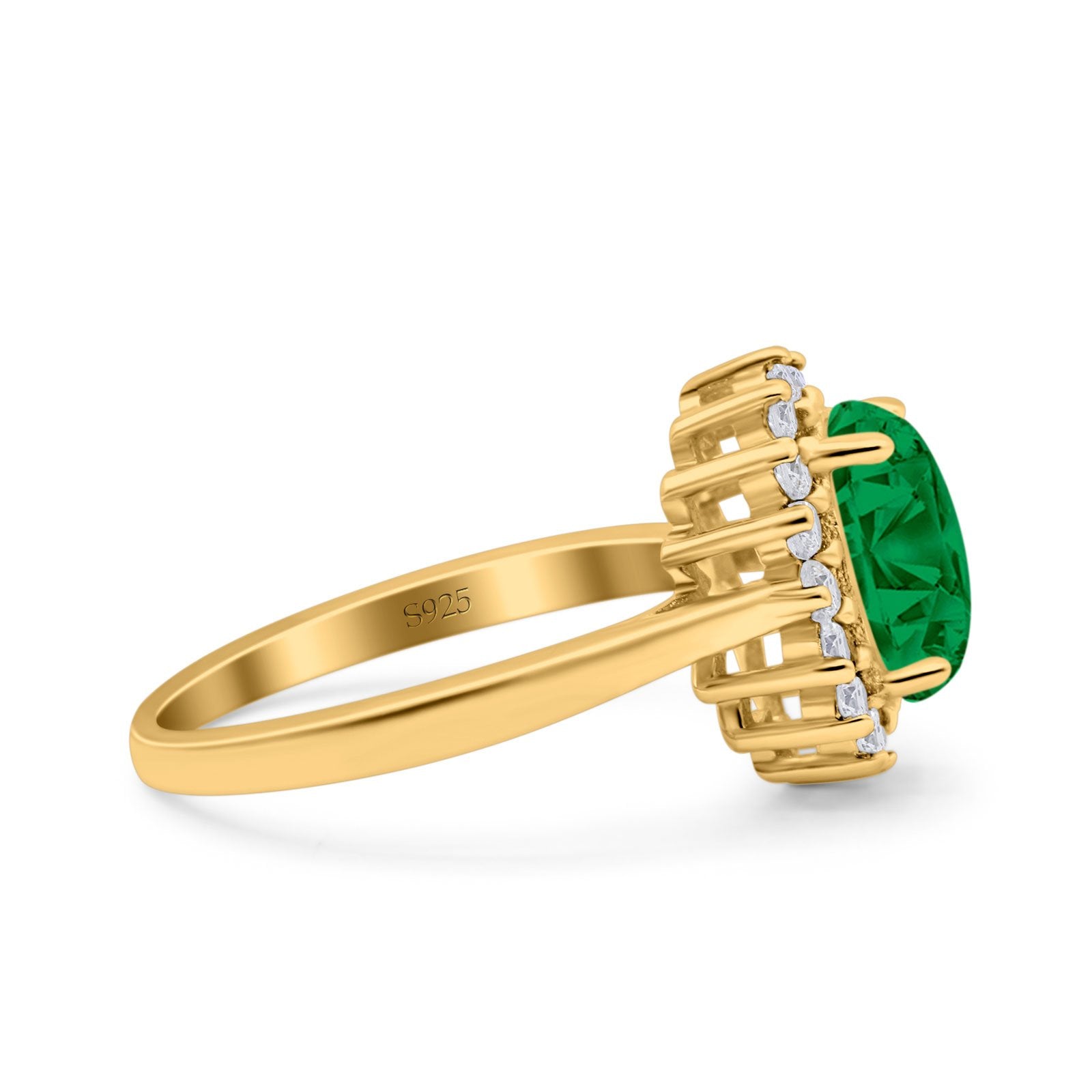 Halo Art Deco Oval Wedding Engagement Bridal Ring Round Simulated Cubic Zirconia 925 Sterling Silver