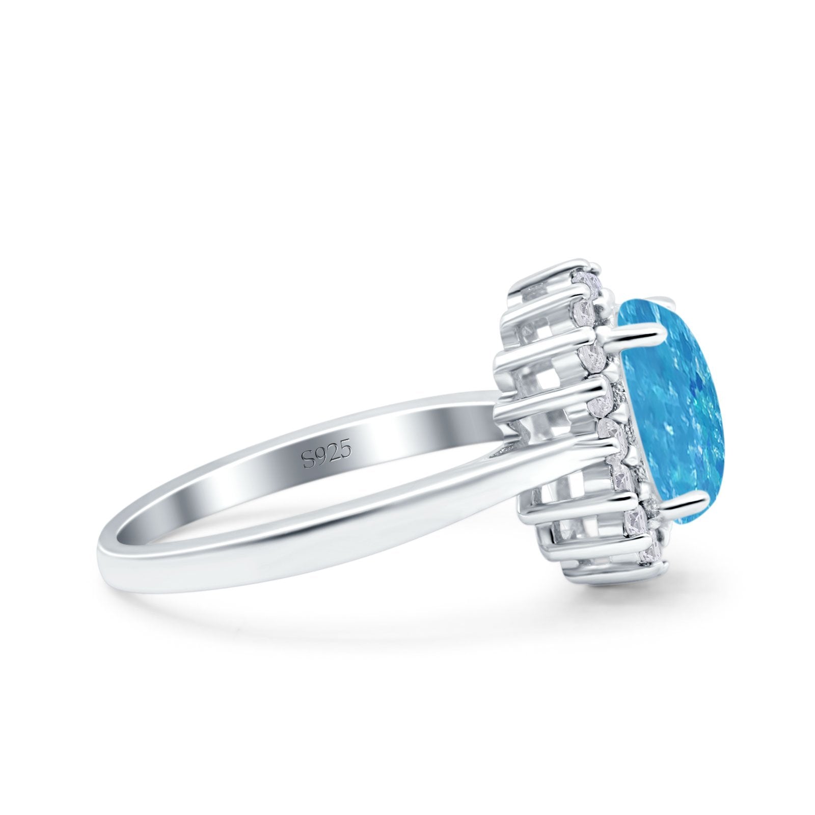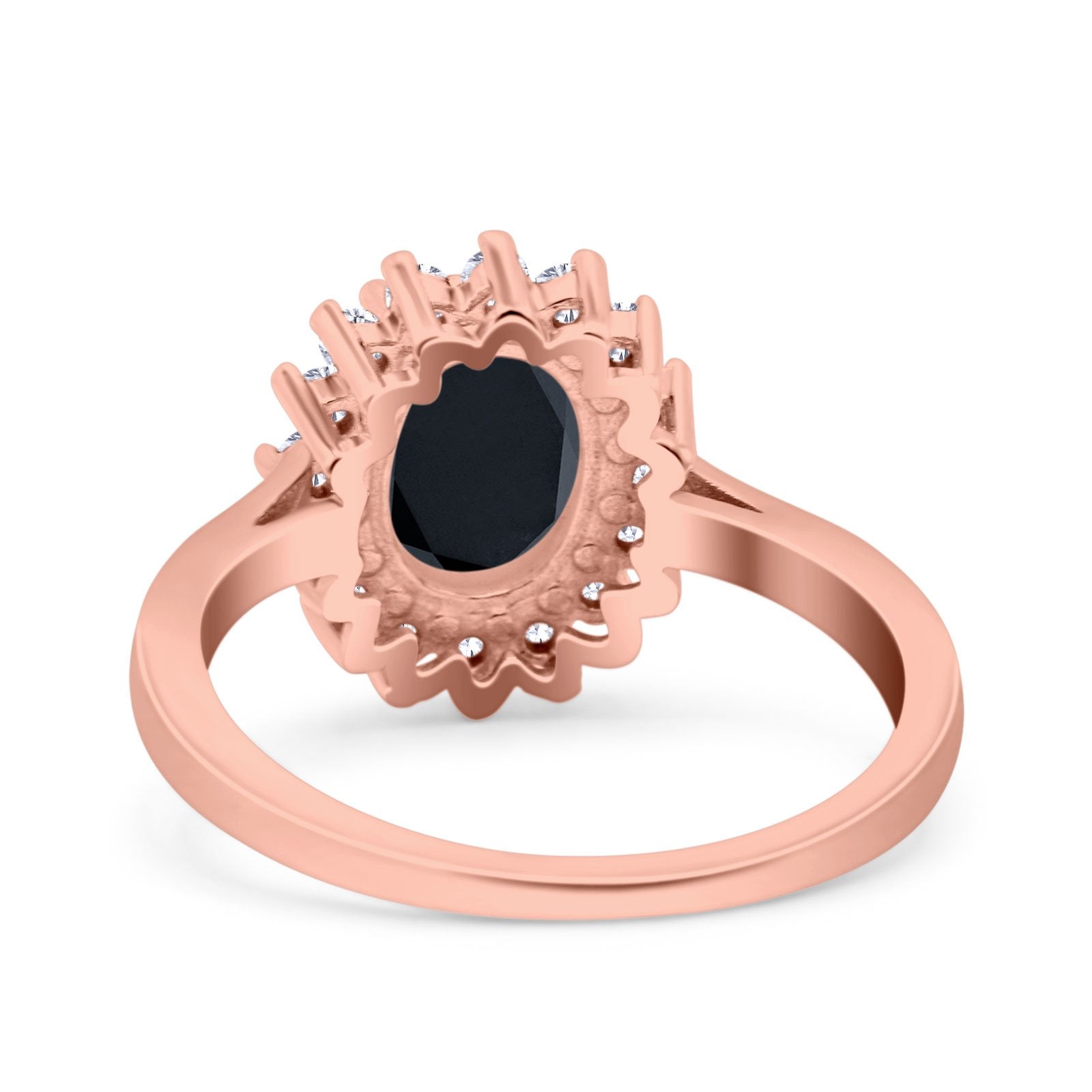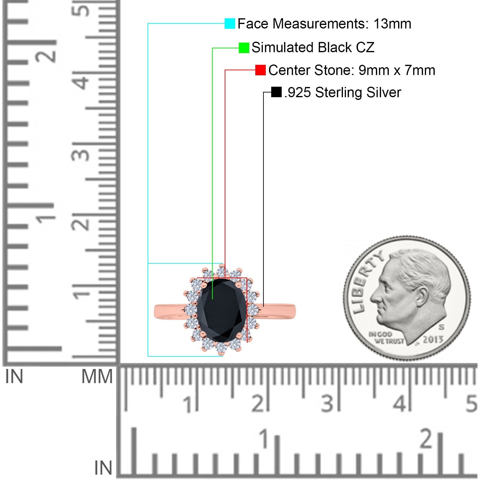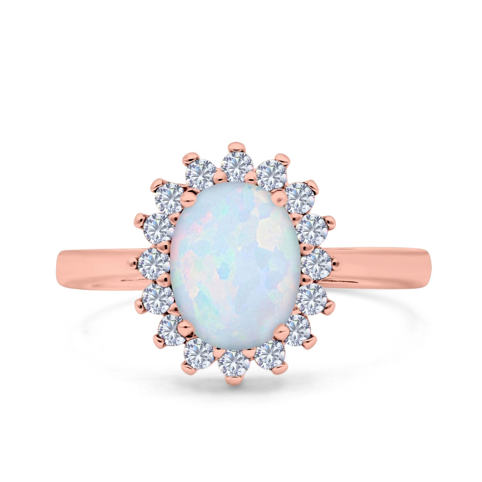 Halo Art Deco Oval Wedding Engagement Bridal Ring Round Simulated Cubic Zirconia 925 Sterling Silver