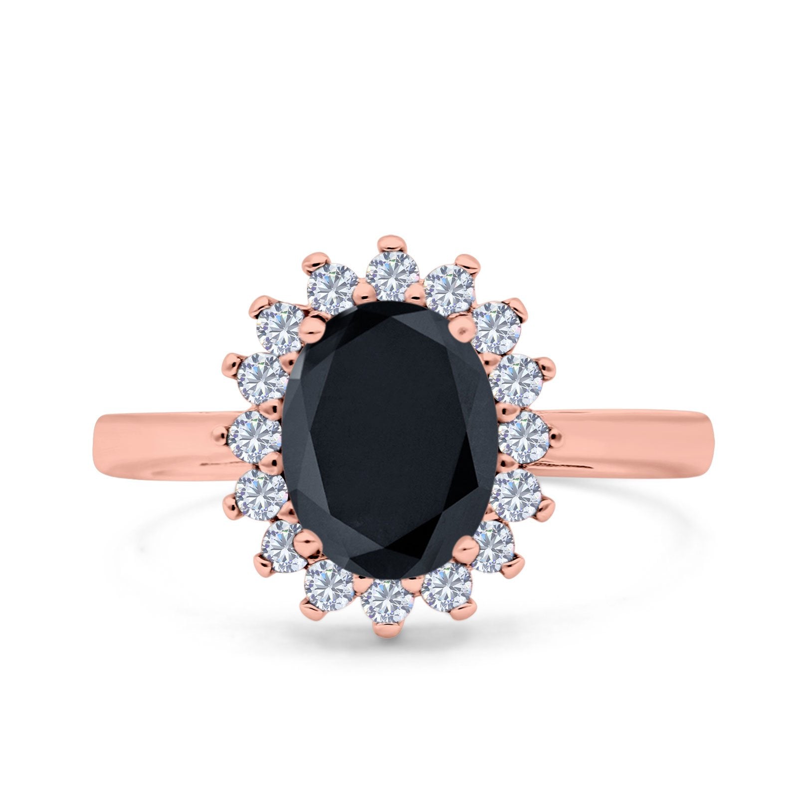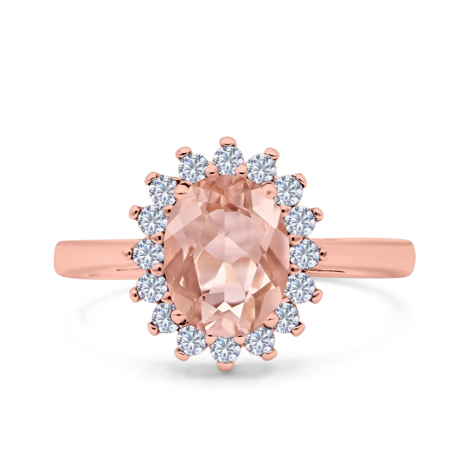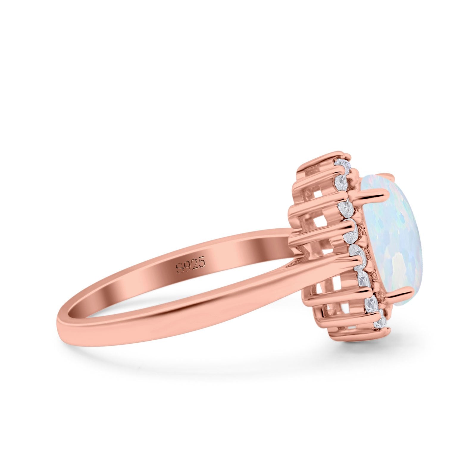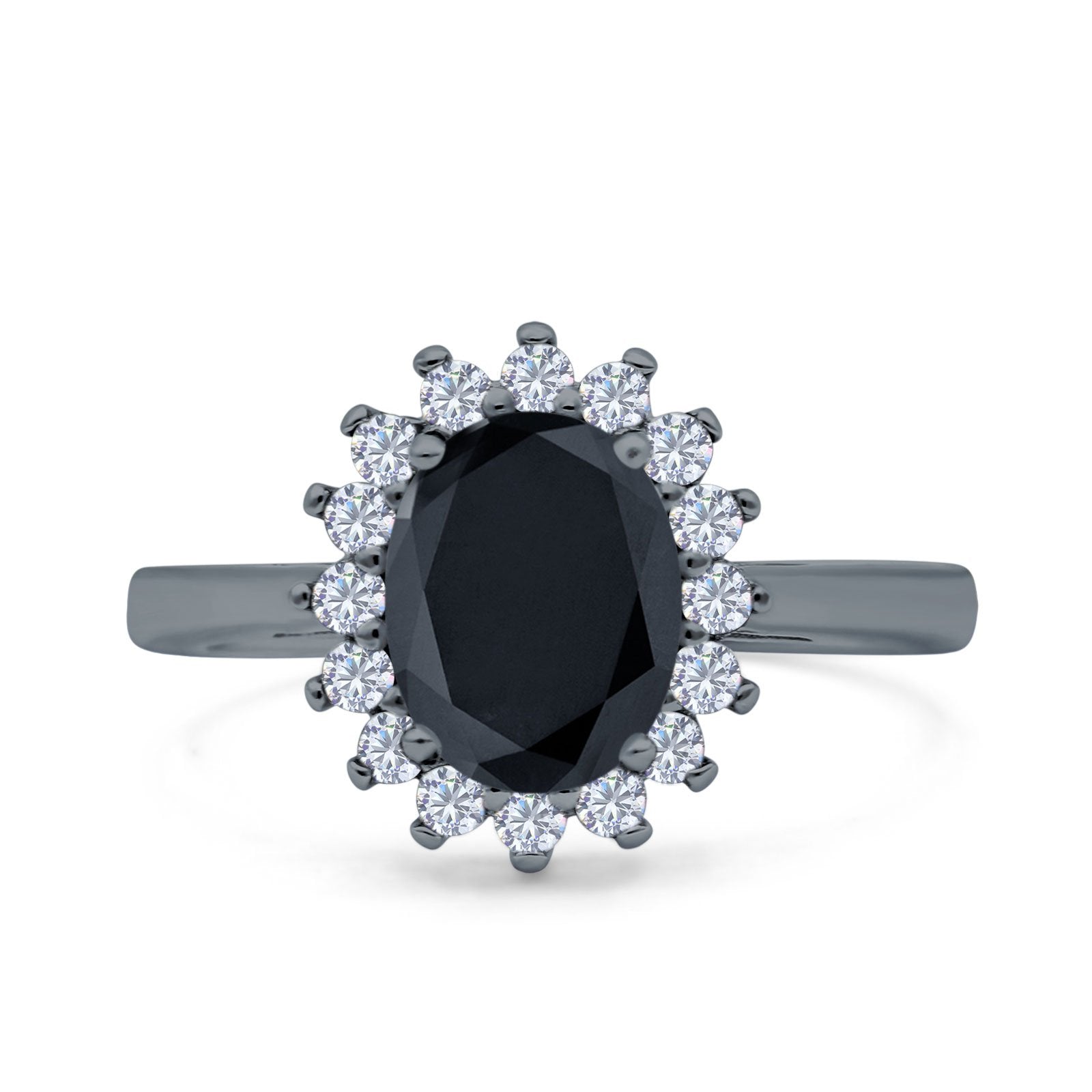 Halo Art Deco Oval Wedding Engagement Bridal Ring Round Simulated Cubic Zirconia 925 Sterling Silver