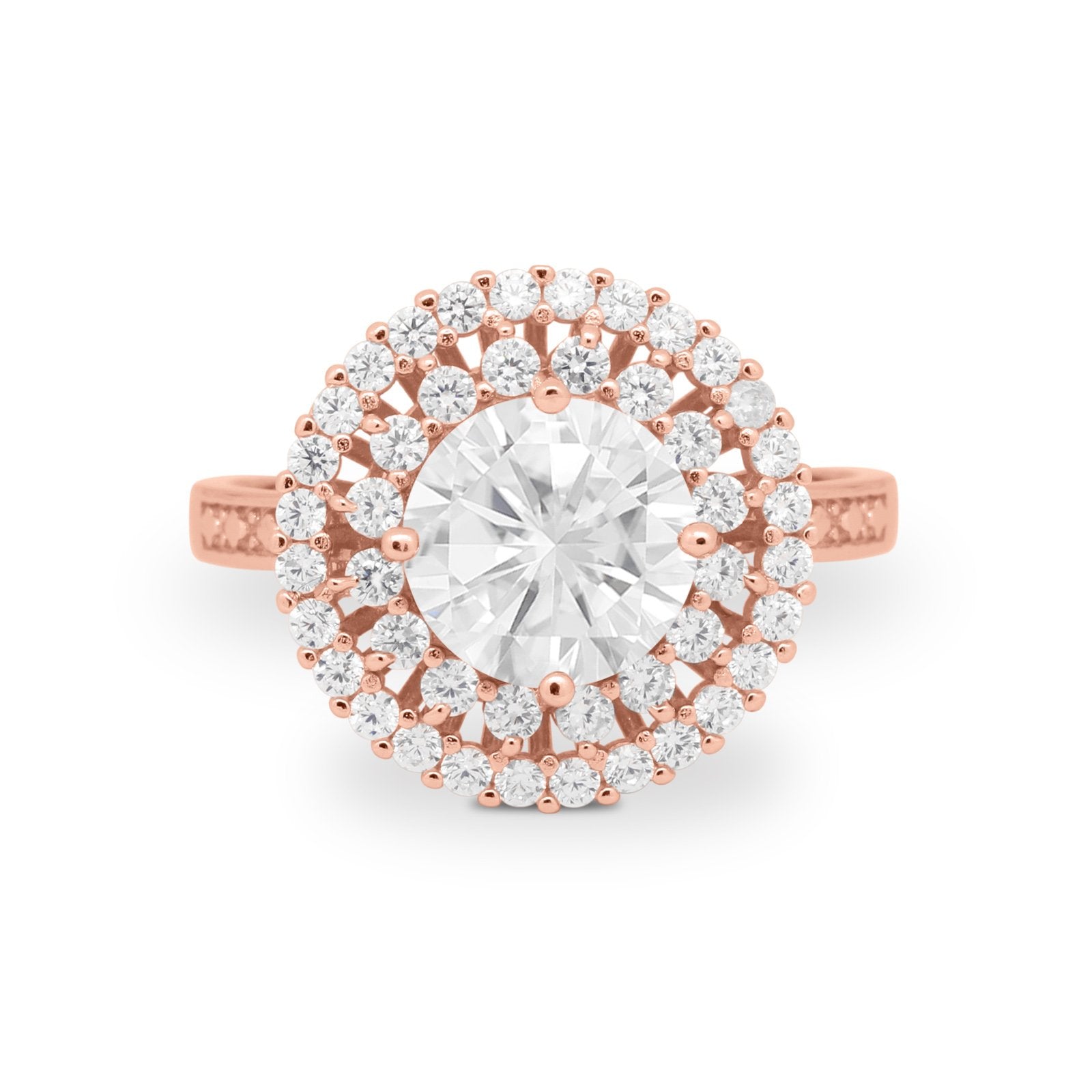 Halo Cocktail Wedding Engagement Ring Round Cubic Zirconia 925 Sterling Silver