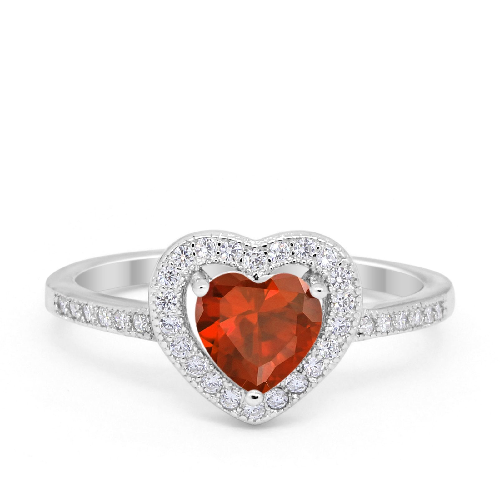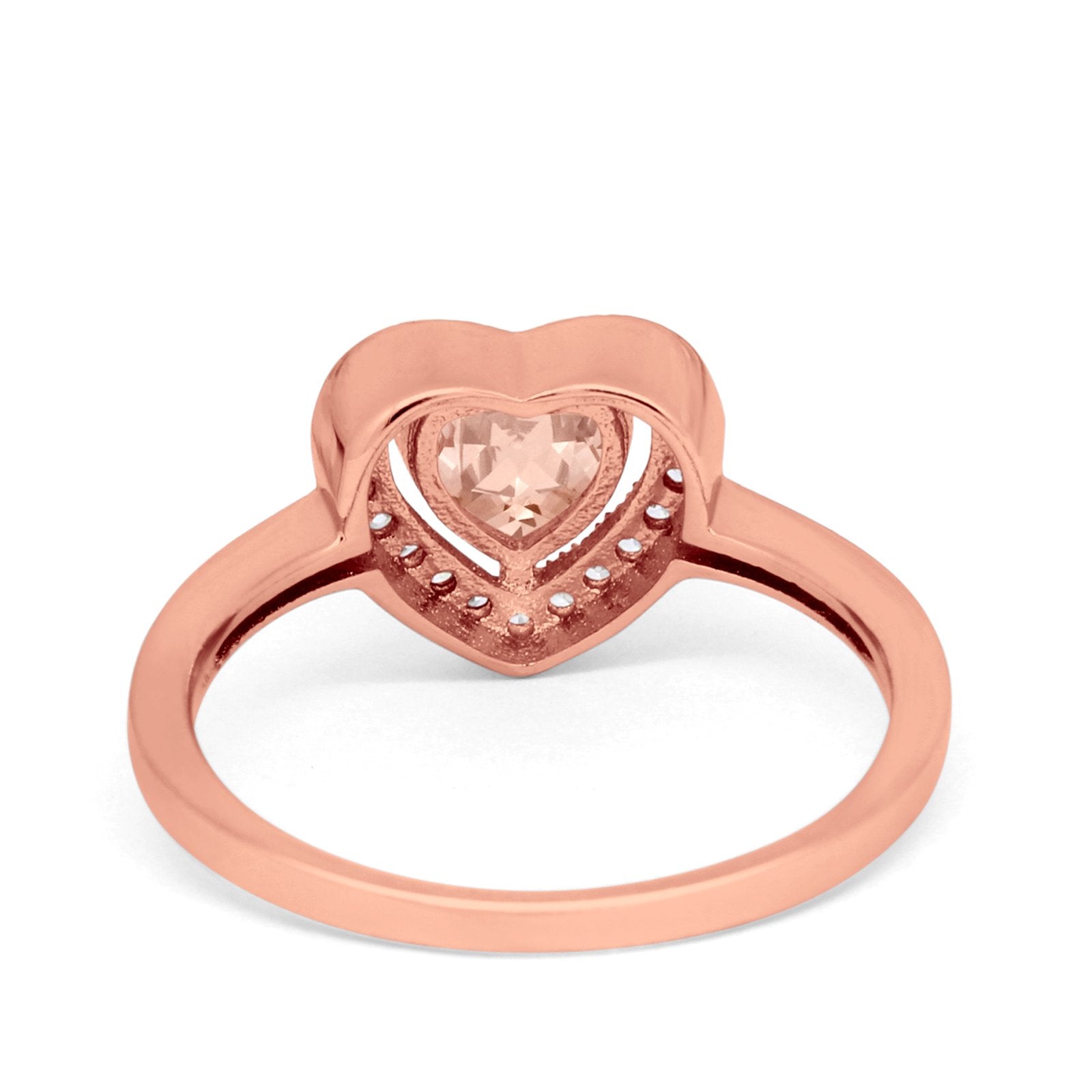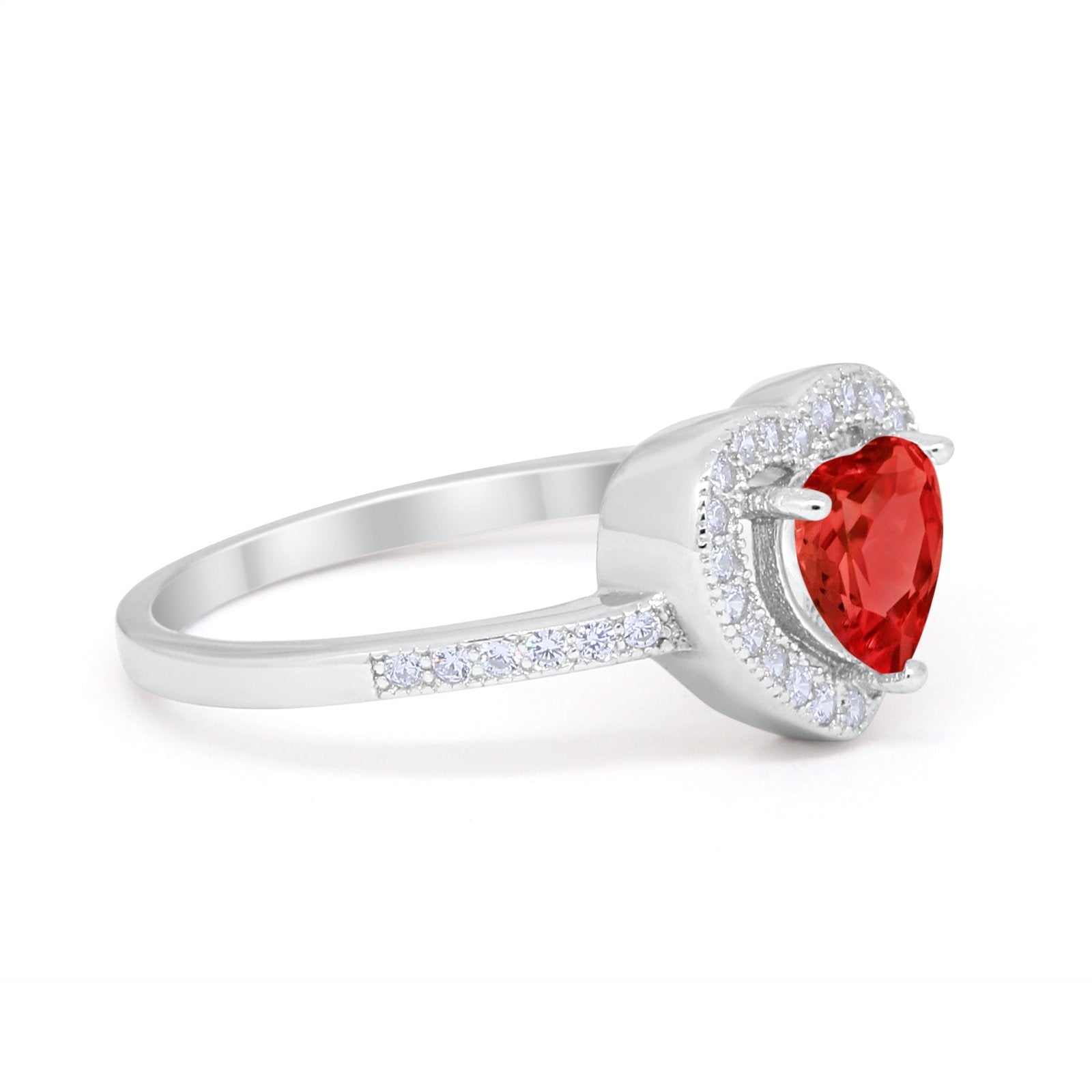 Halo Dazzling Heart Promise Ring Round Simulated CZ 925 Sterling Silver