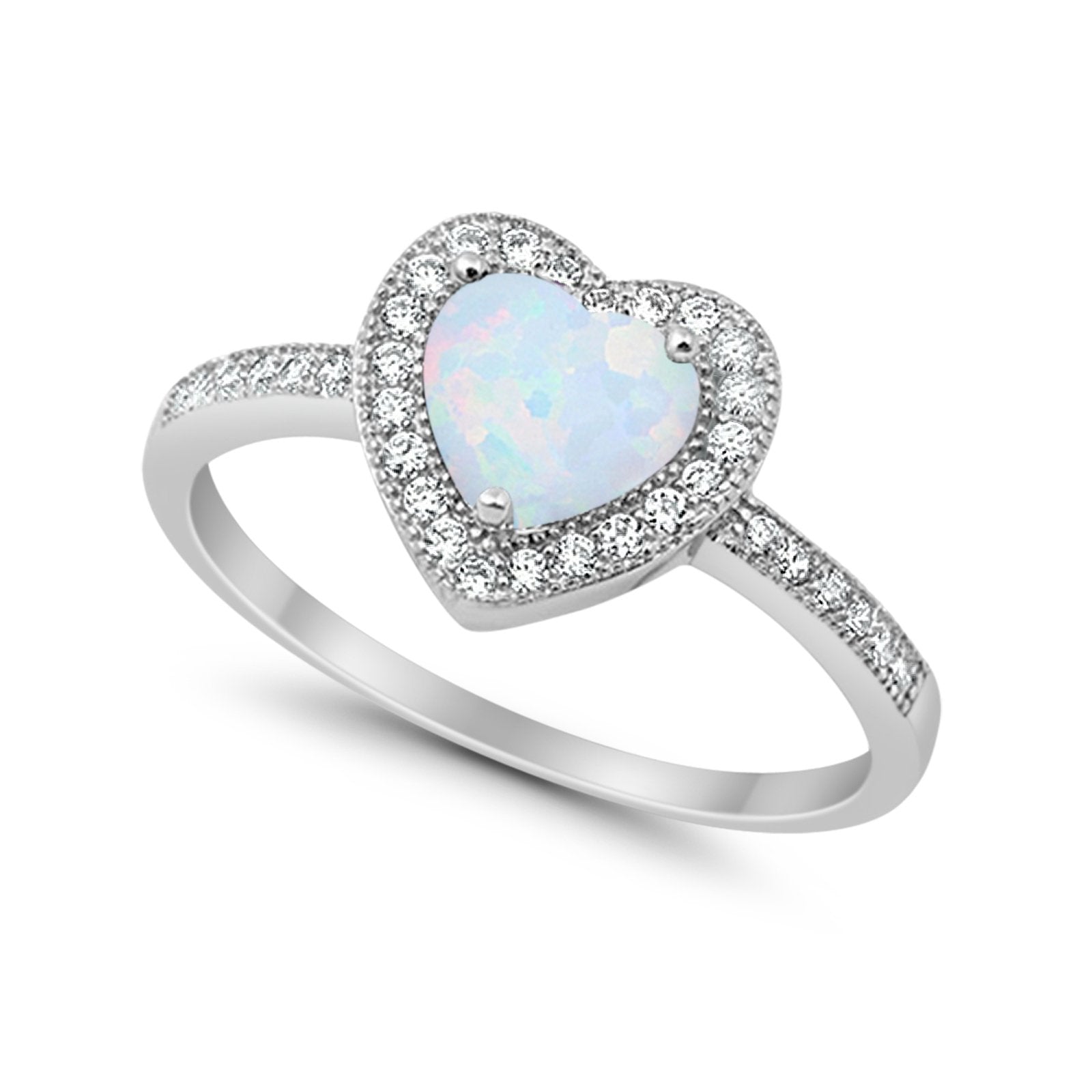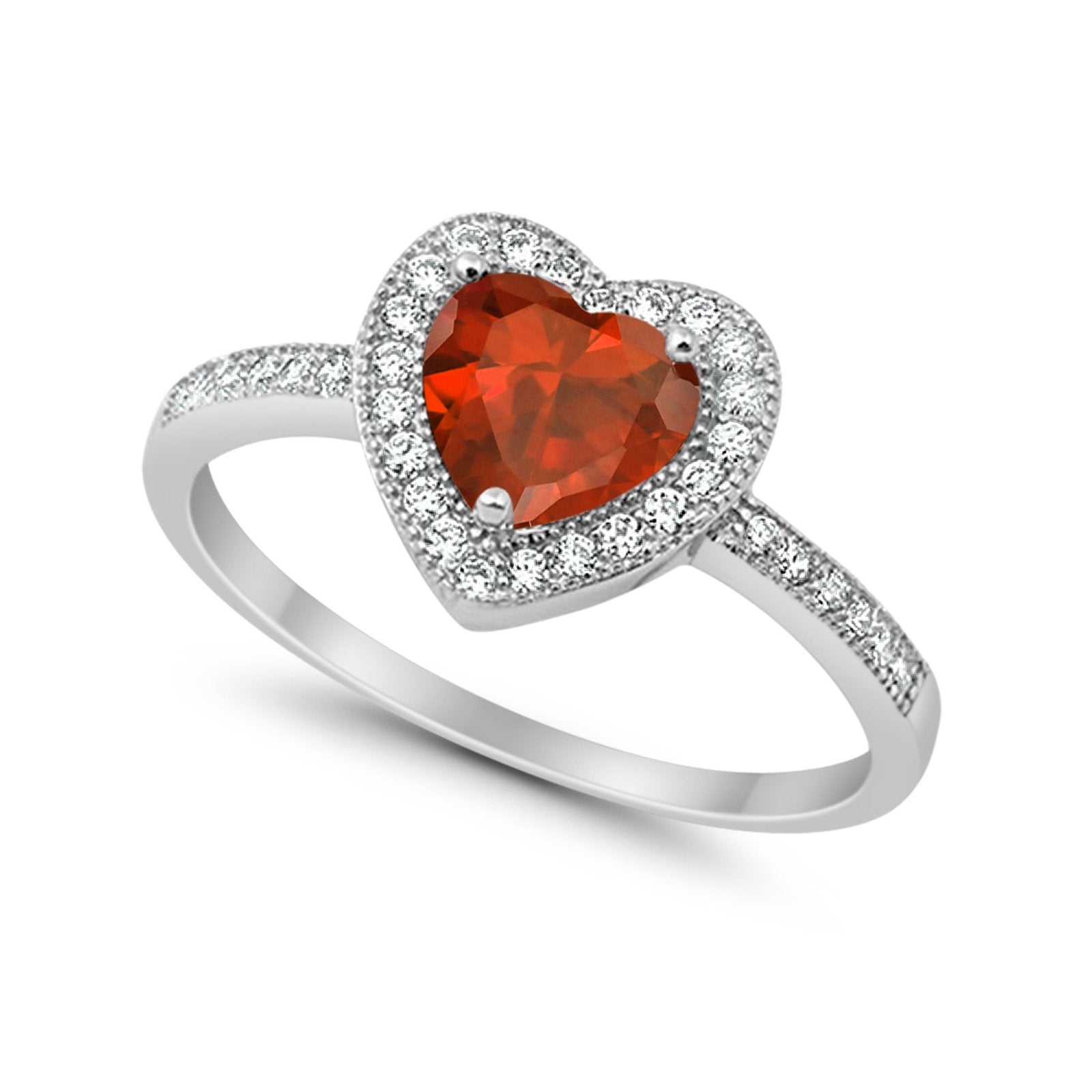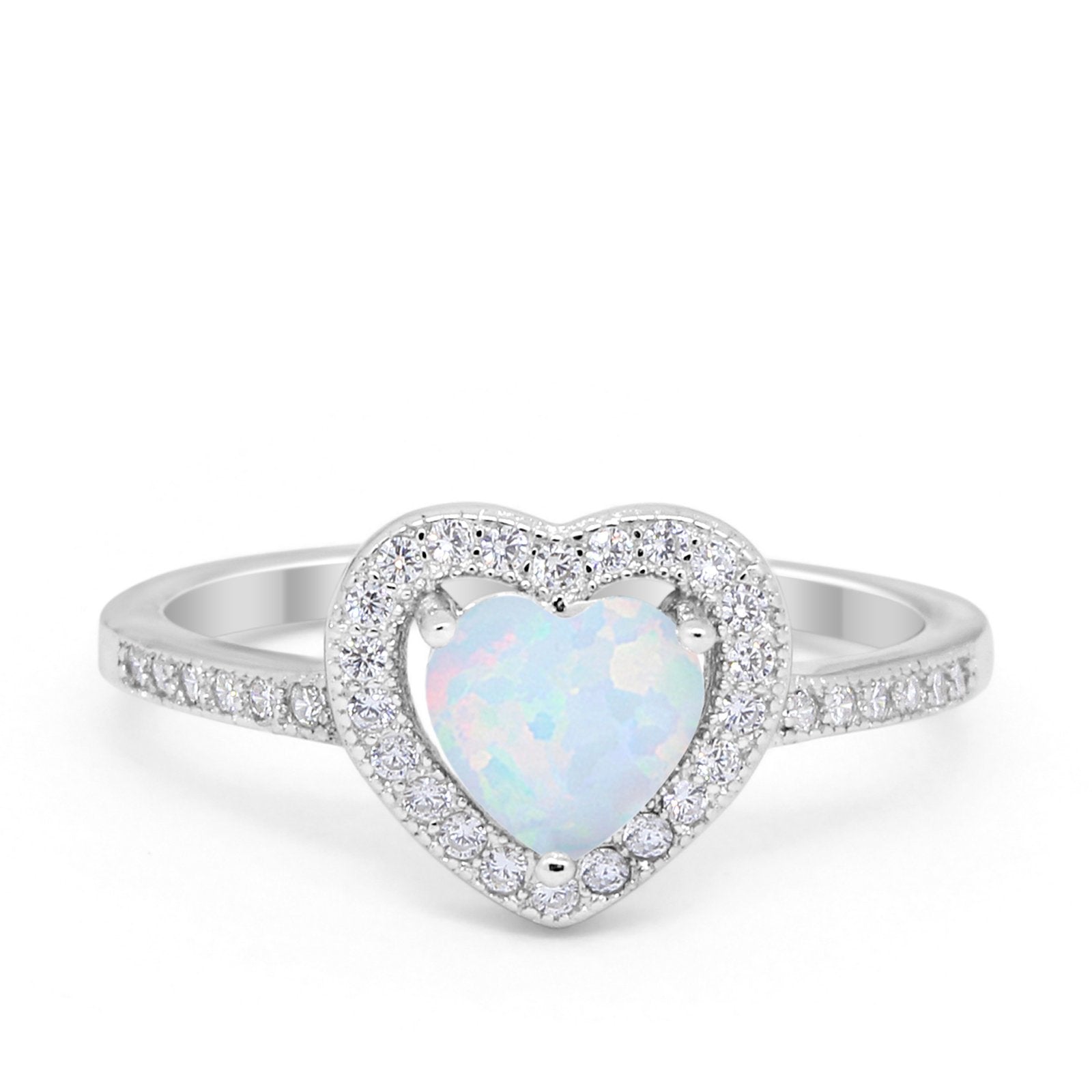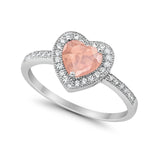 Halo Dazzling Heart Promise Ring Round Simulated CZ 925 Sterling Silver