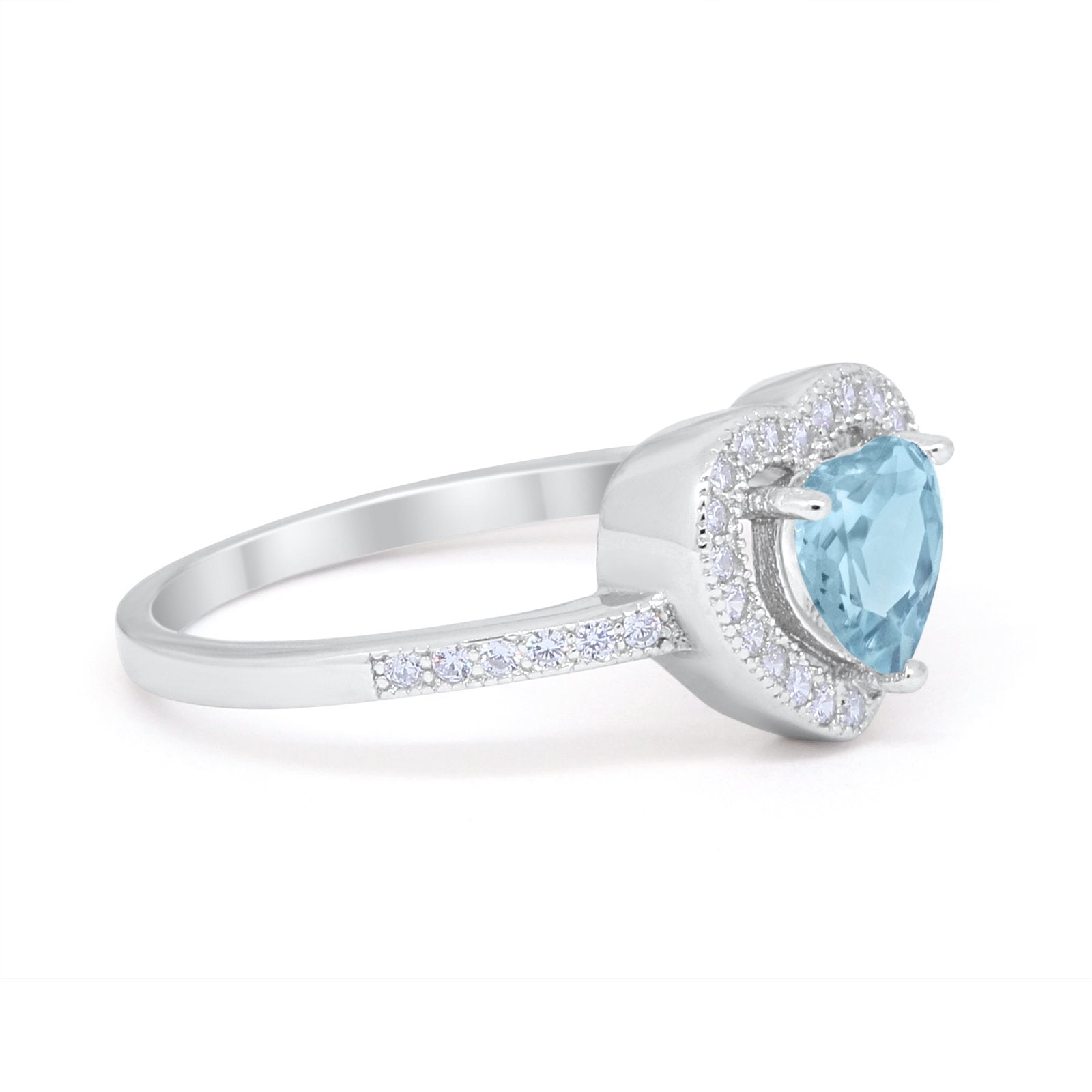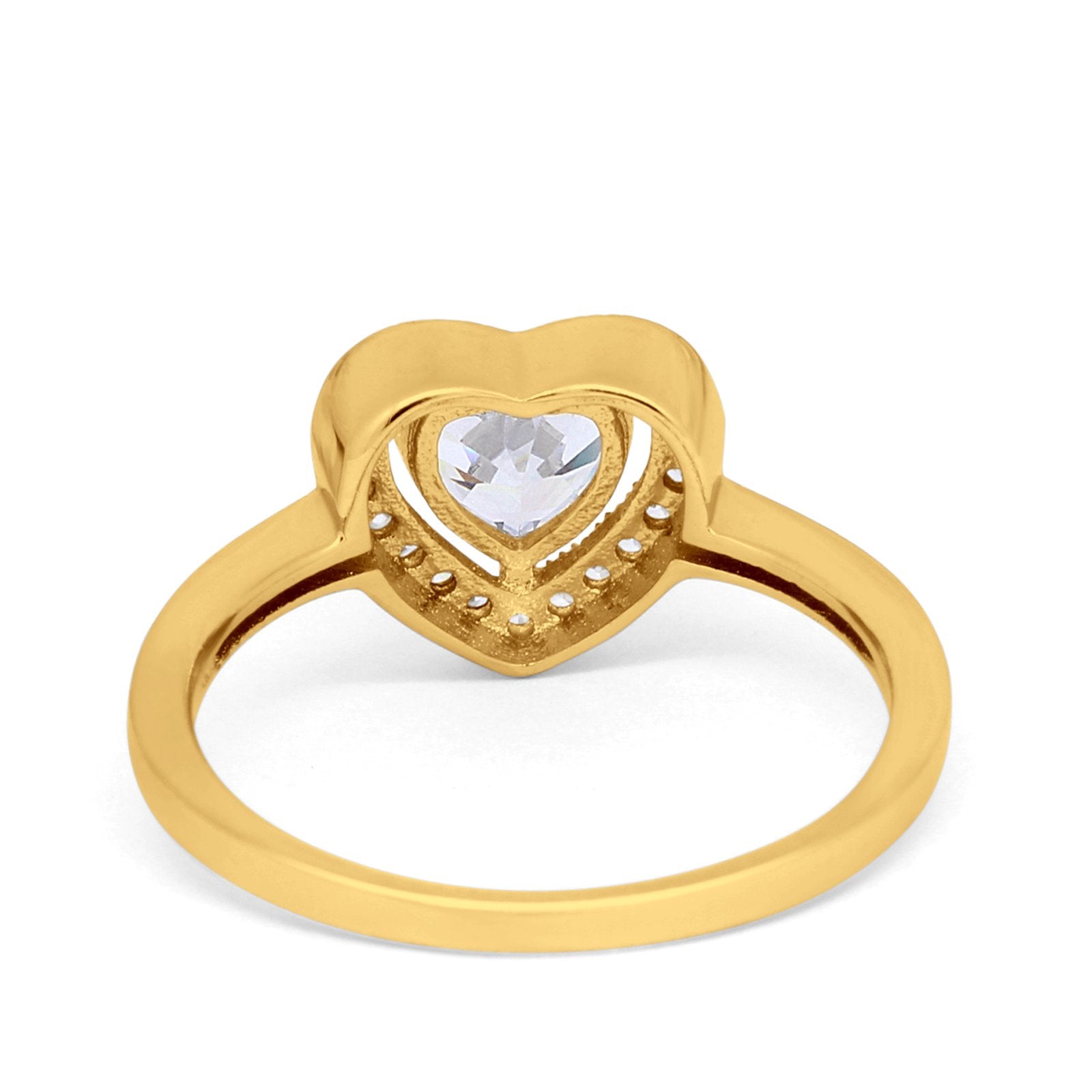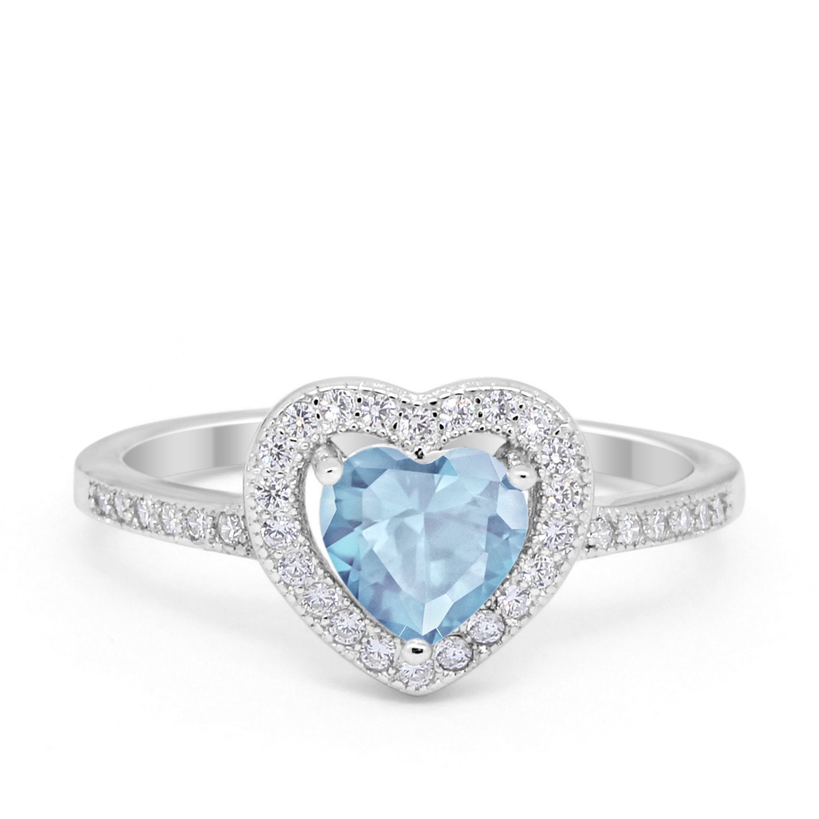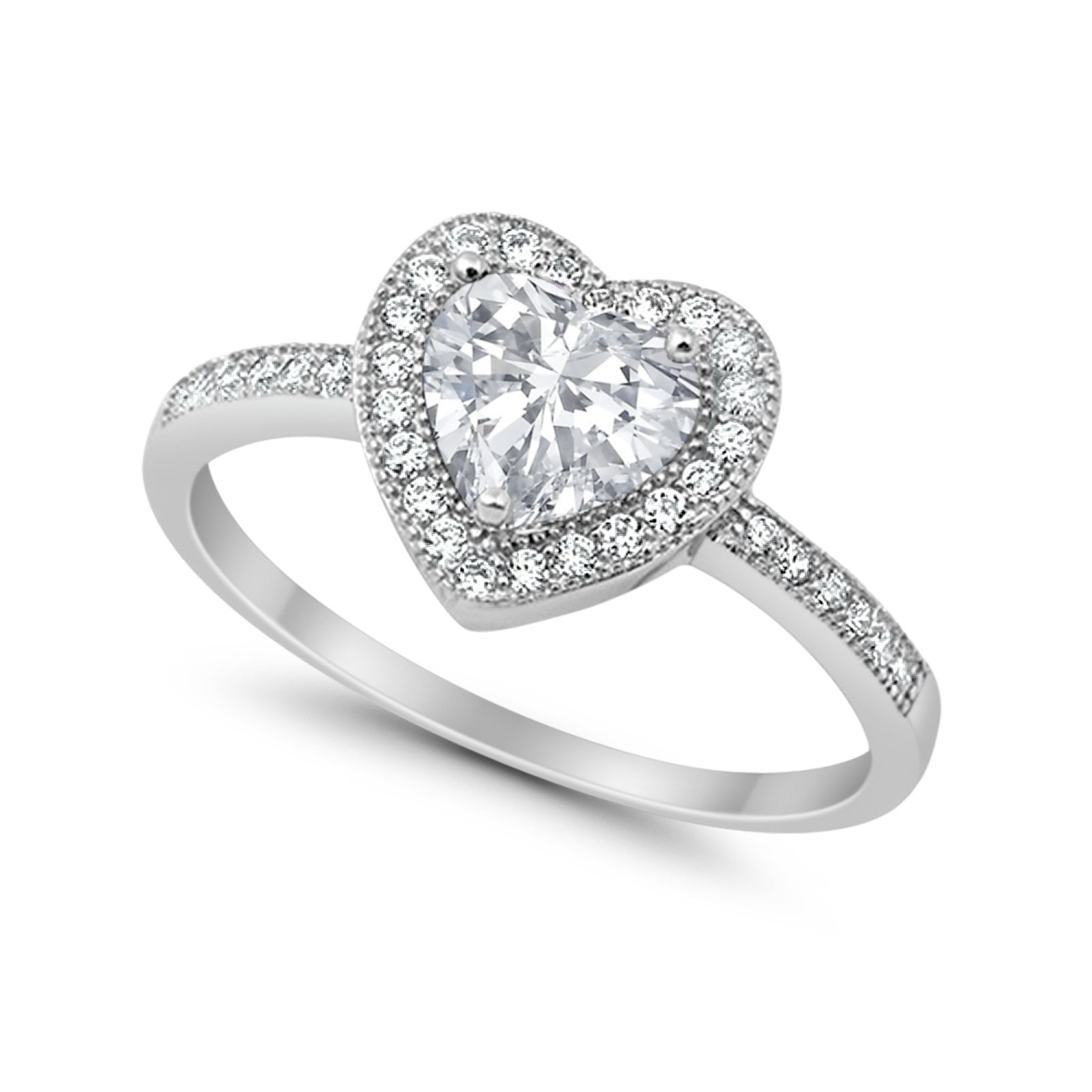 Halo Dazzling Heart Promise Ring Round Simulated CZ 925 Sterling Silver