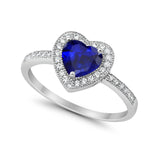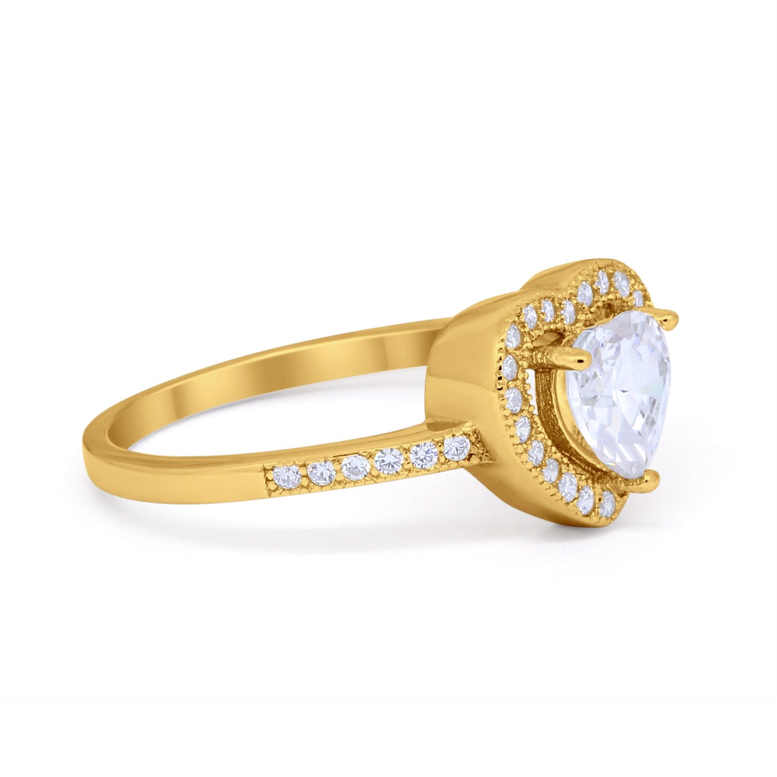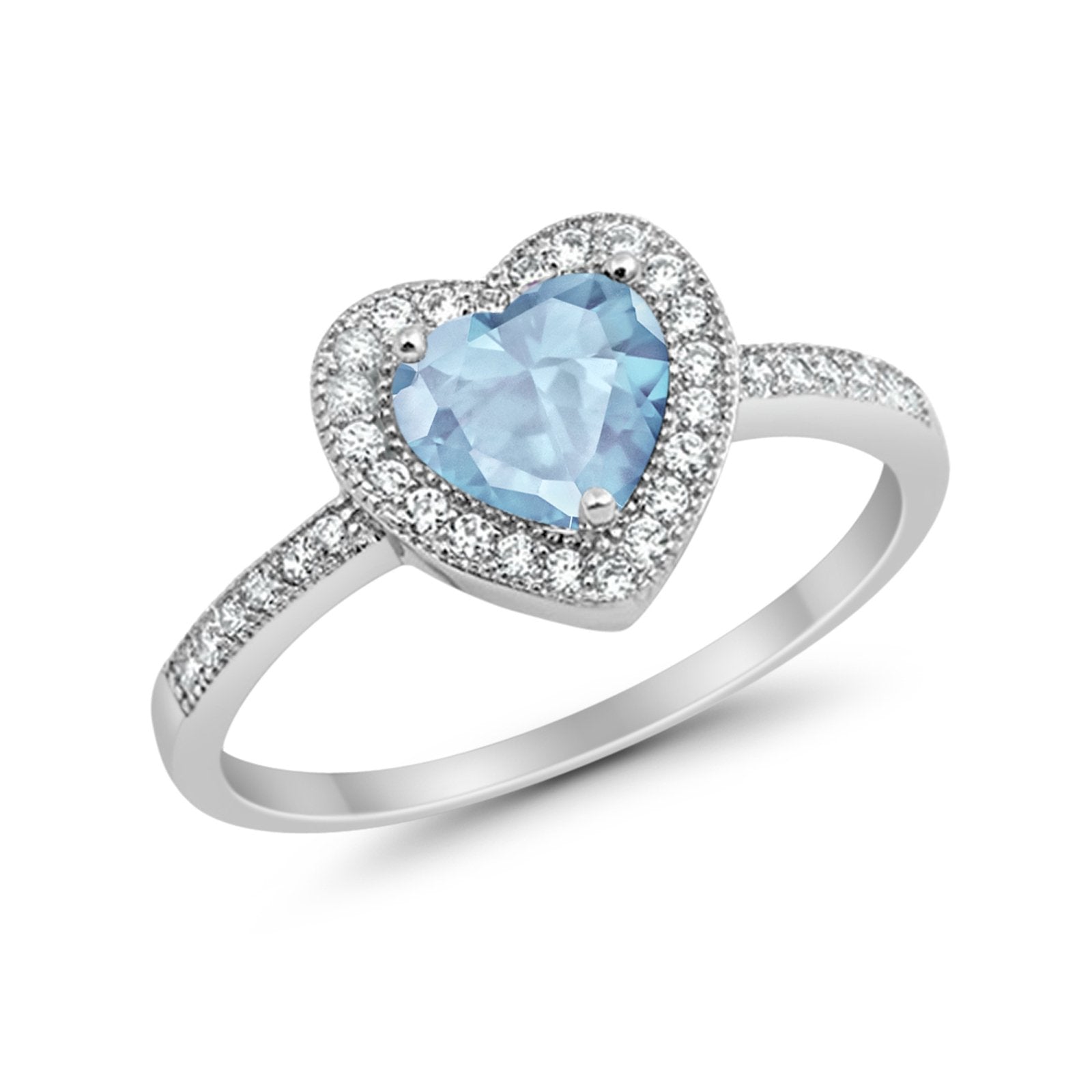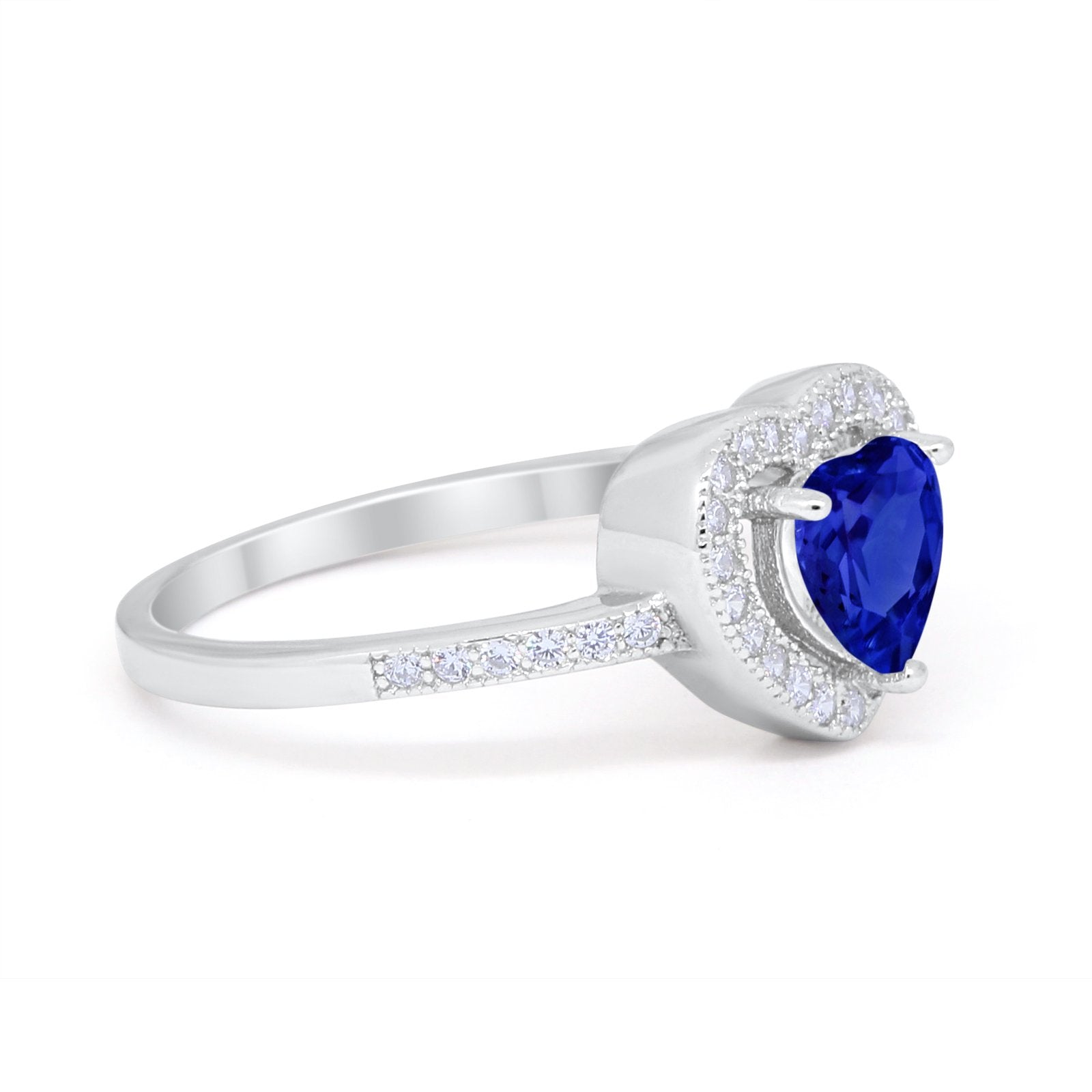 Halo Dazzling Heart Promise Ring Round Simulated CZ 925 Sterling Silver