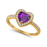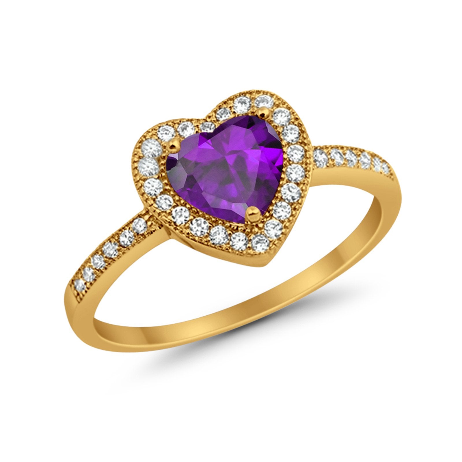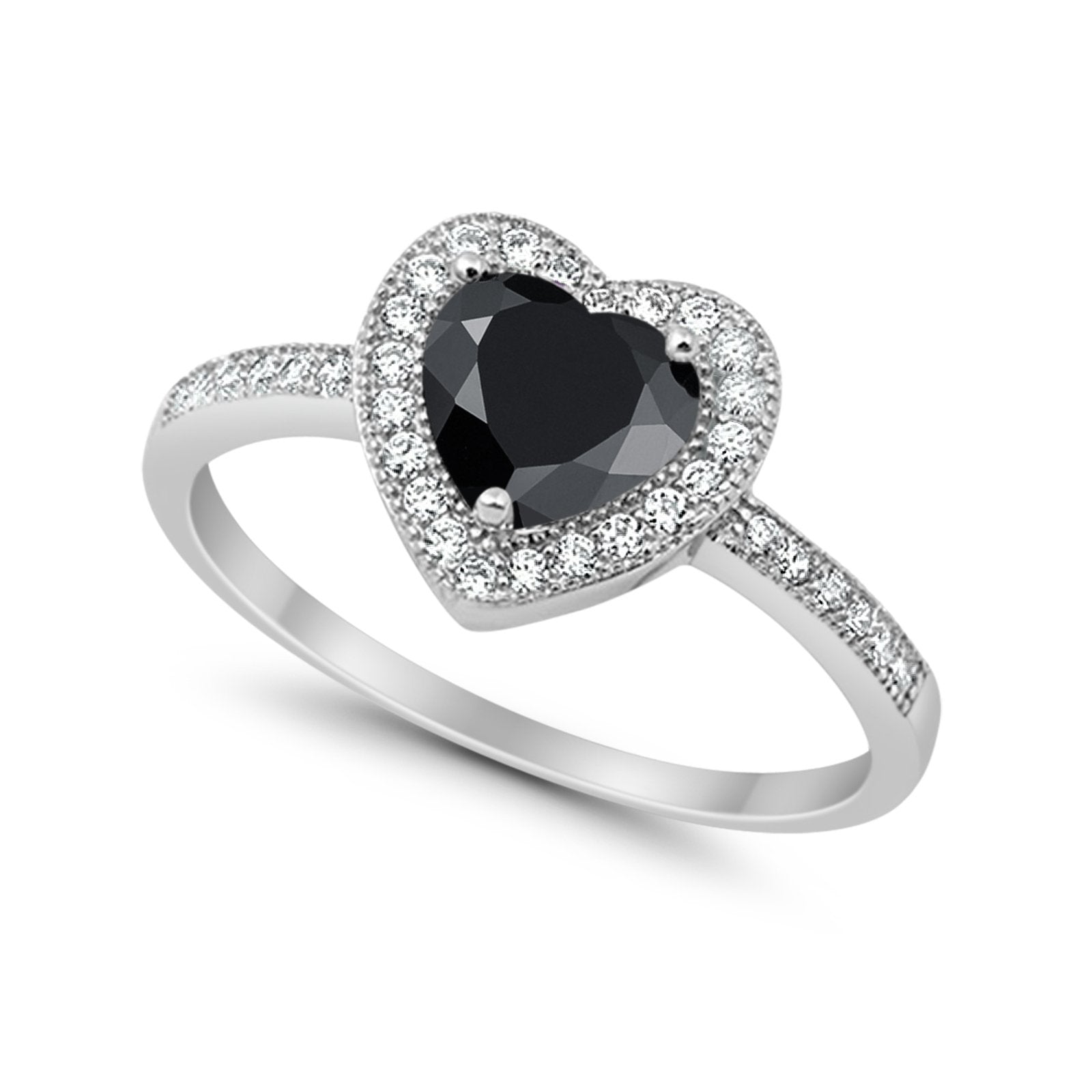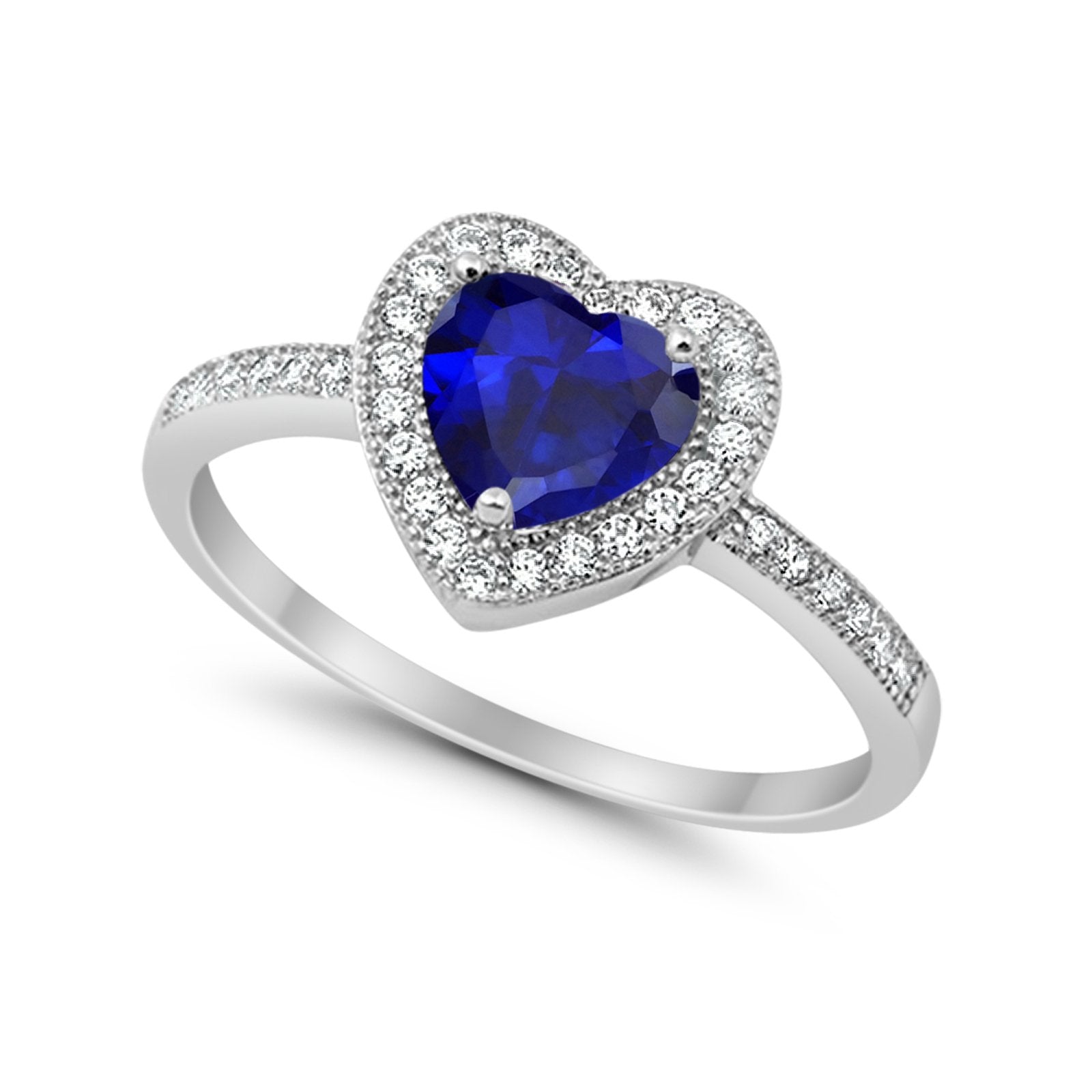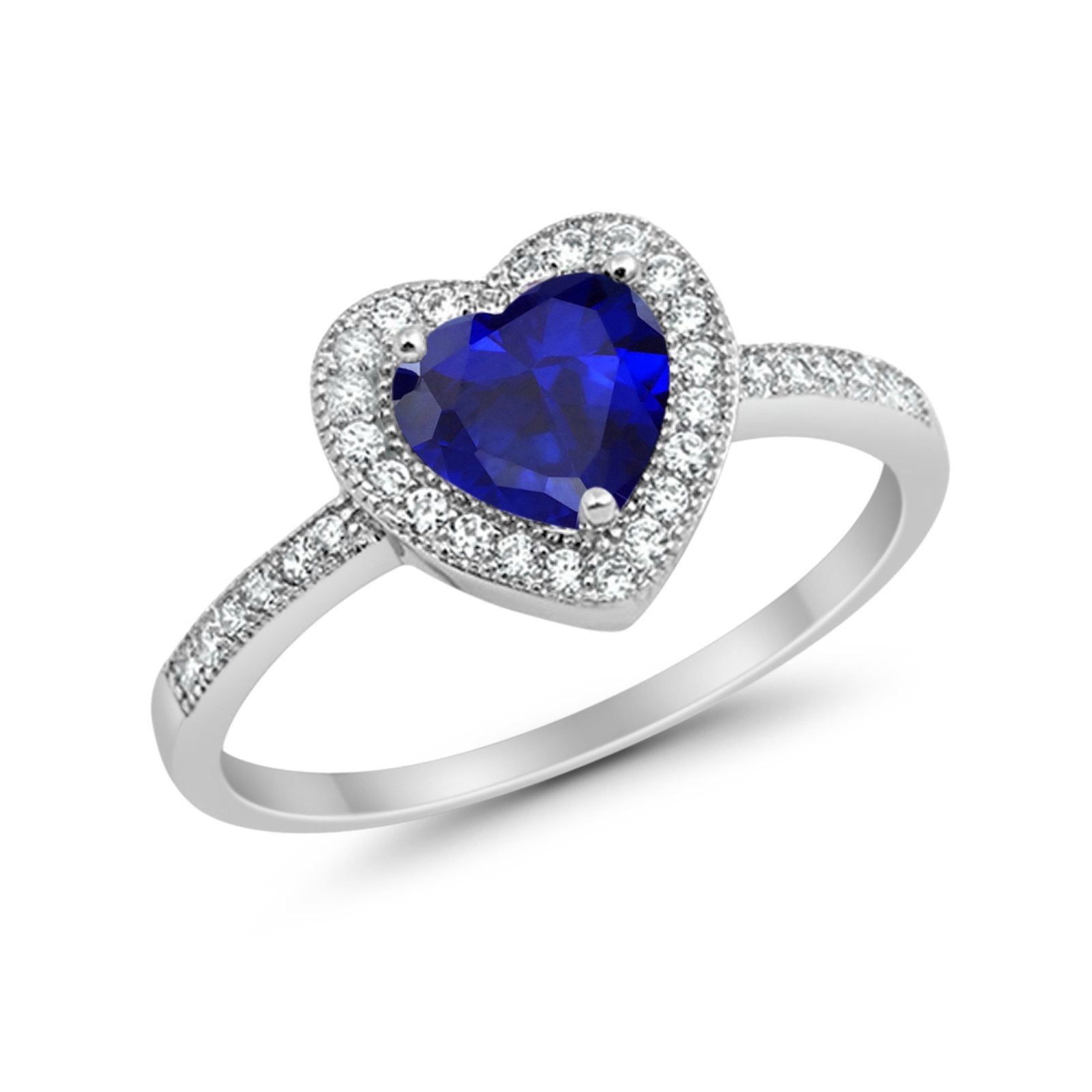 Halo Dazzling Heart Promise Ring Round Simulated CZ 925 Sterling Silver