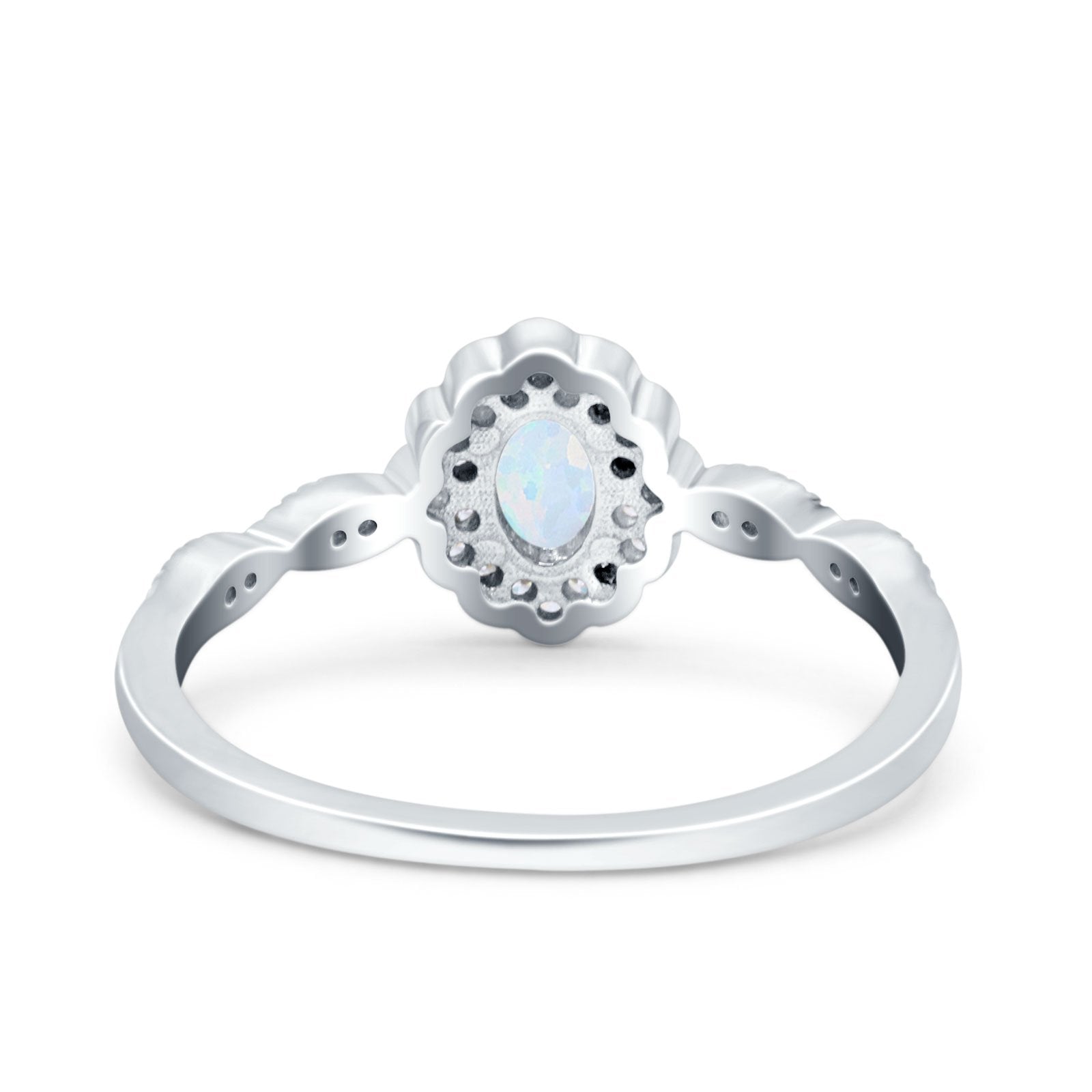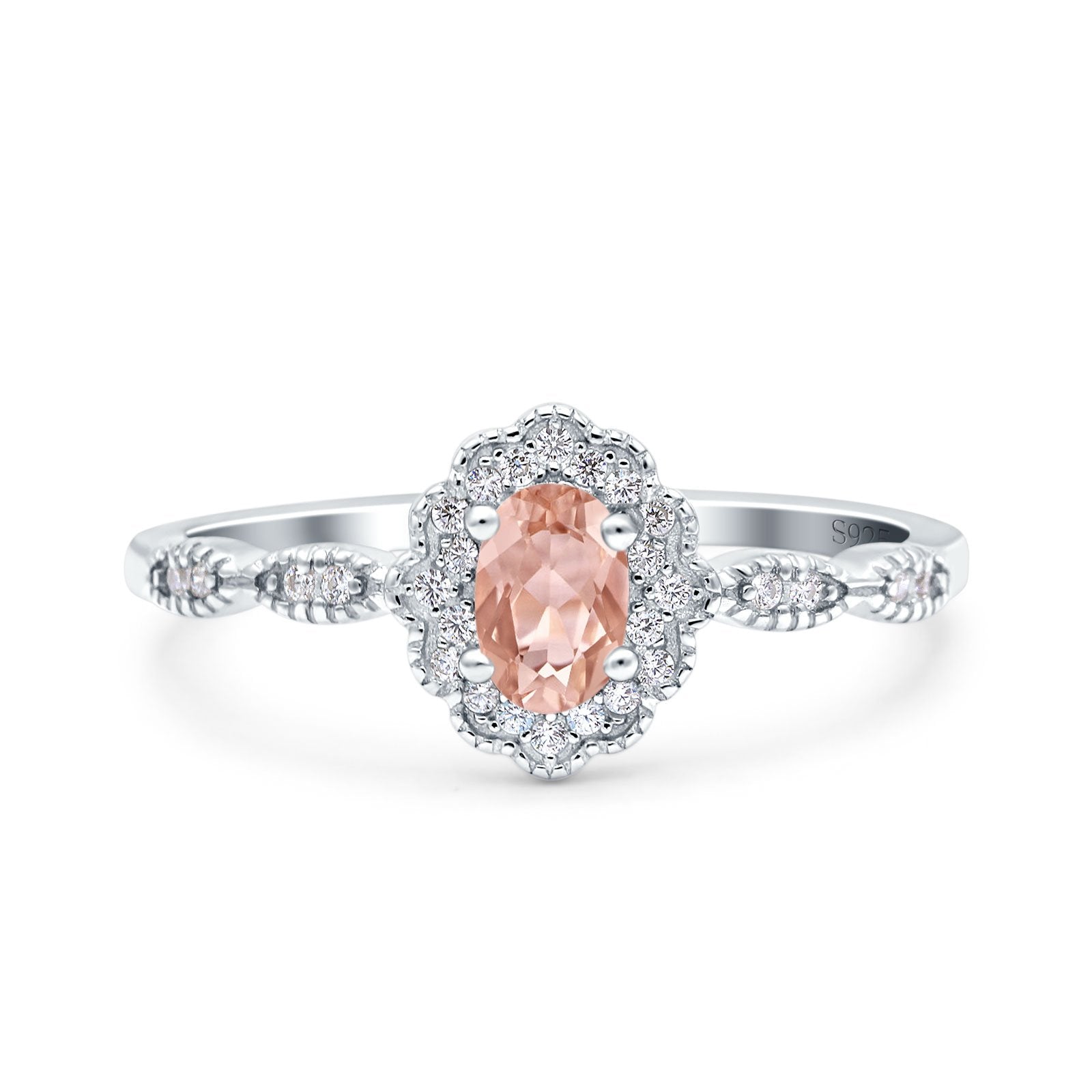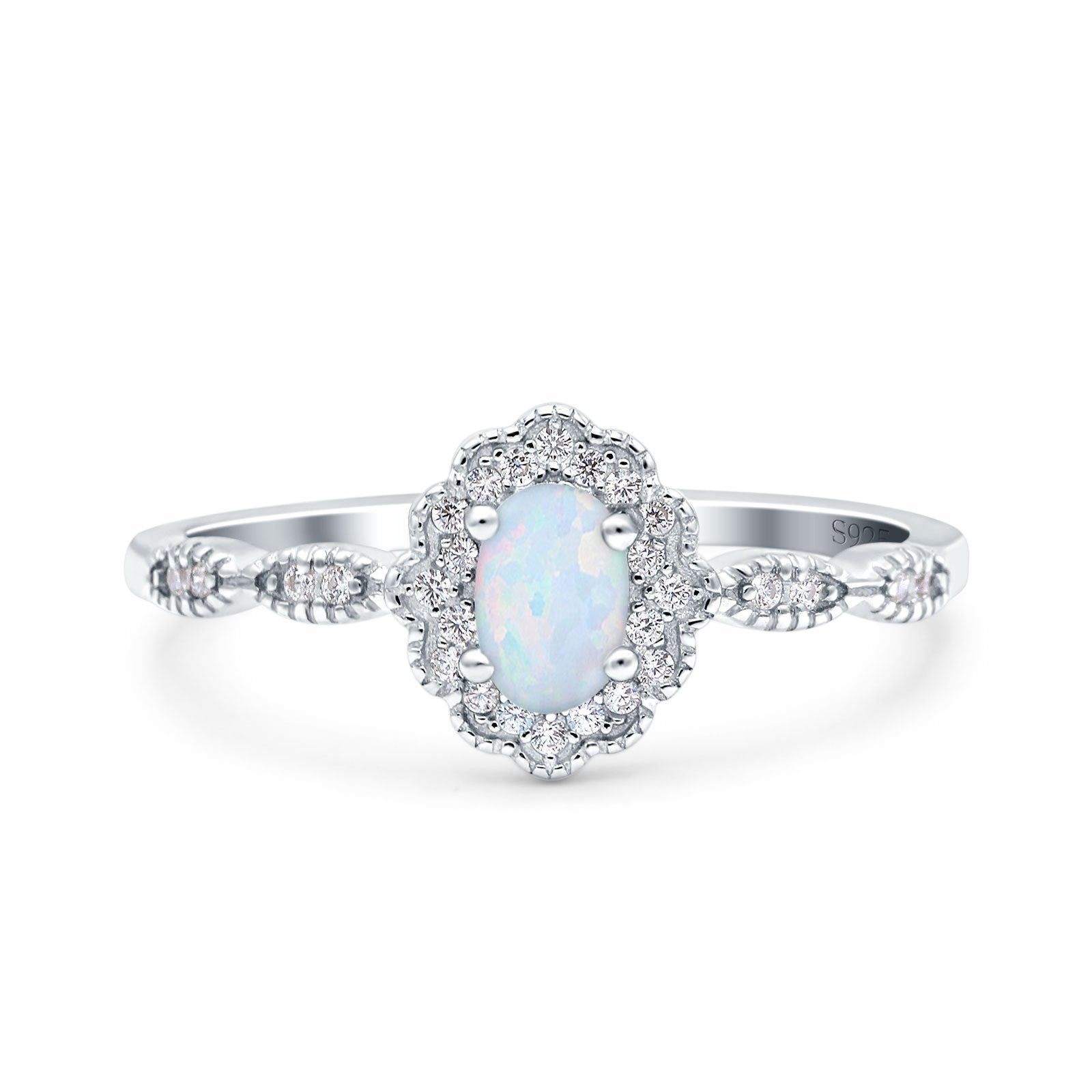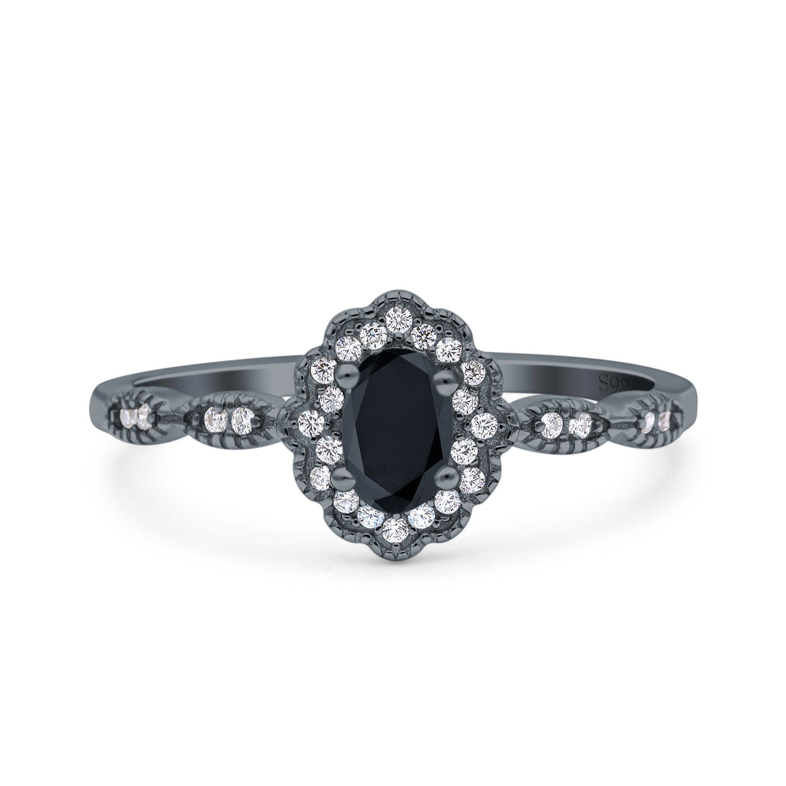 Halo Vintage Floral Art Deco Wedding Bridal Ring Oval Simulated Cubic Zirconia 925 Sterling Silver