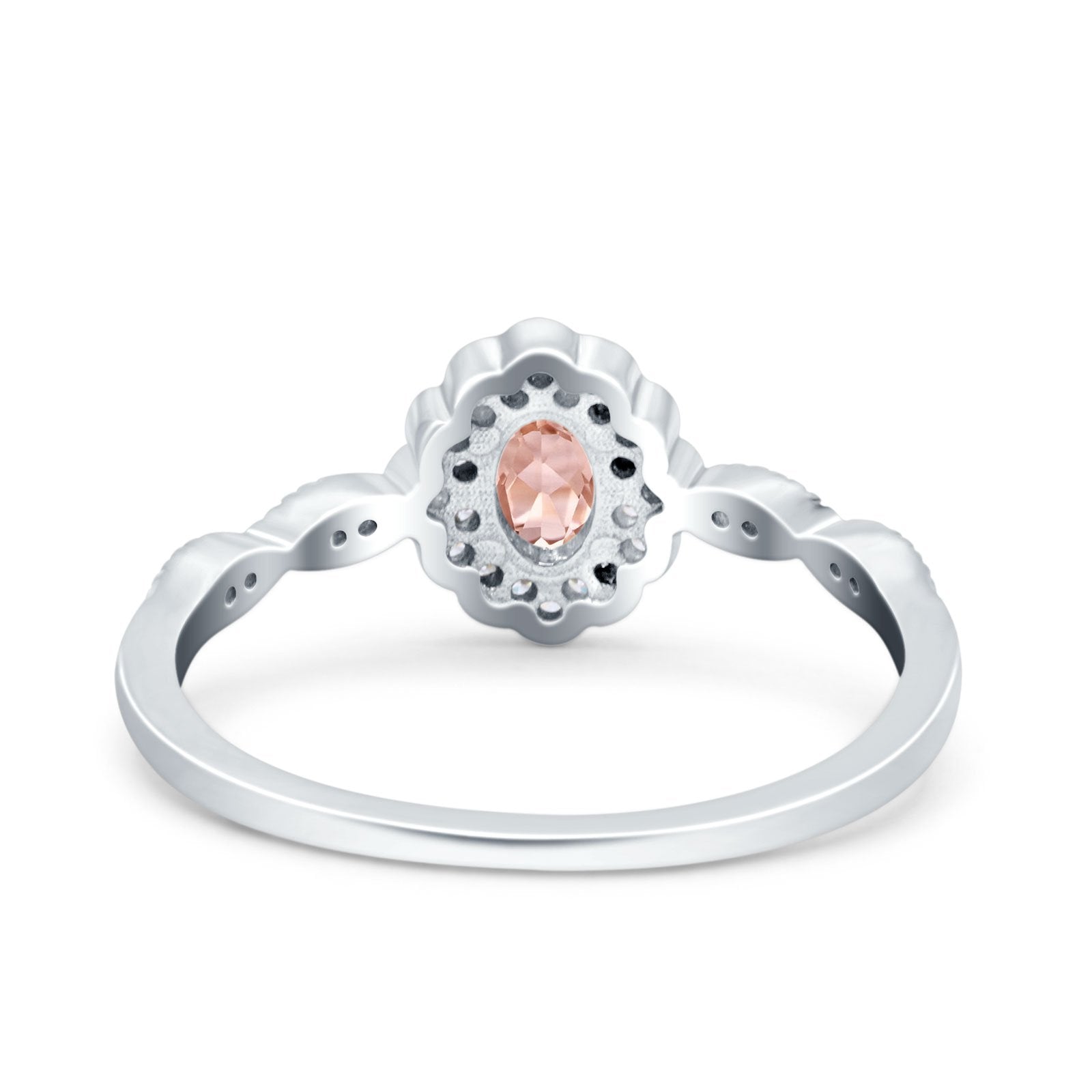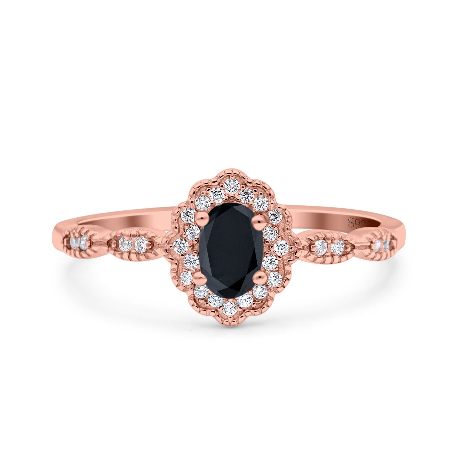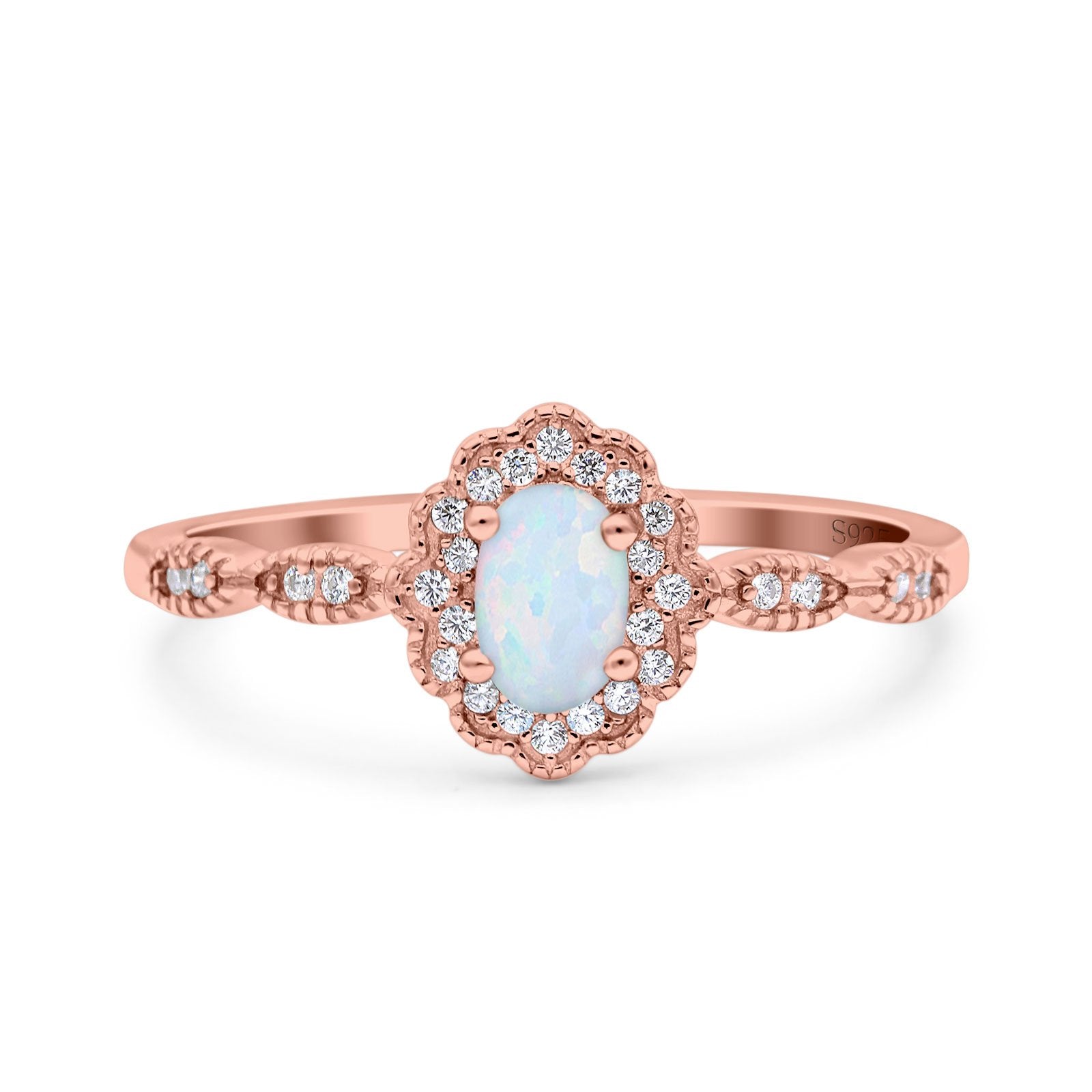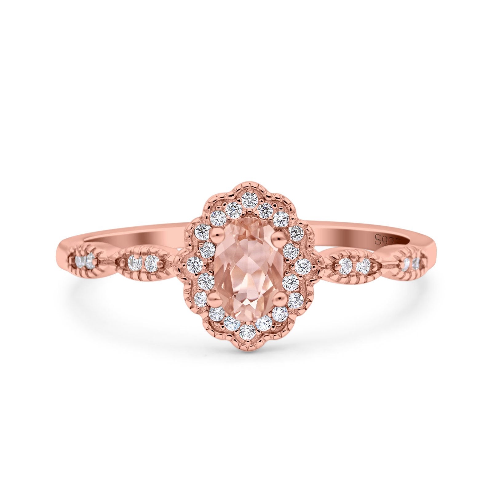Halo Vintage Floral Art Deco Wedding Bridal Ring Oval Simulated Cubic Zirconia 925 Sterling Silver