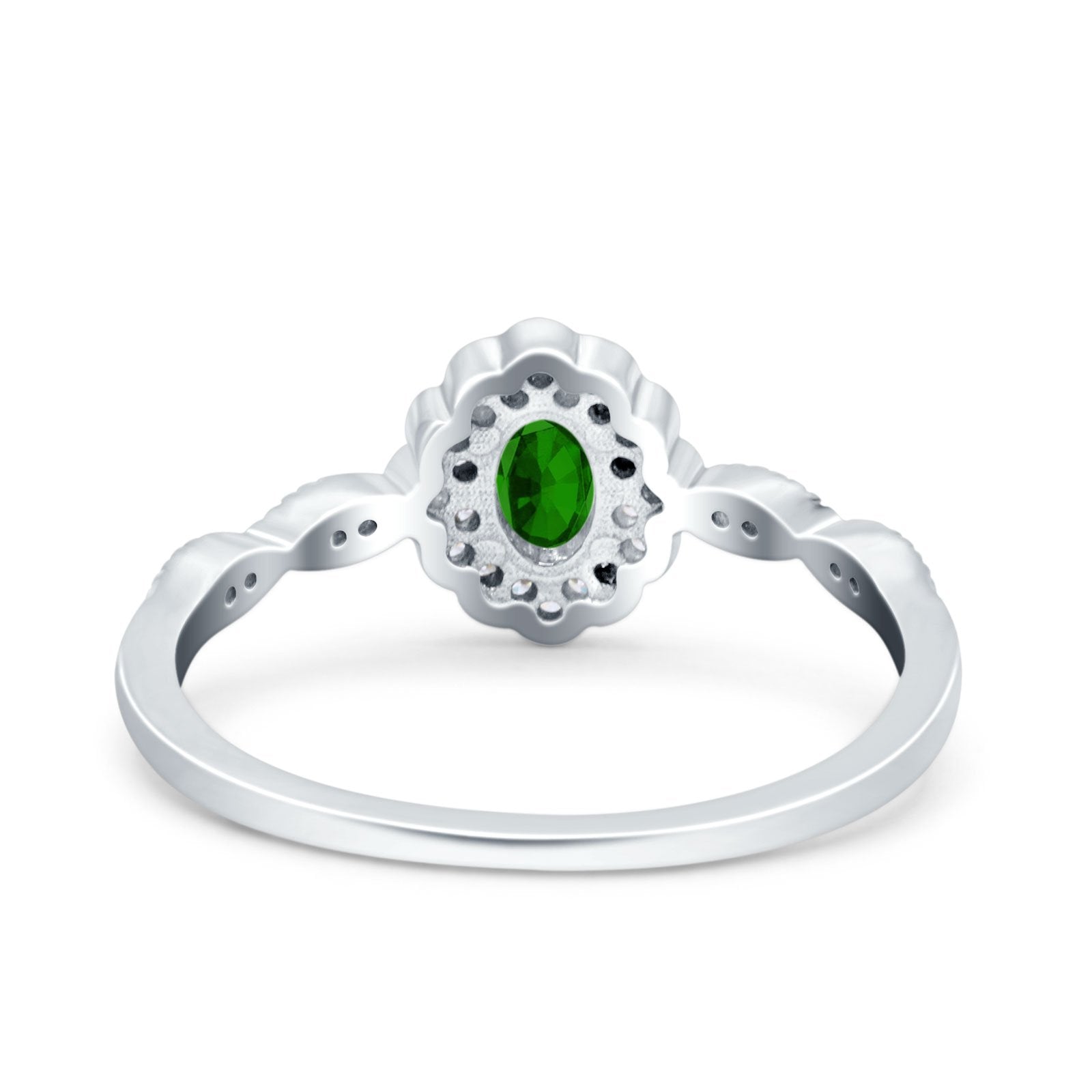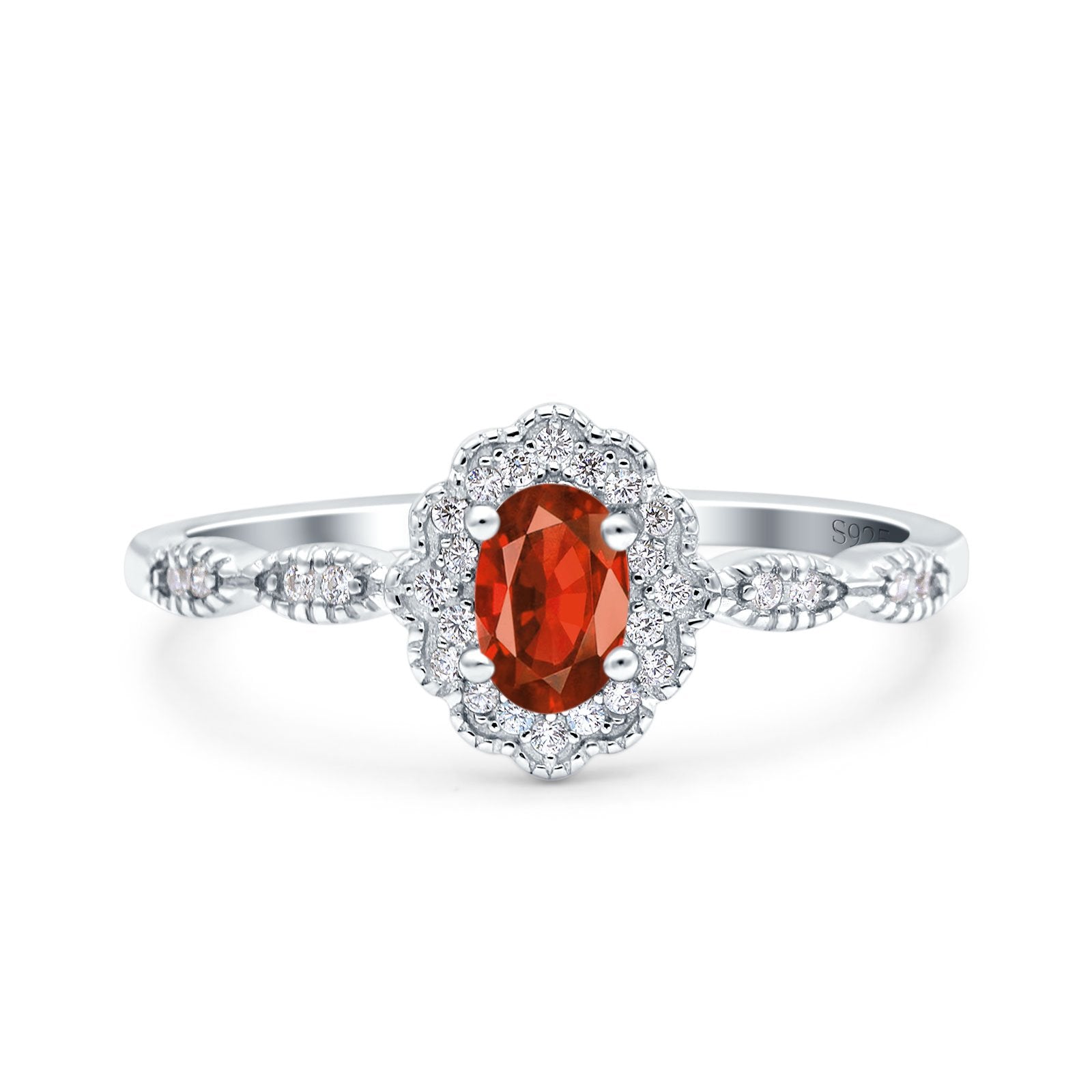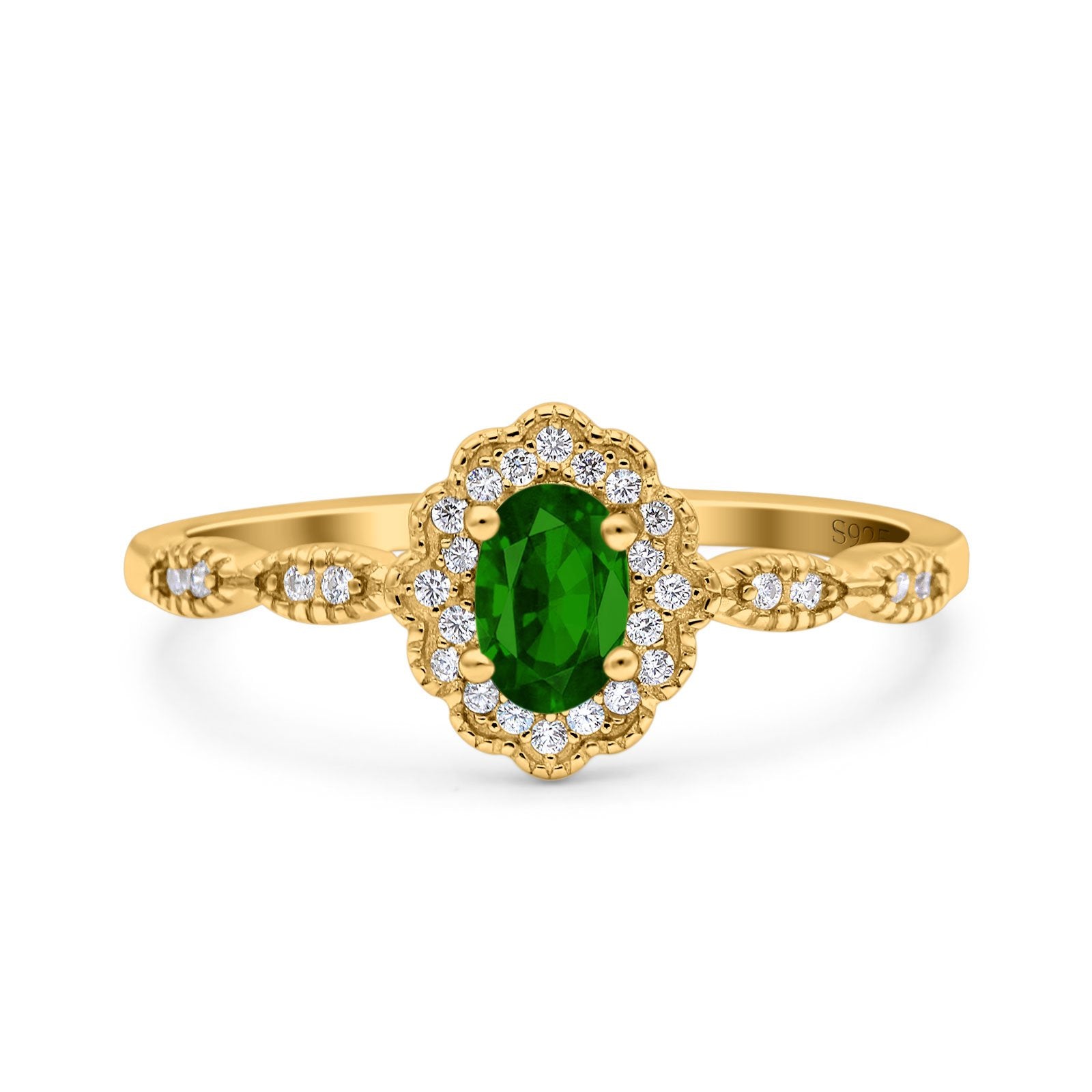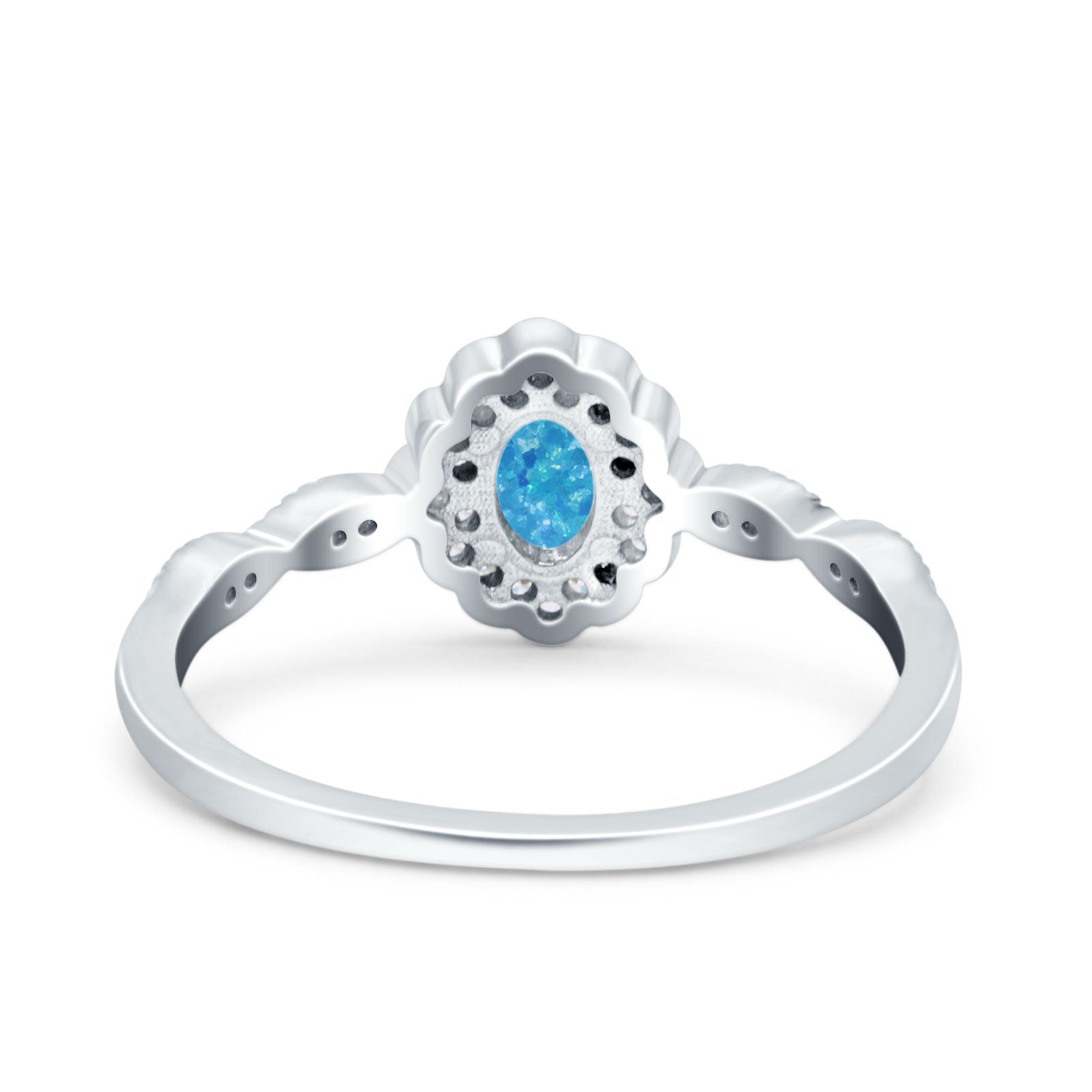 Halo Vintage Floral Art Deco Wedding Bridal Ring Oval Simulated Cubic Zirconia 925 Sterling Silver