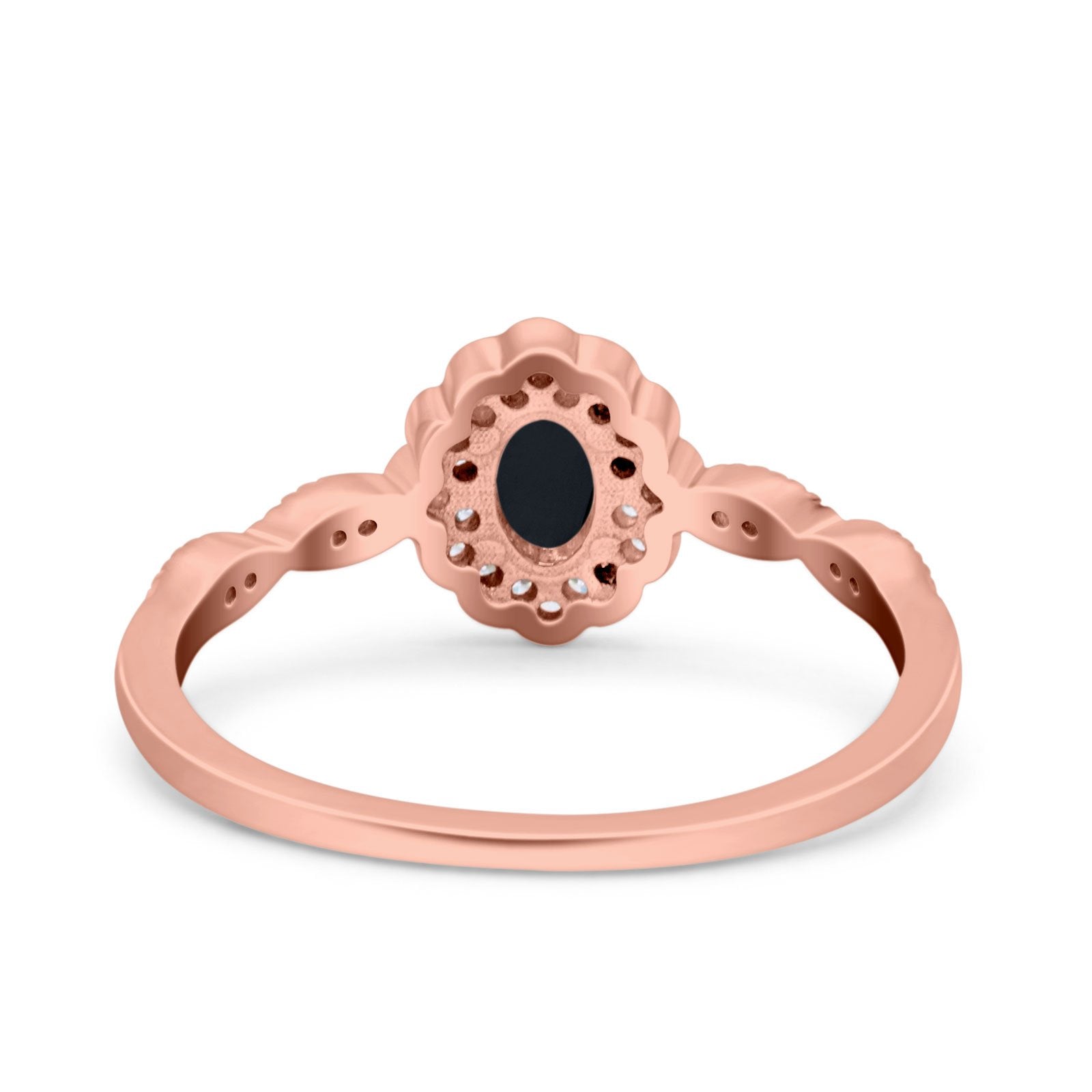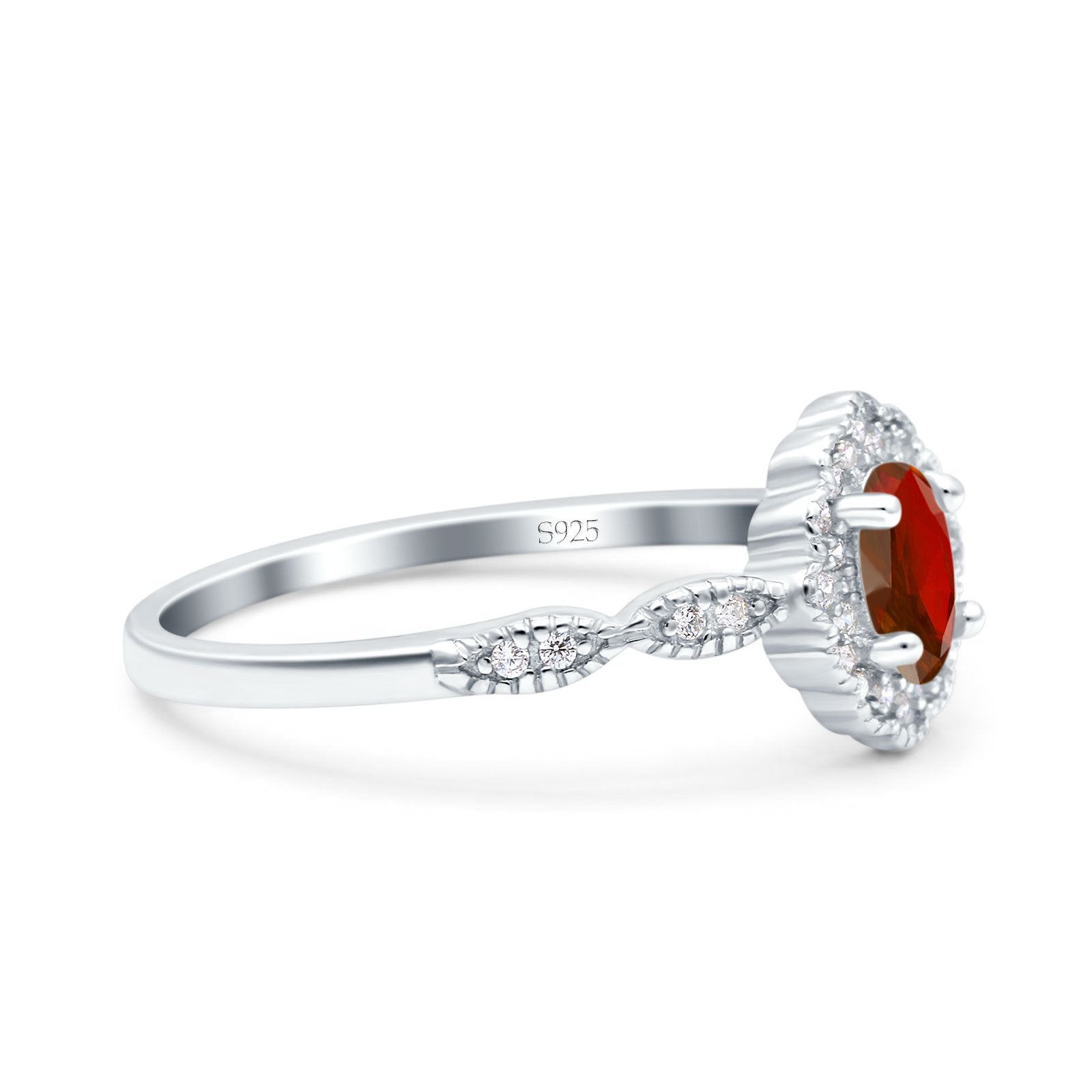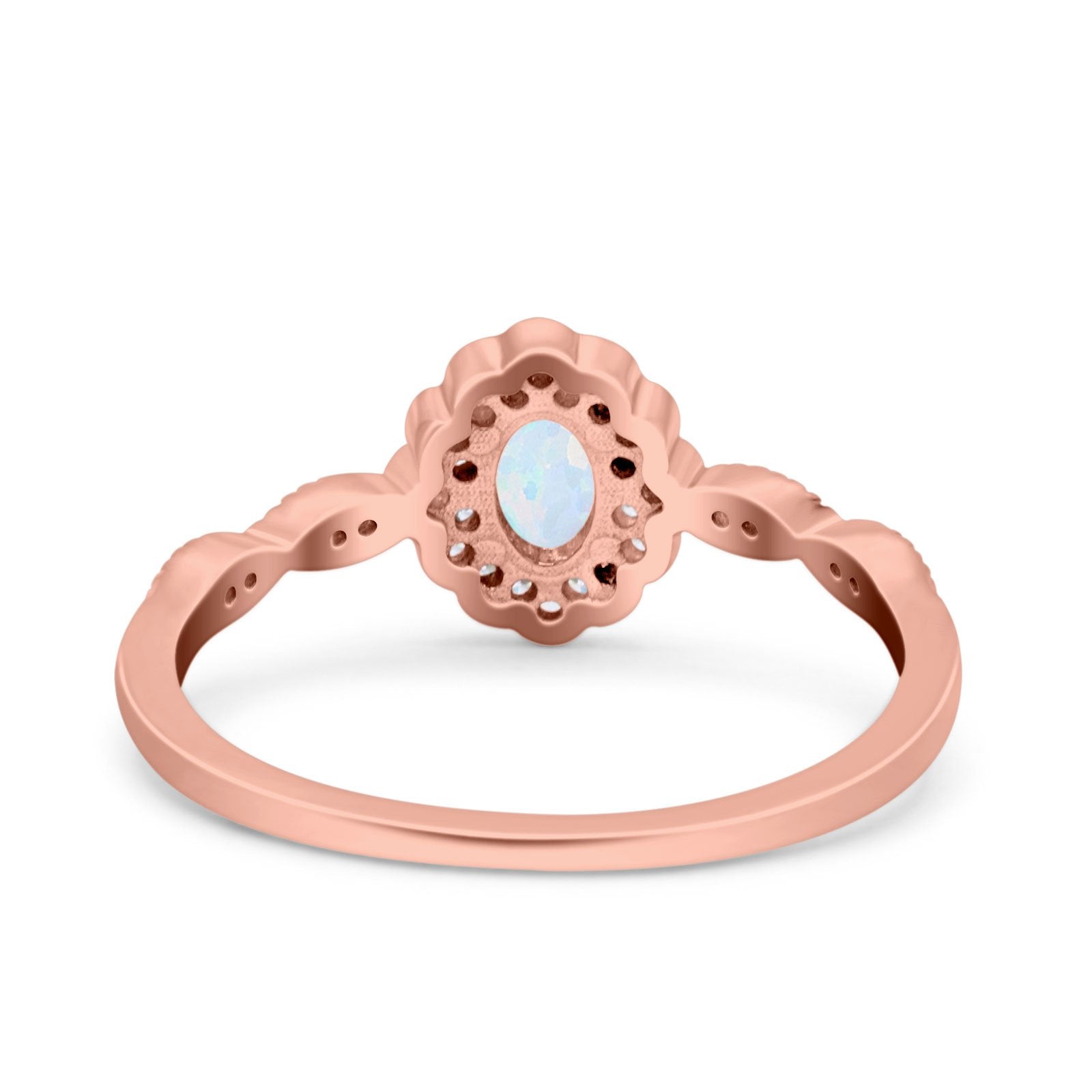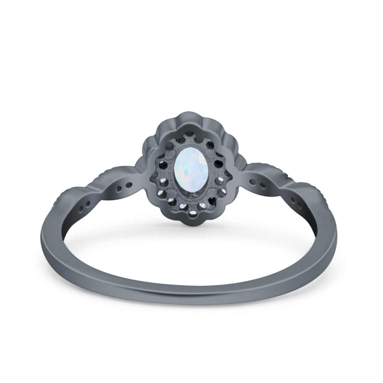 Halo Vintage Floral Art Deco Wedding Bridal Ring Oval Simulated Cubic Zirconia 925 Sterling Silver