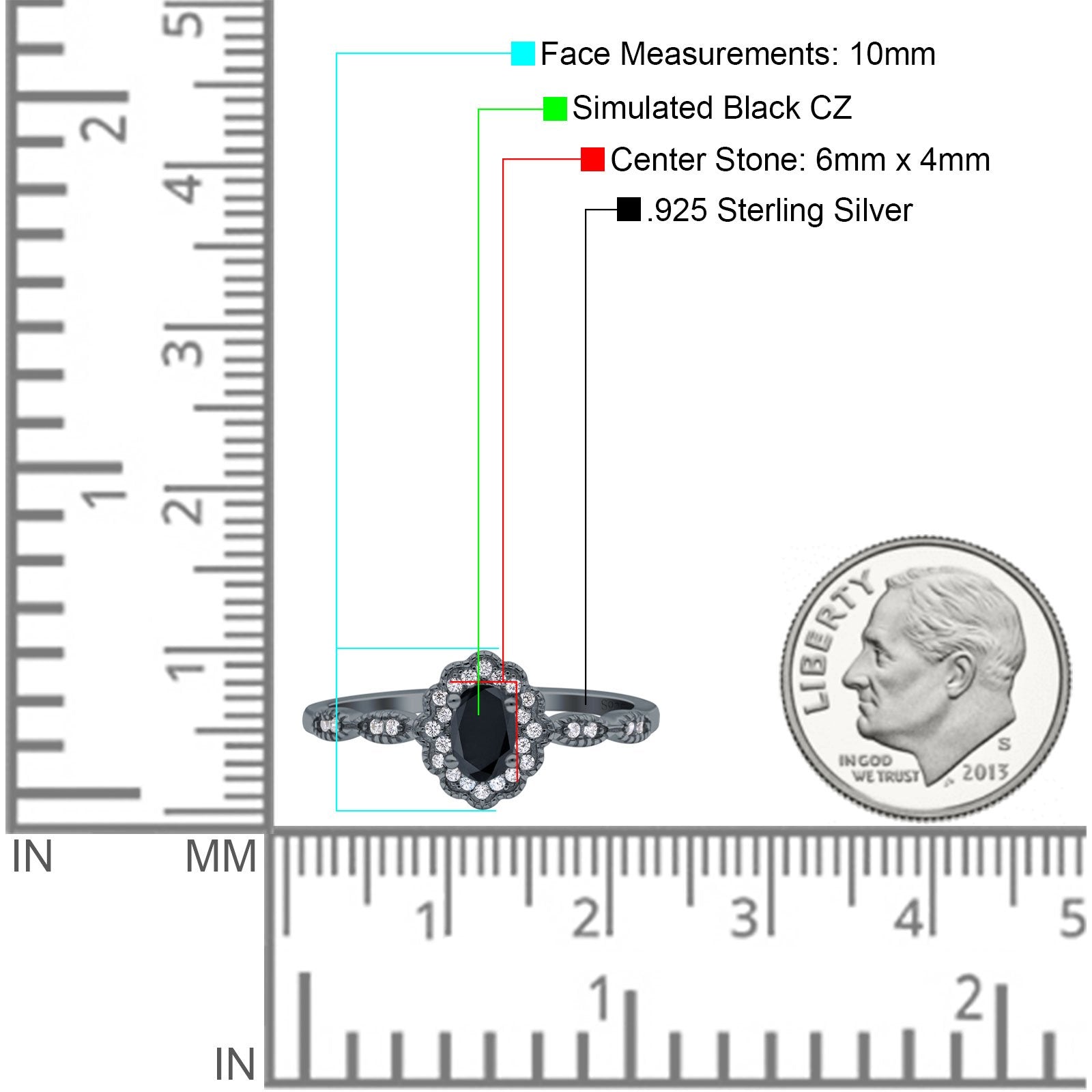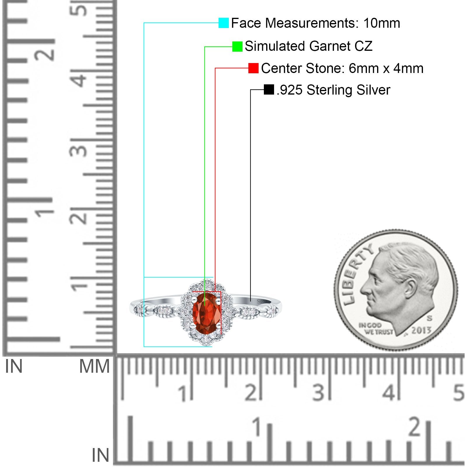 Center Stone Measurements: 6mmx4mm