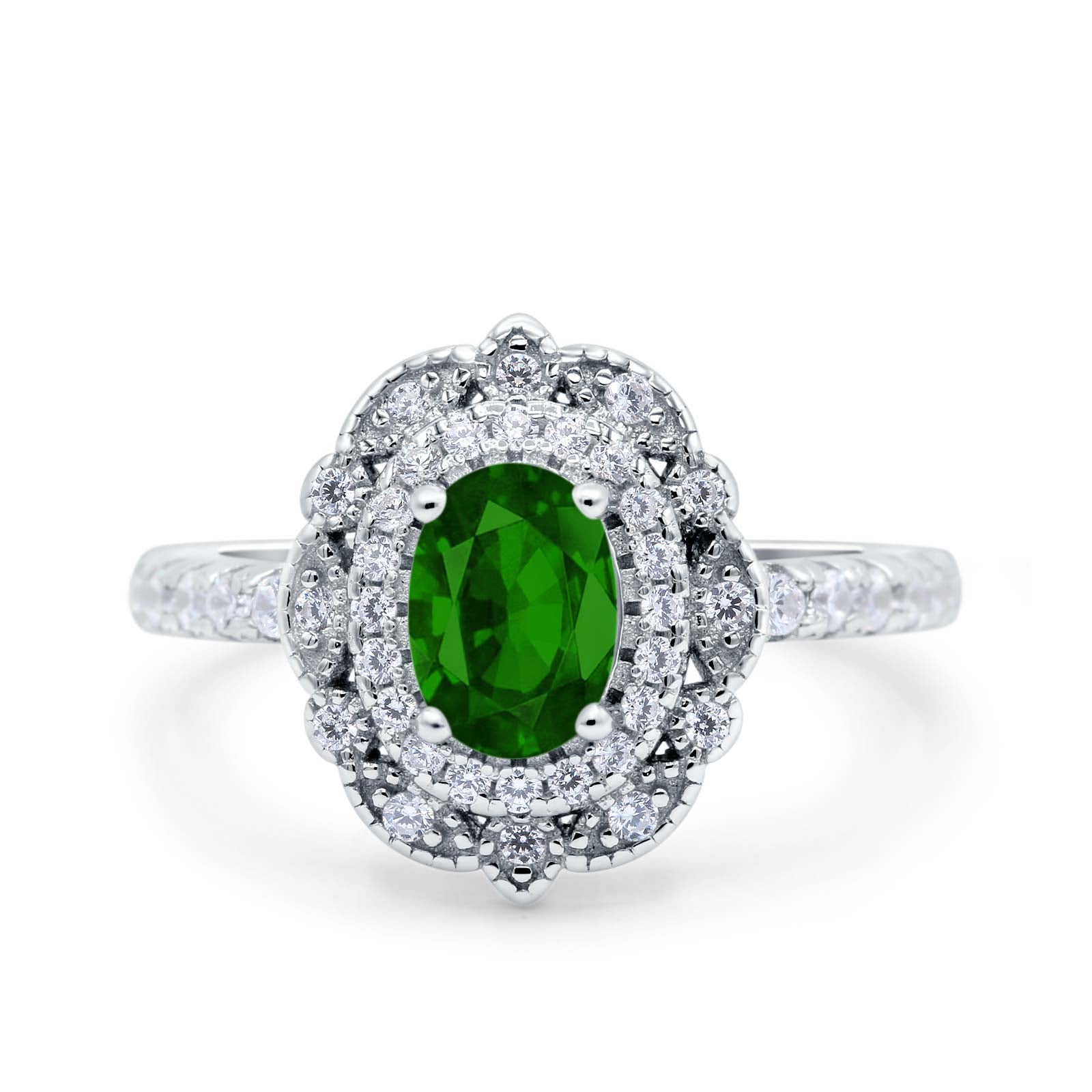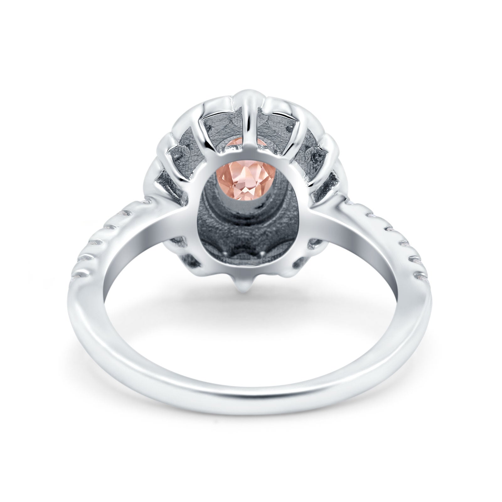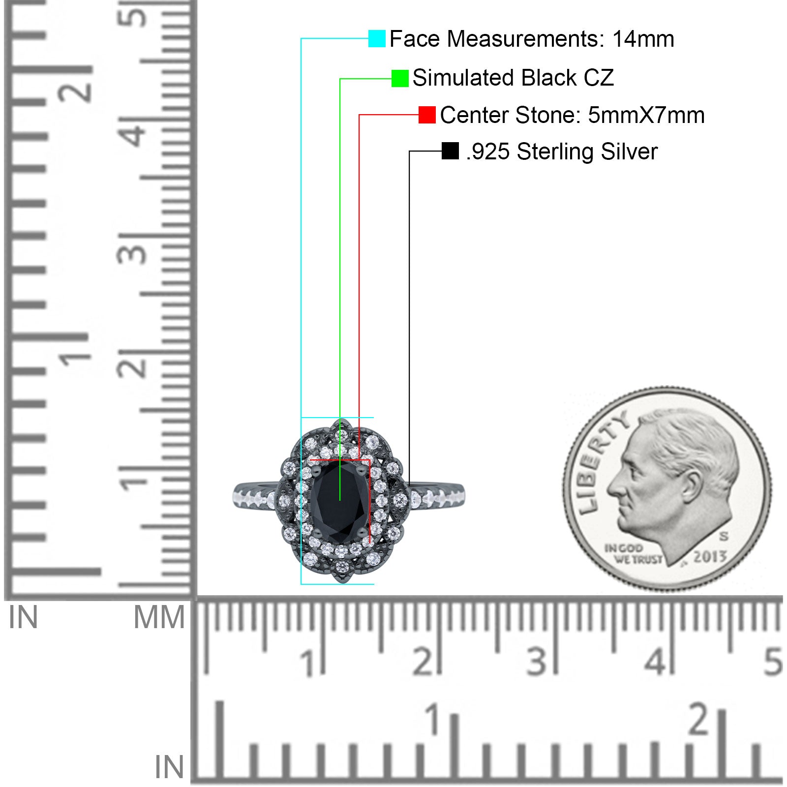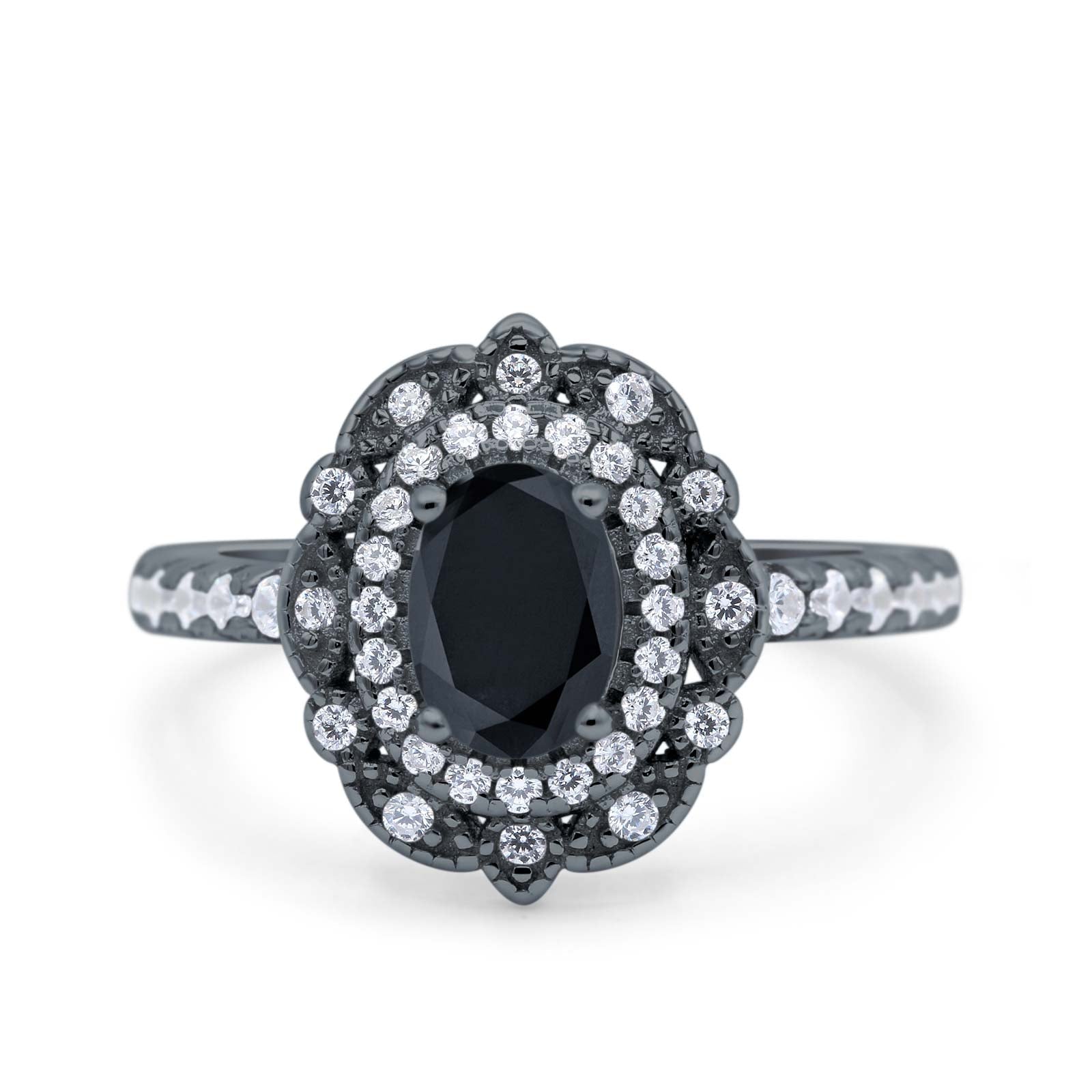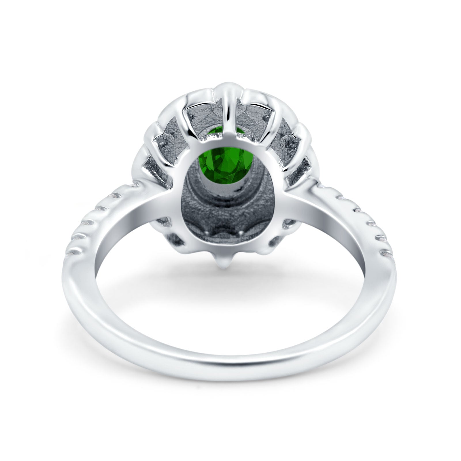 Halo Vintage Style Art Deco Solitaire Accent Oval Wedding Engagement Ring Simulated Cubic Zirconia 925 Sterling Silver