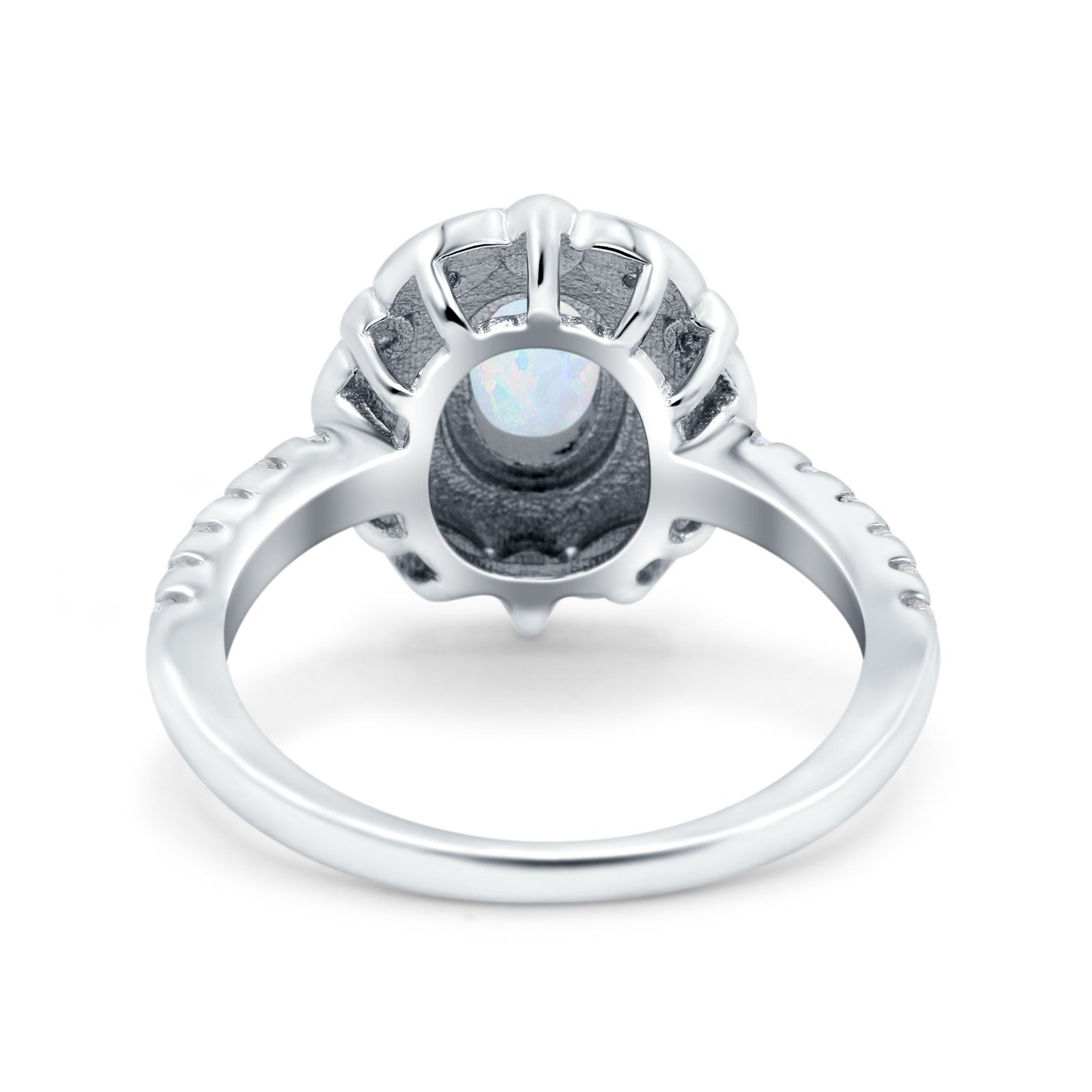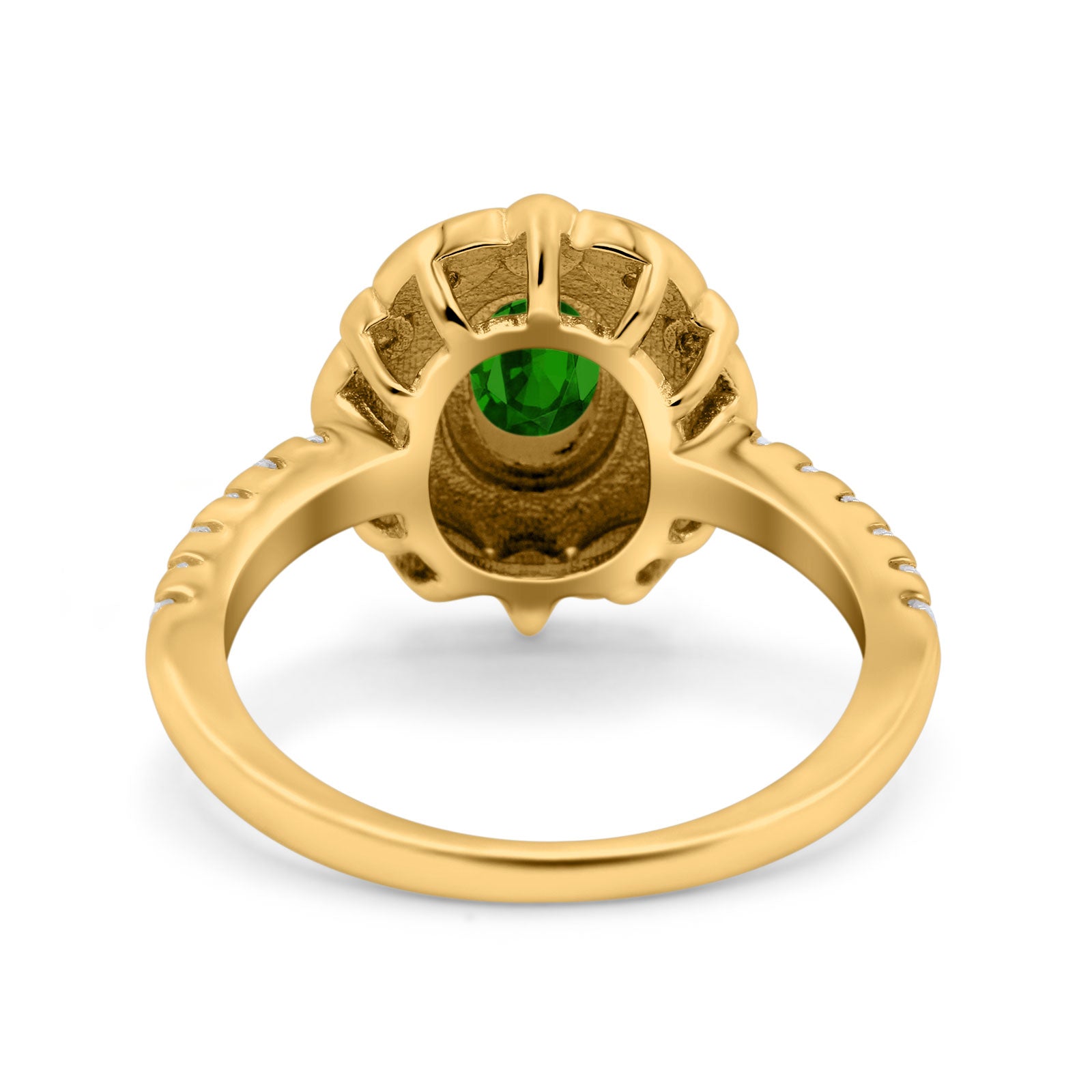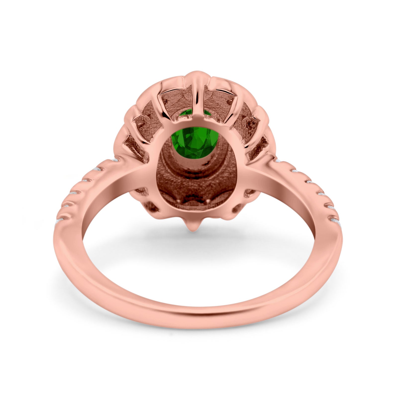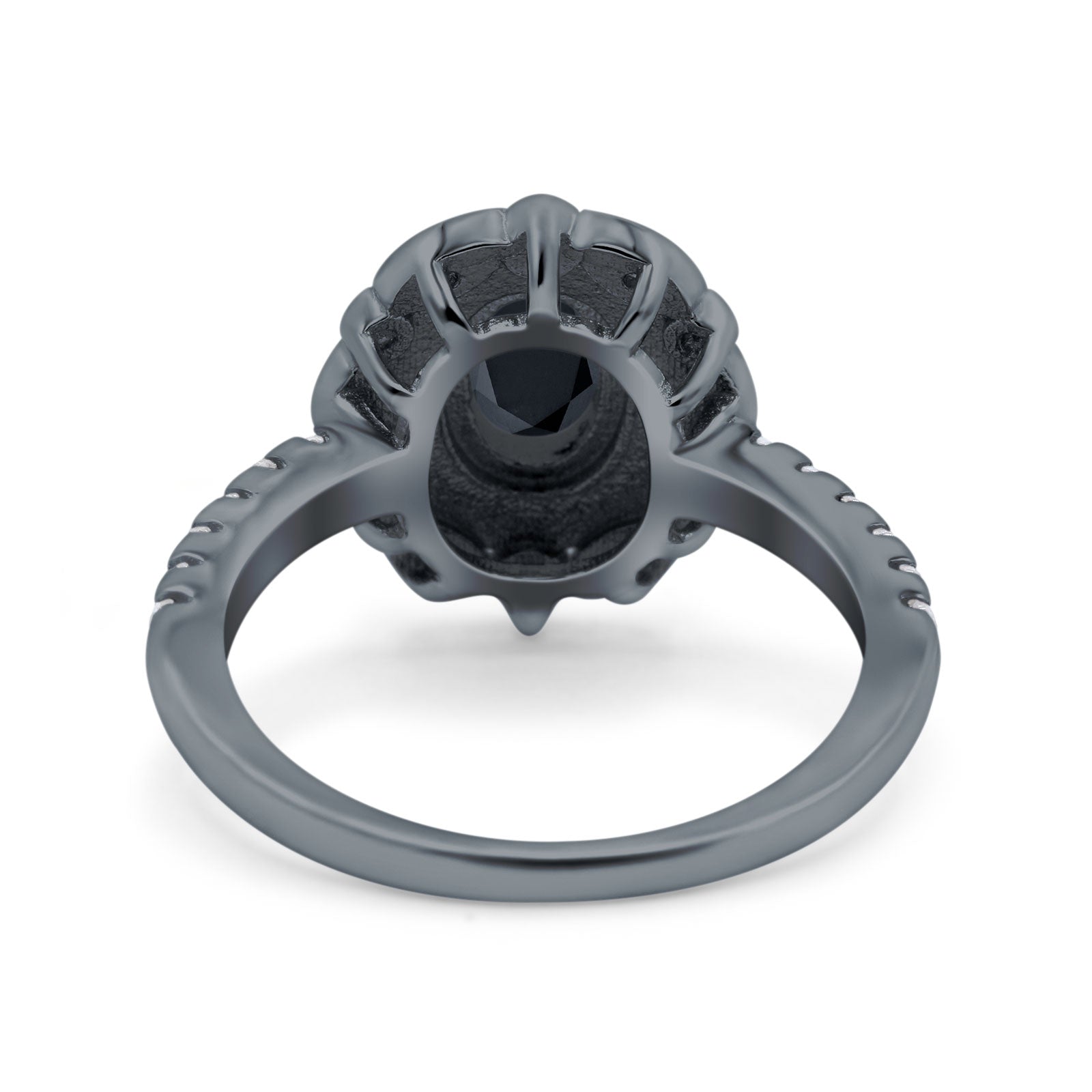 Halo Vintage Style Art Deco Solitaire Accent Oval Wedding Engagement Ring Simulated Cubic Zirconia 925 Sterling Silver