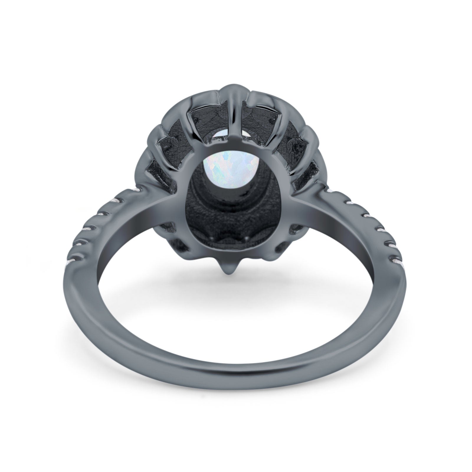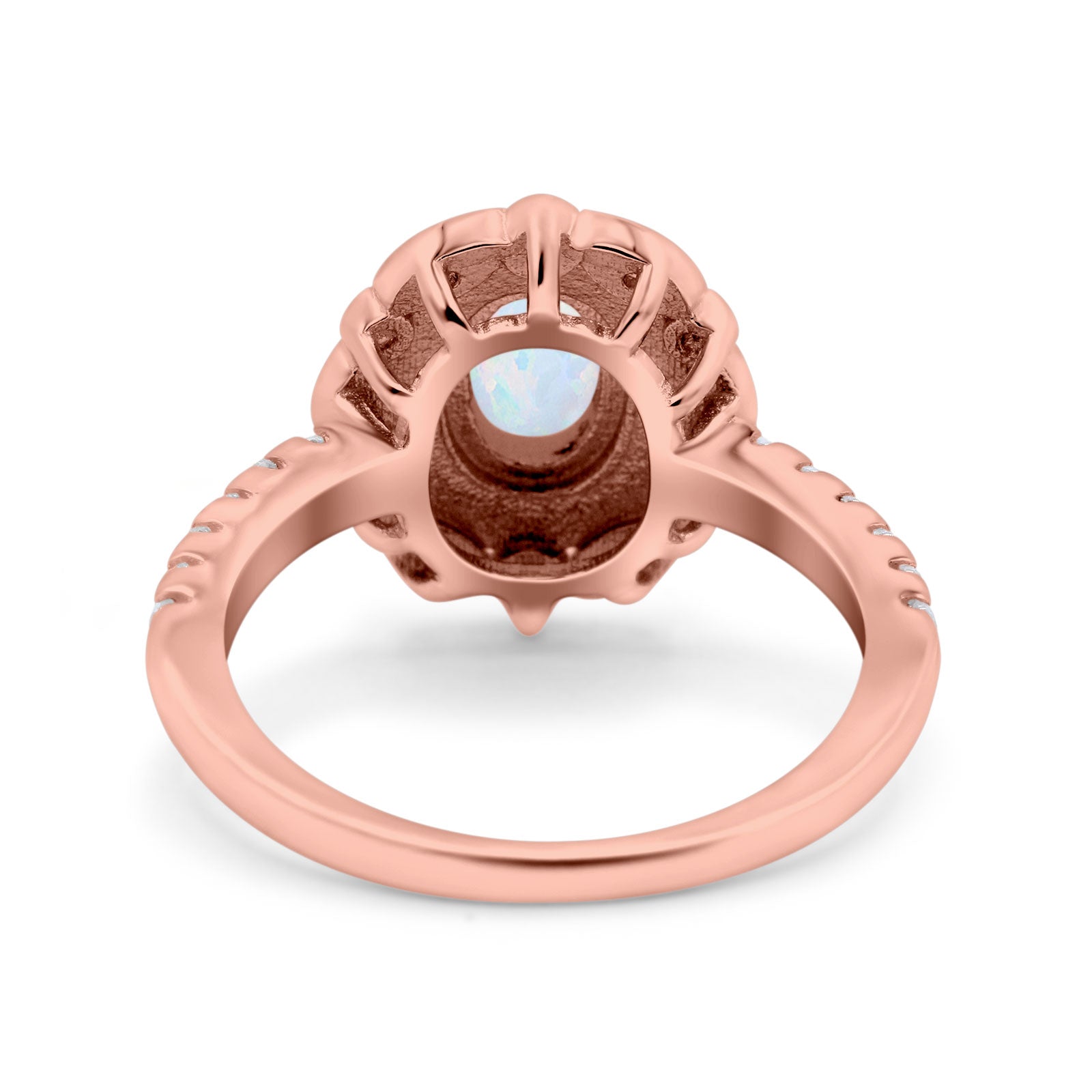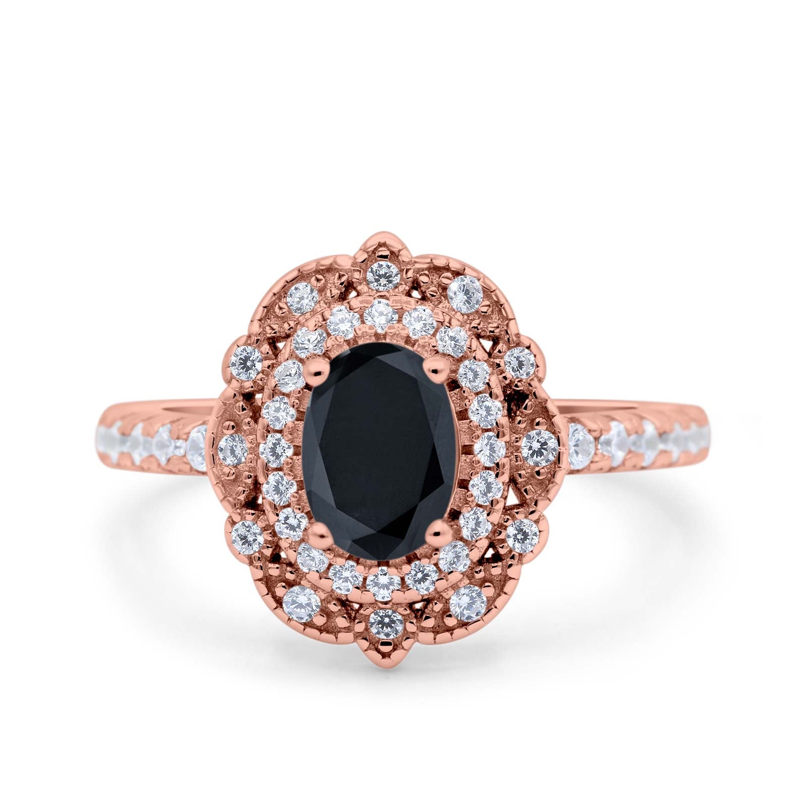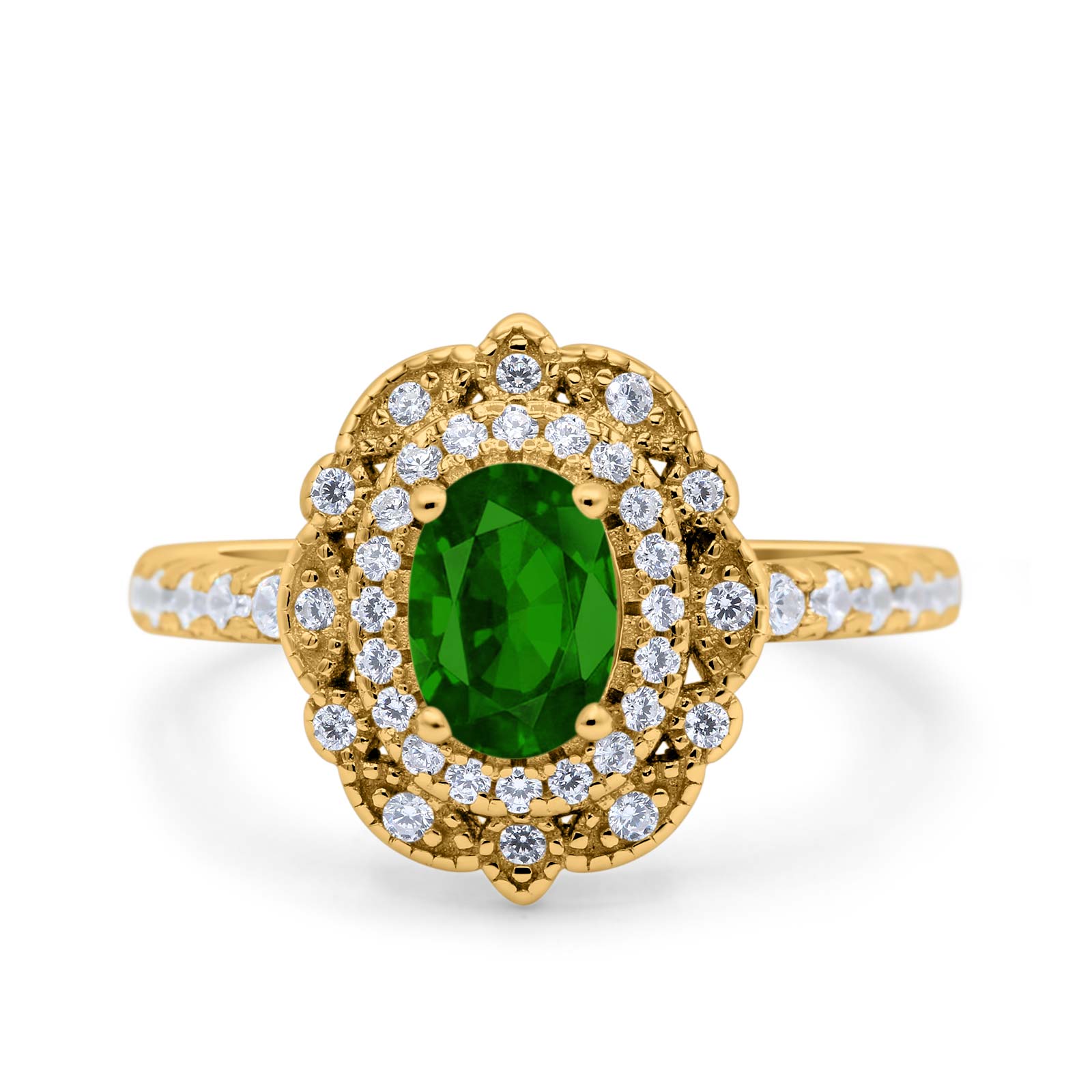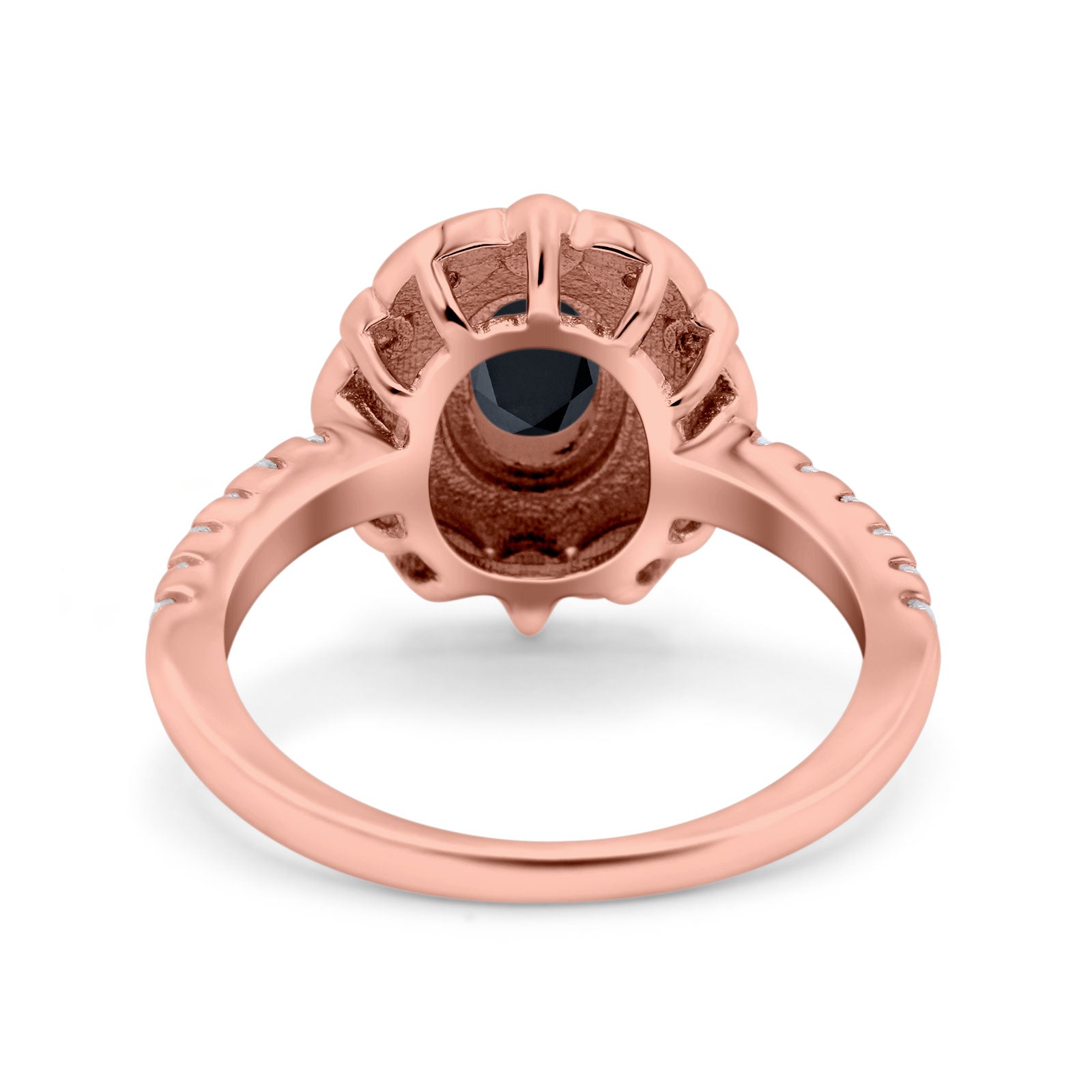 Halo Vintage Style Art Deco Solitaire Accent Oval Wedding Engagement Ring Simulated Cubic Zirconia 925 Sterling Silver