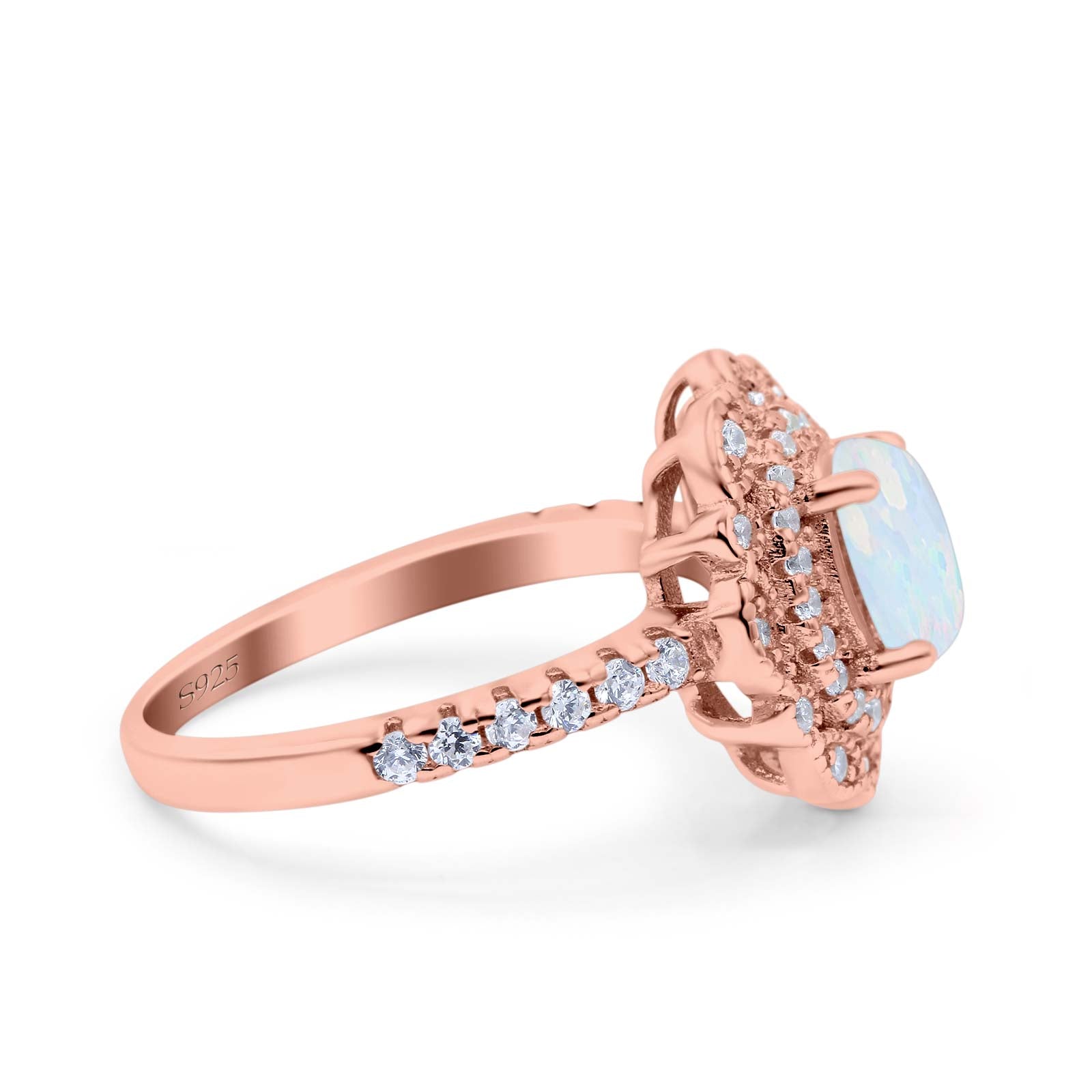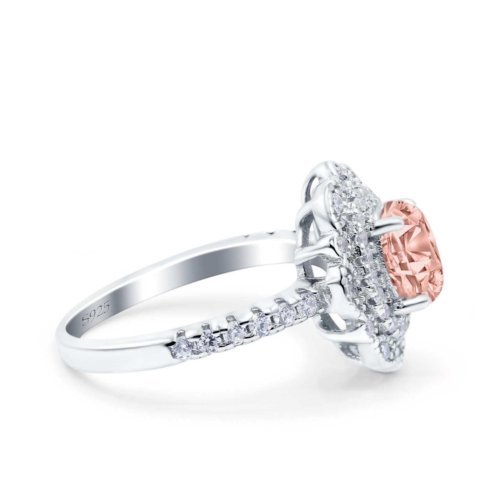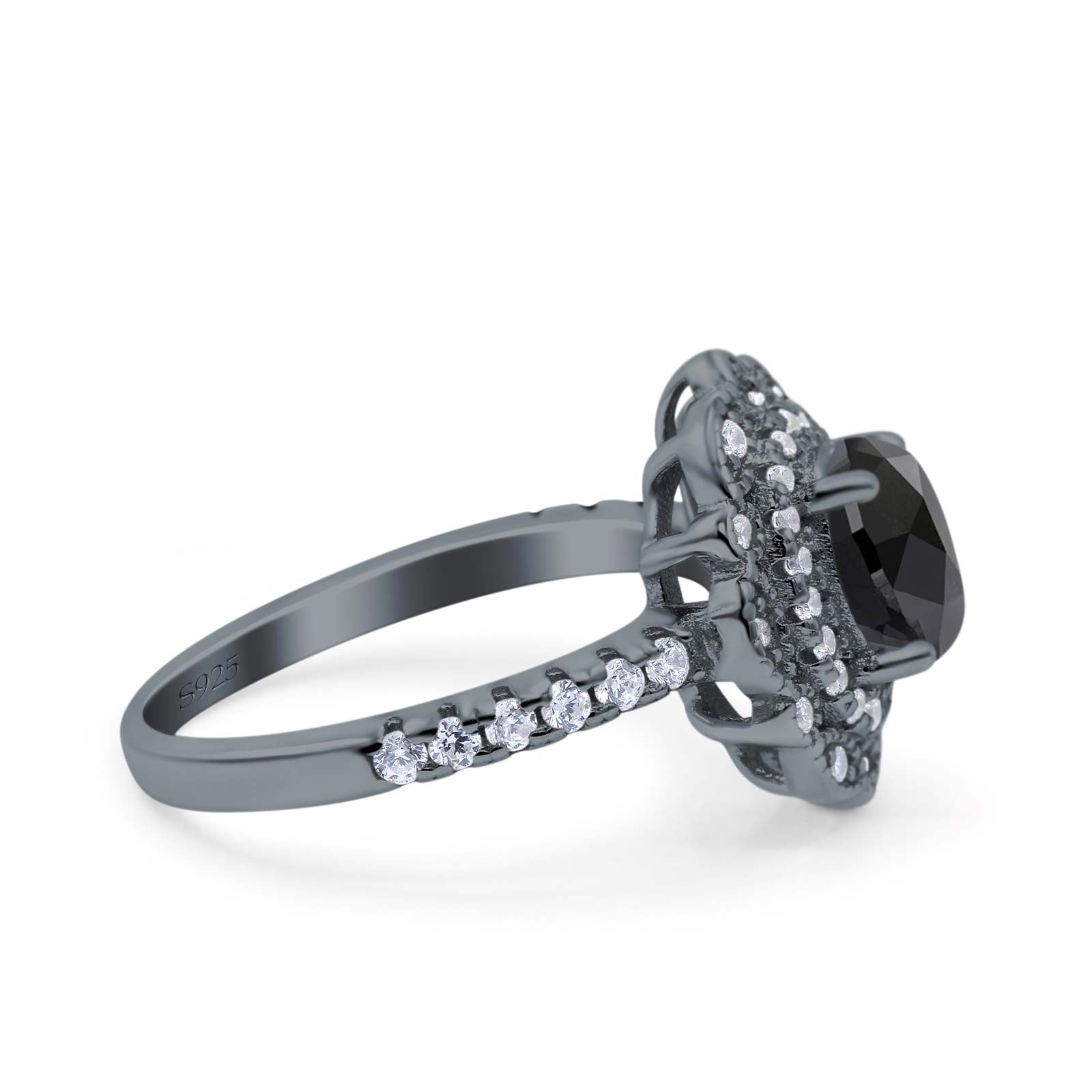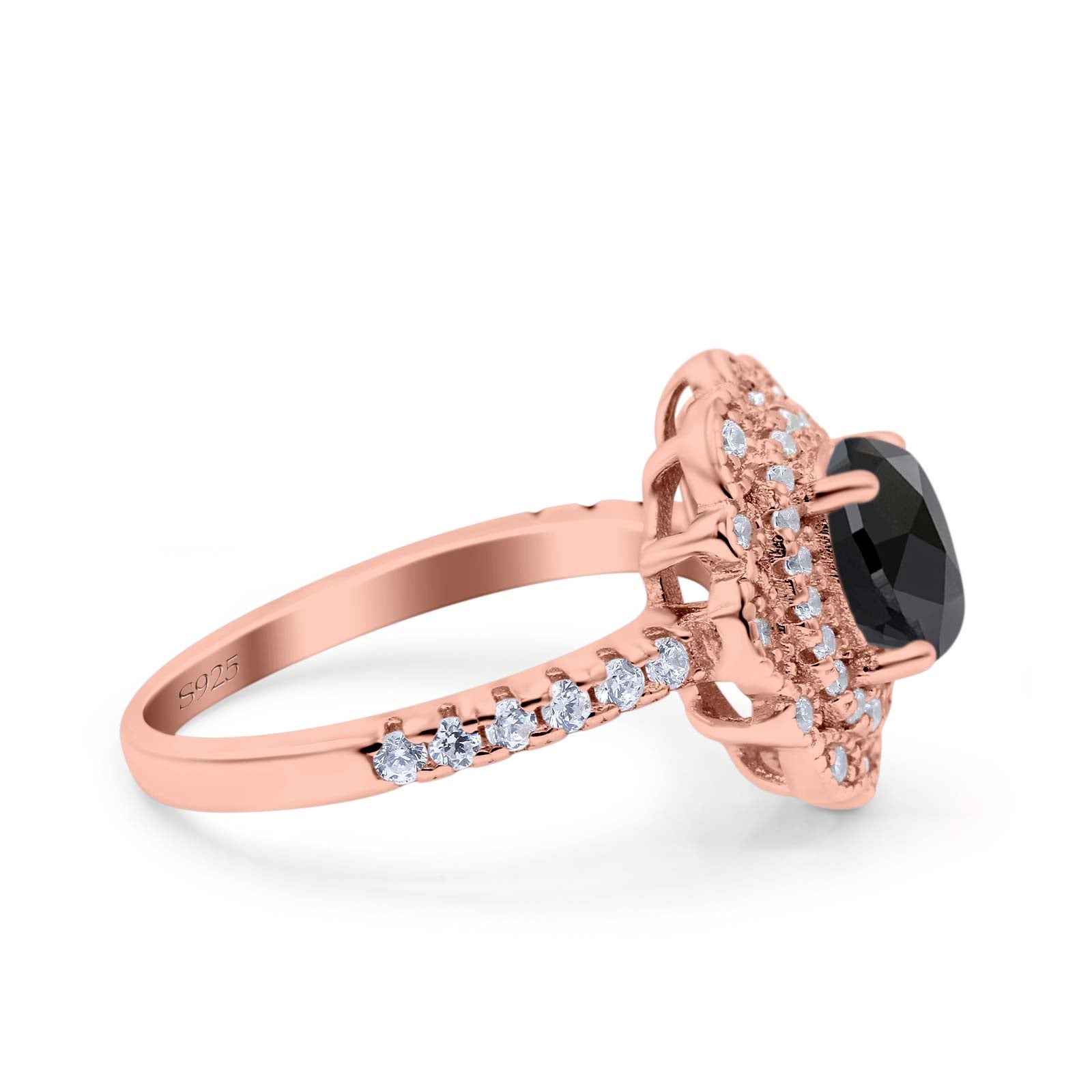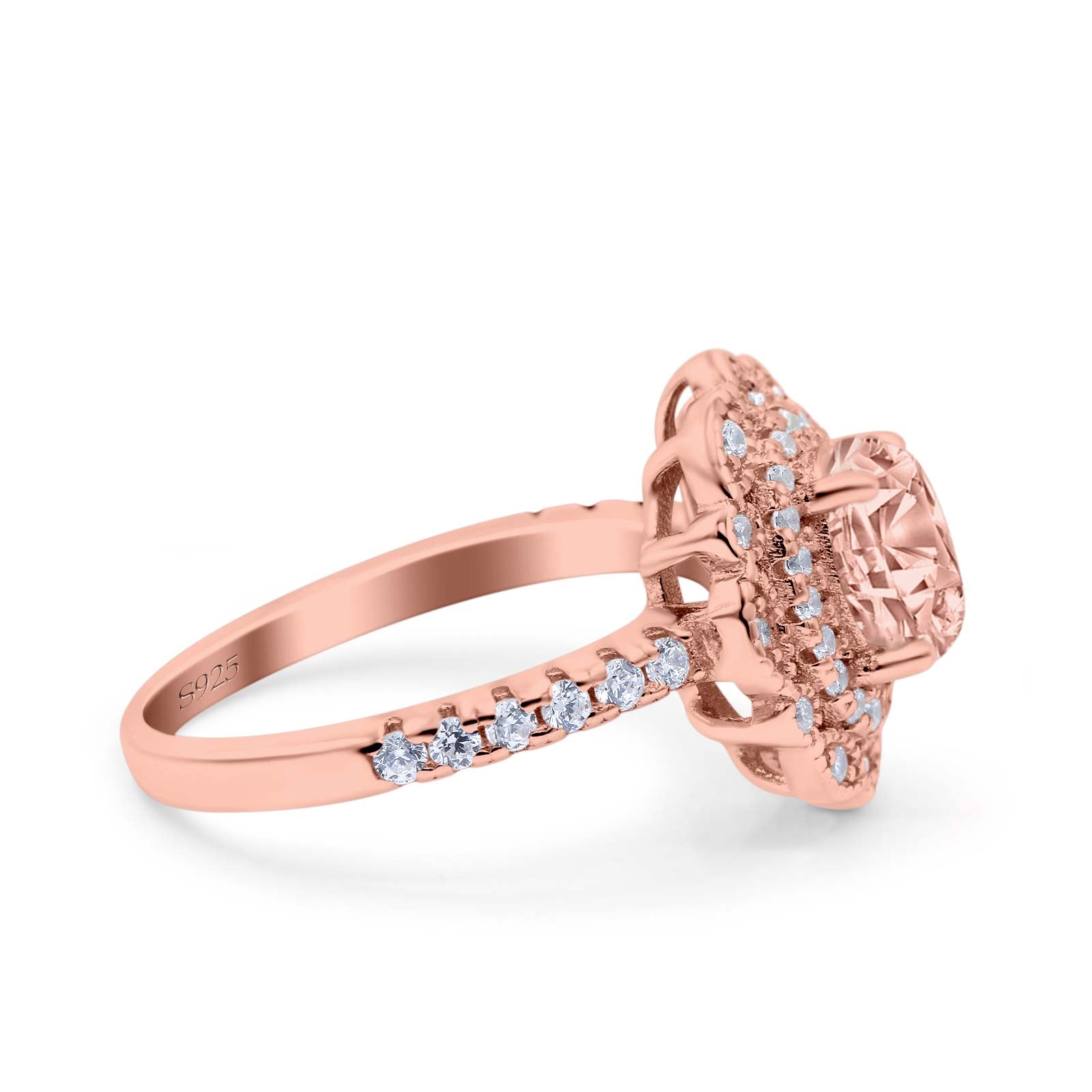 Halo Vintage Style Art Deco Solitaire Accent Oval Wedding Engagement Ring Simulated Cubic Zirconia 925 Sterling Silver