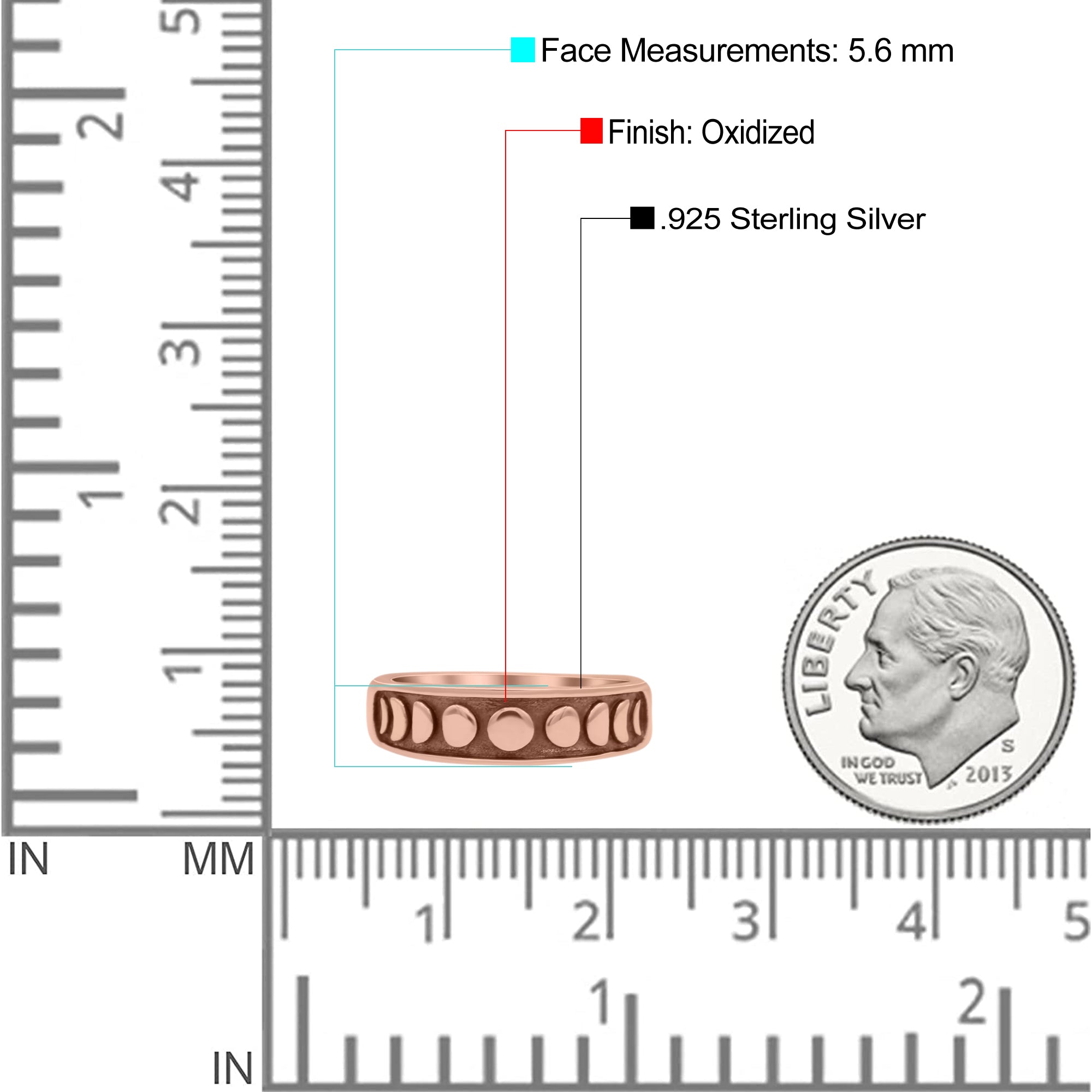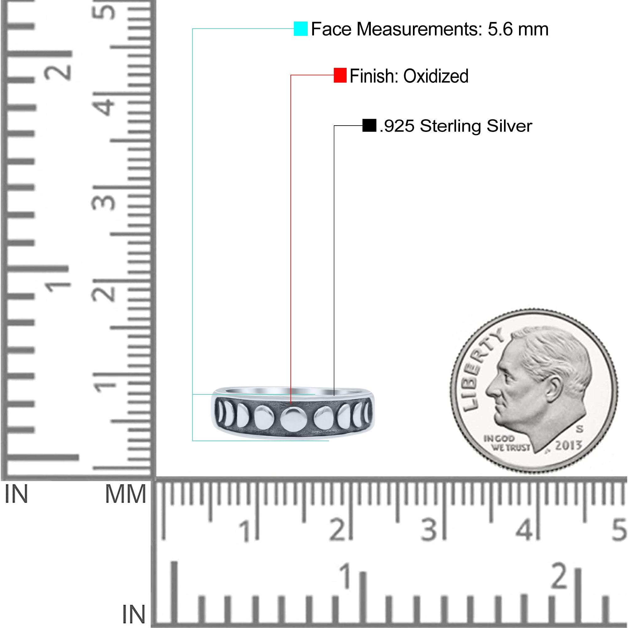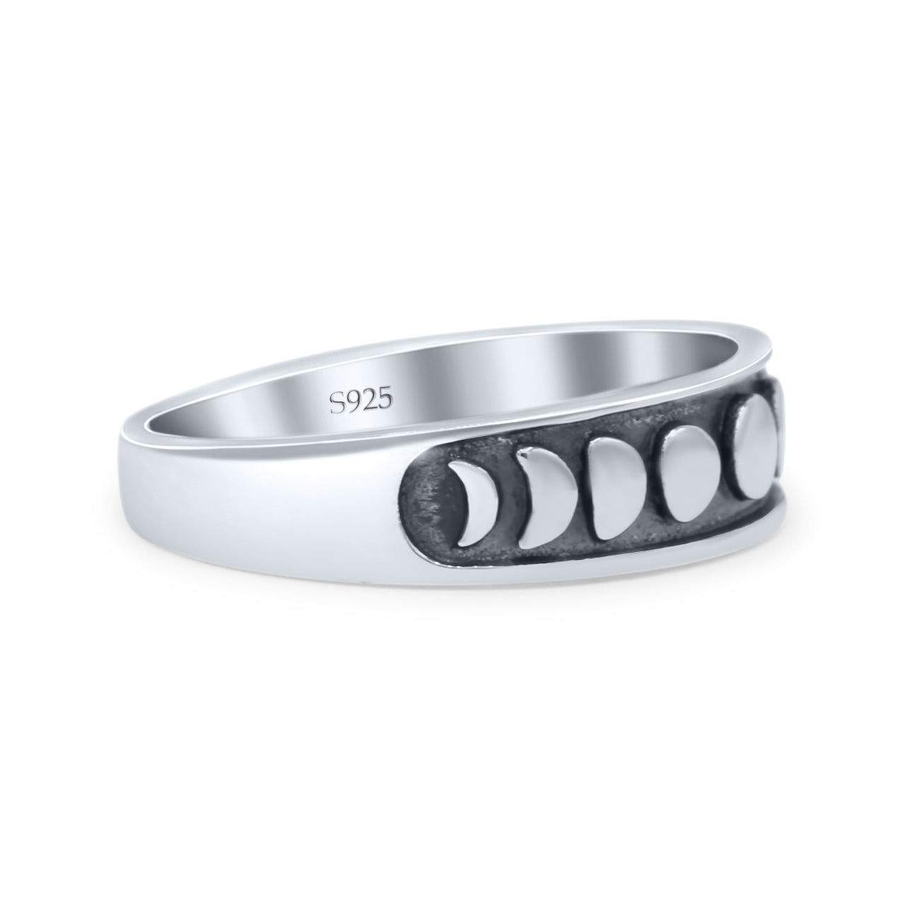 Handmade Vintage Crescent And Full Moon Phases Statement Style Trending Oxidized Band Thumb Ring (5.6mm)