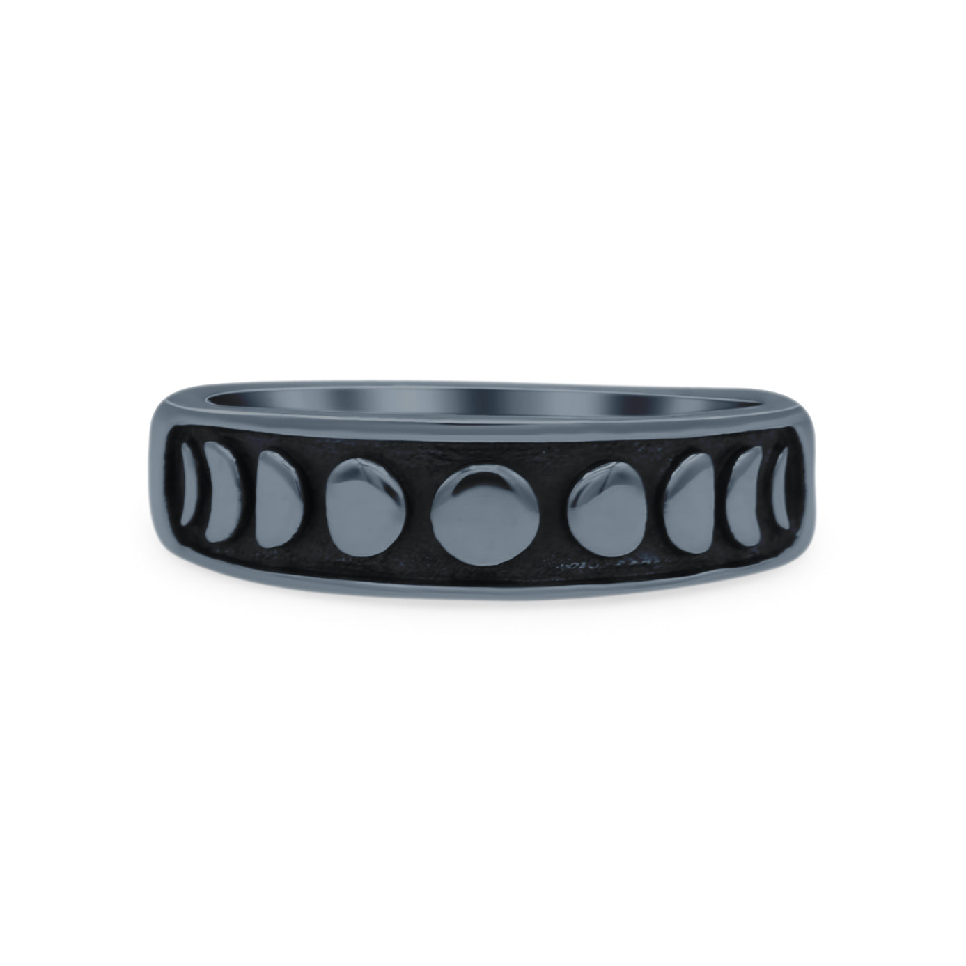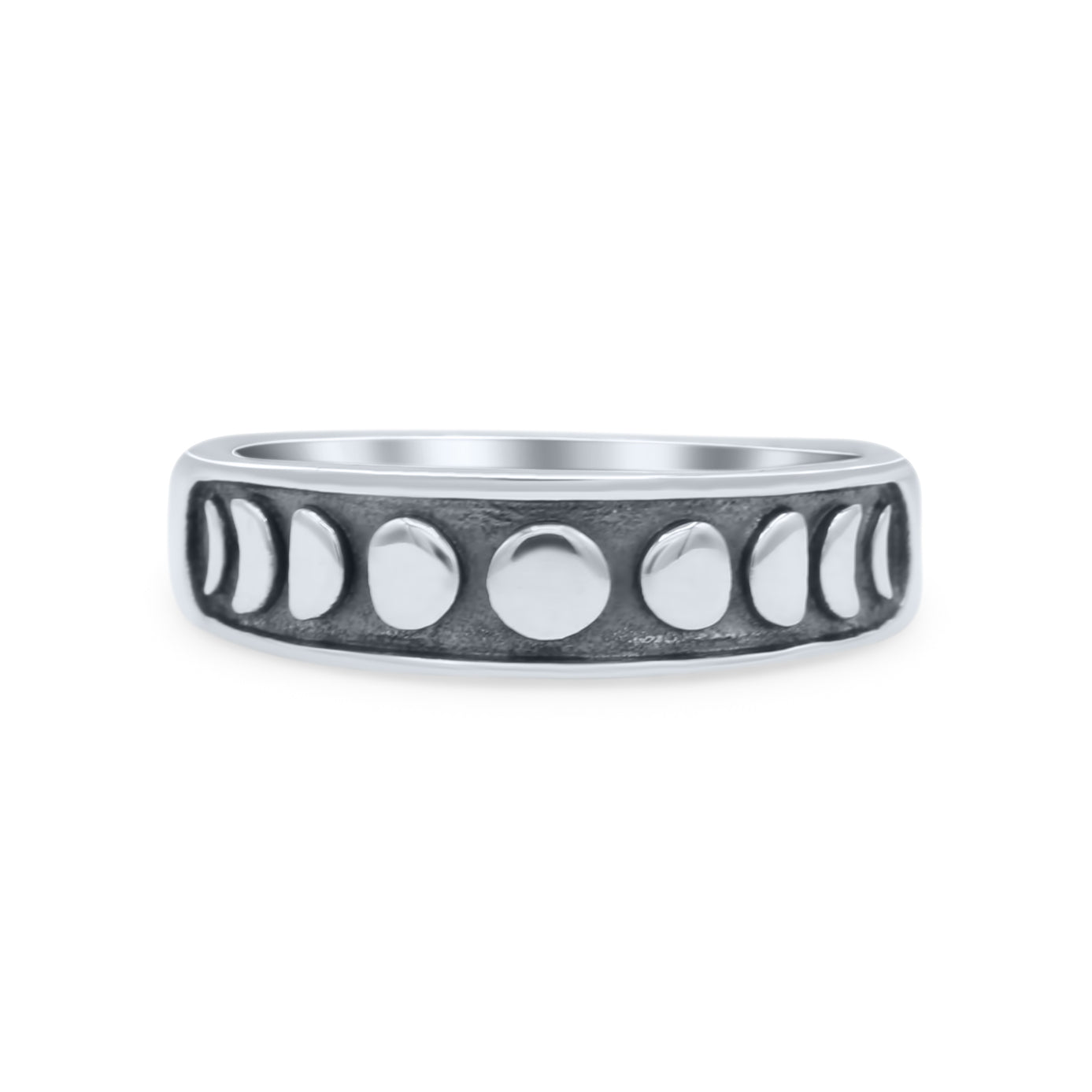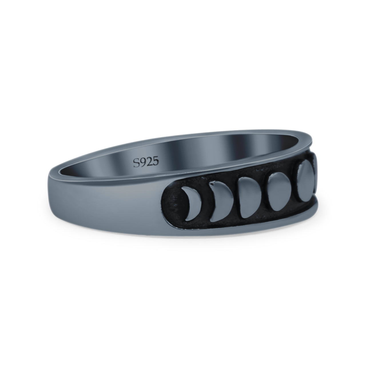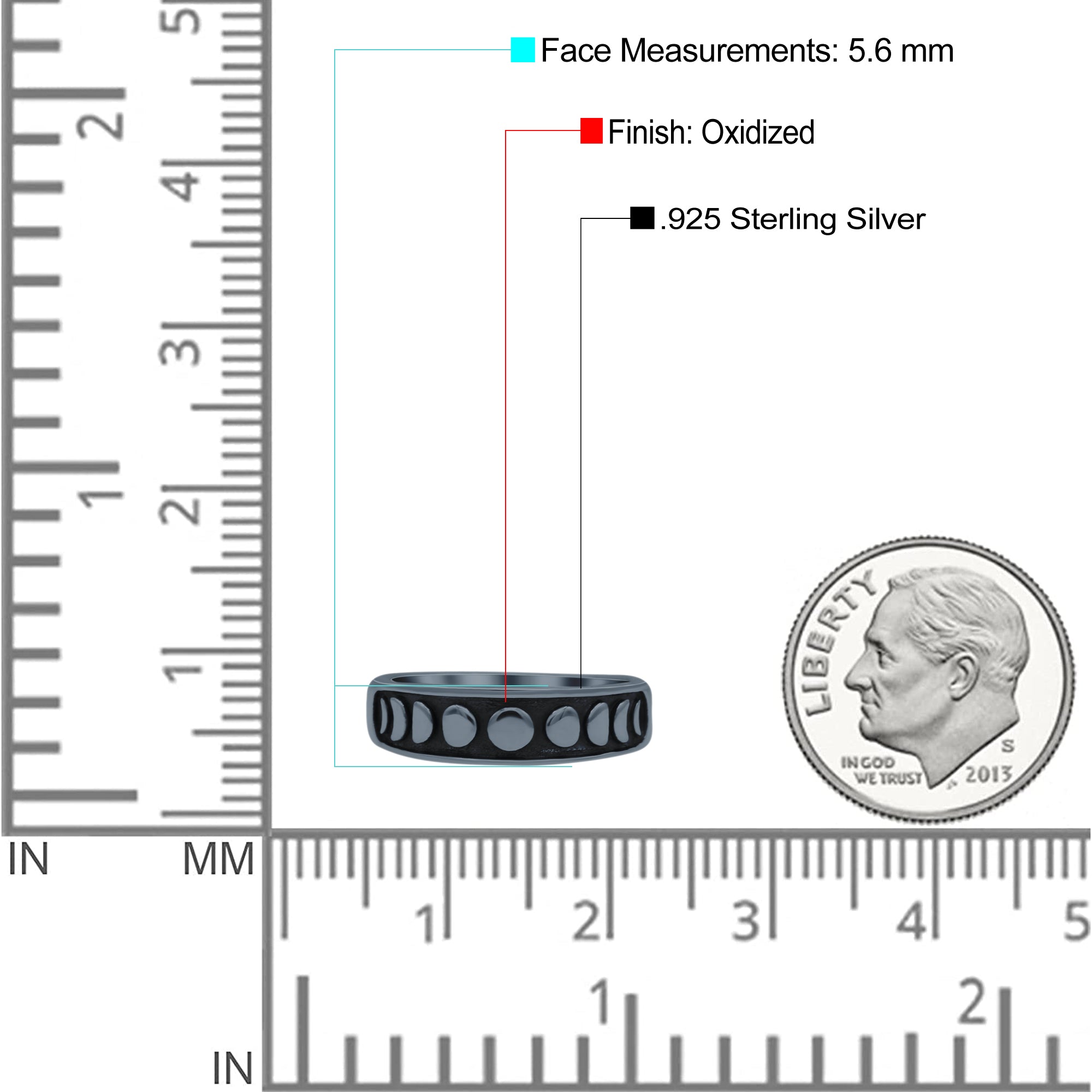 Handmade Vintage Crescent And Full Moon Phases Statement Style Trending Oxidized Band Thumb Ring (5.6mm)