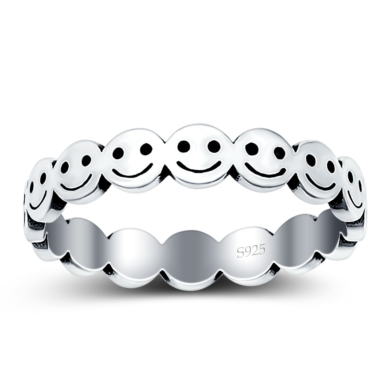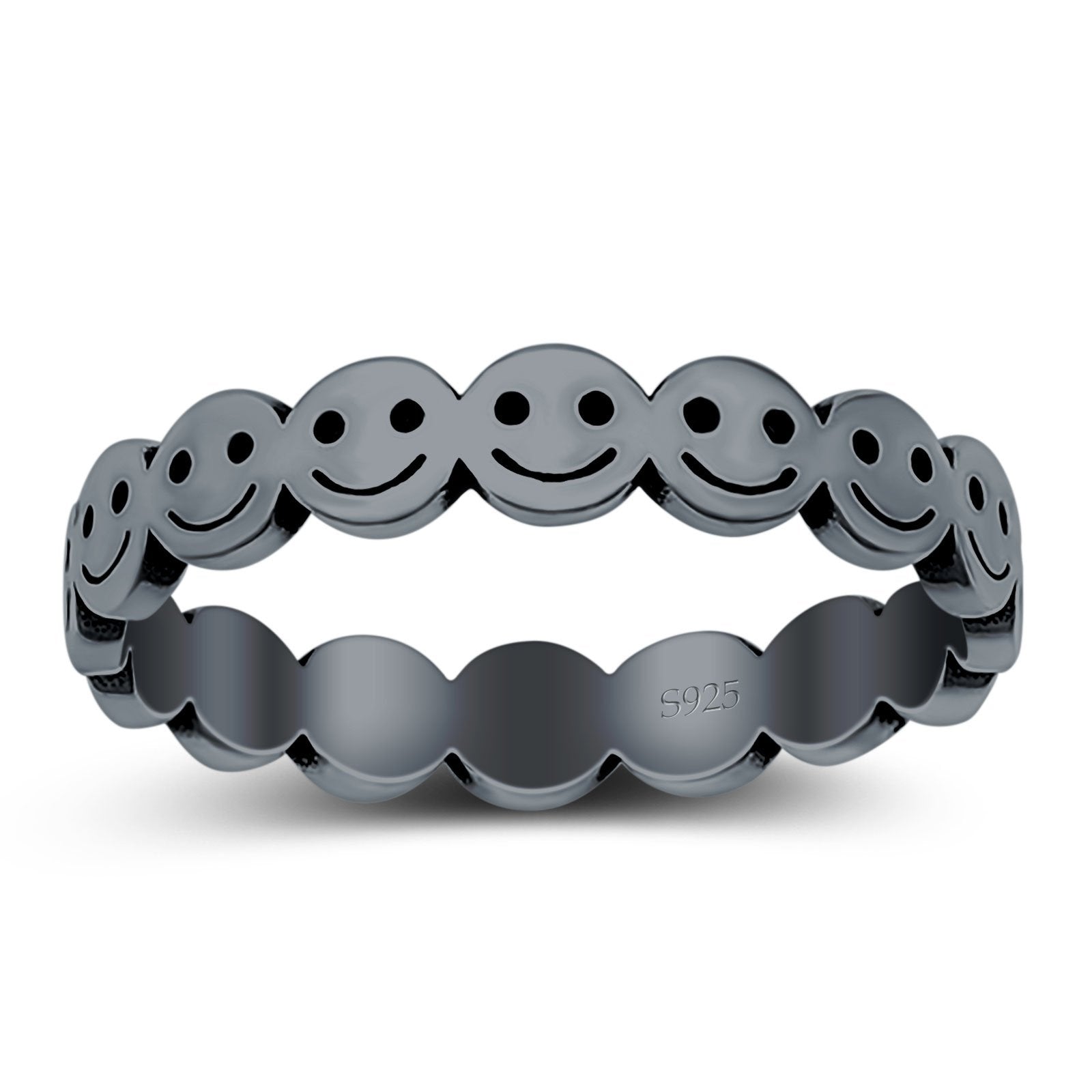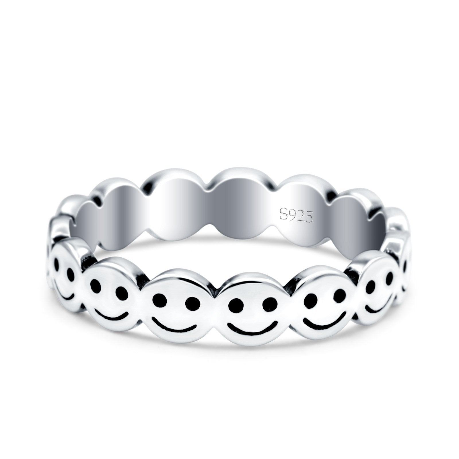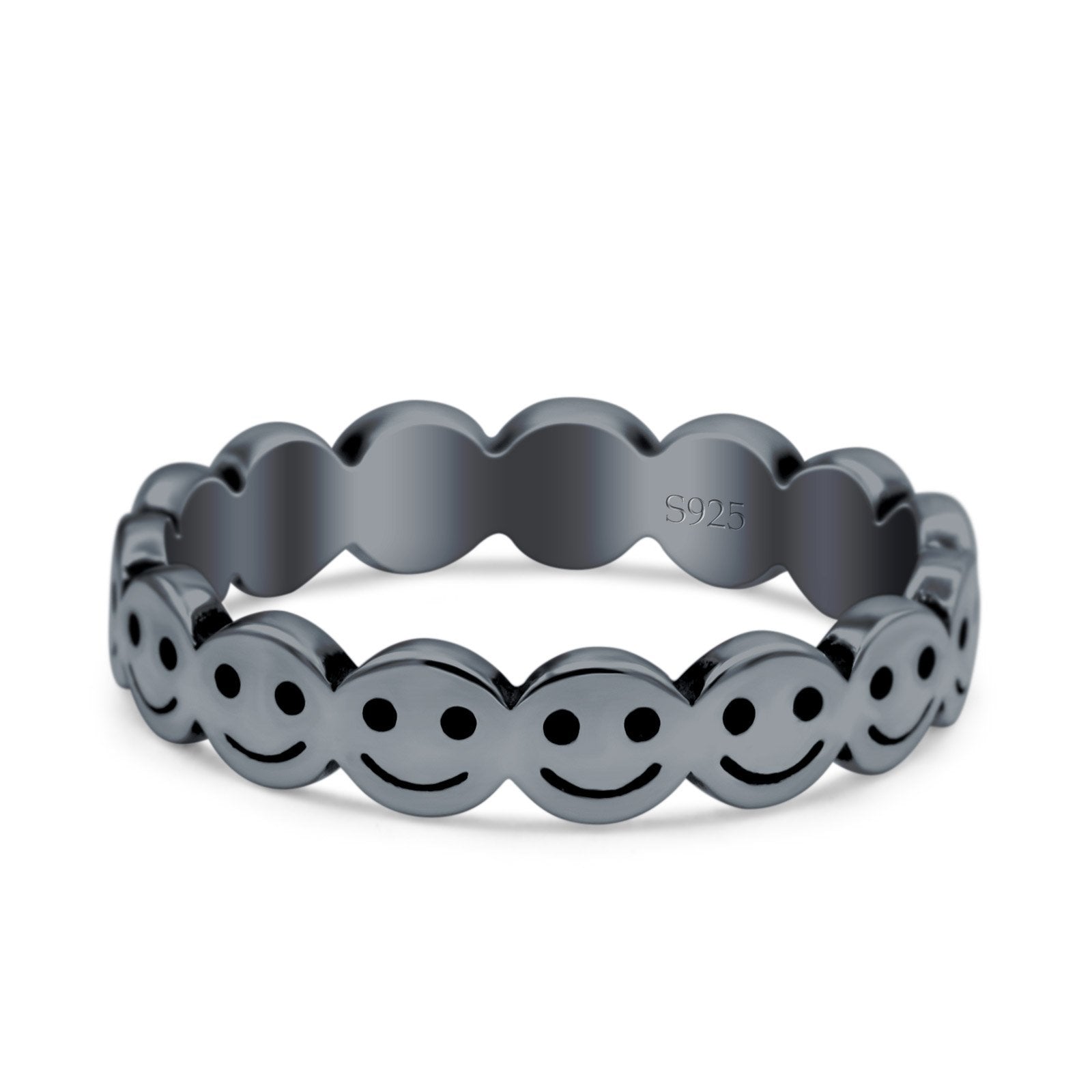 Happy Face Ring Oxidized Band Solid 925 Sterling Silver Thumb Ring (4mm)