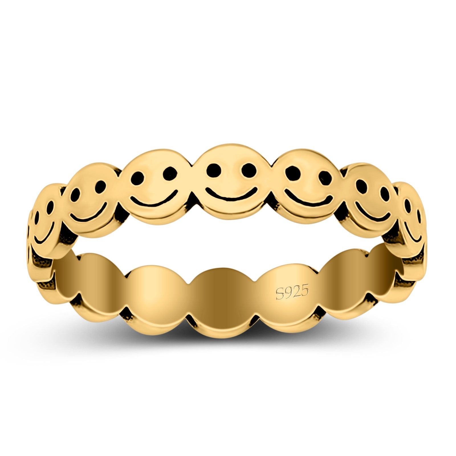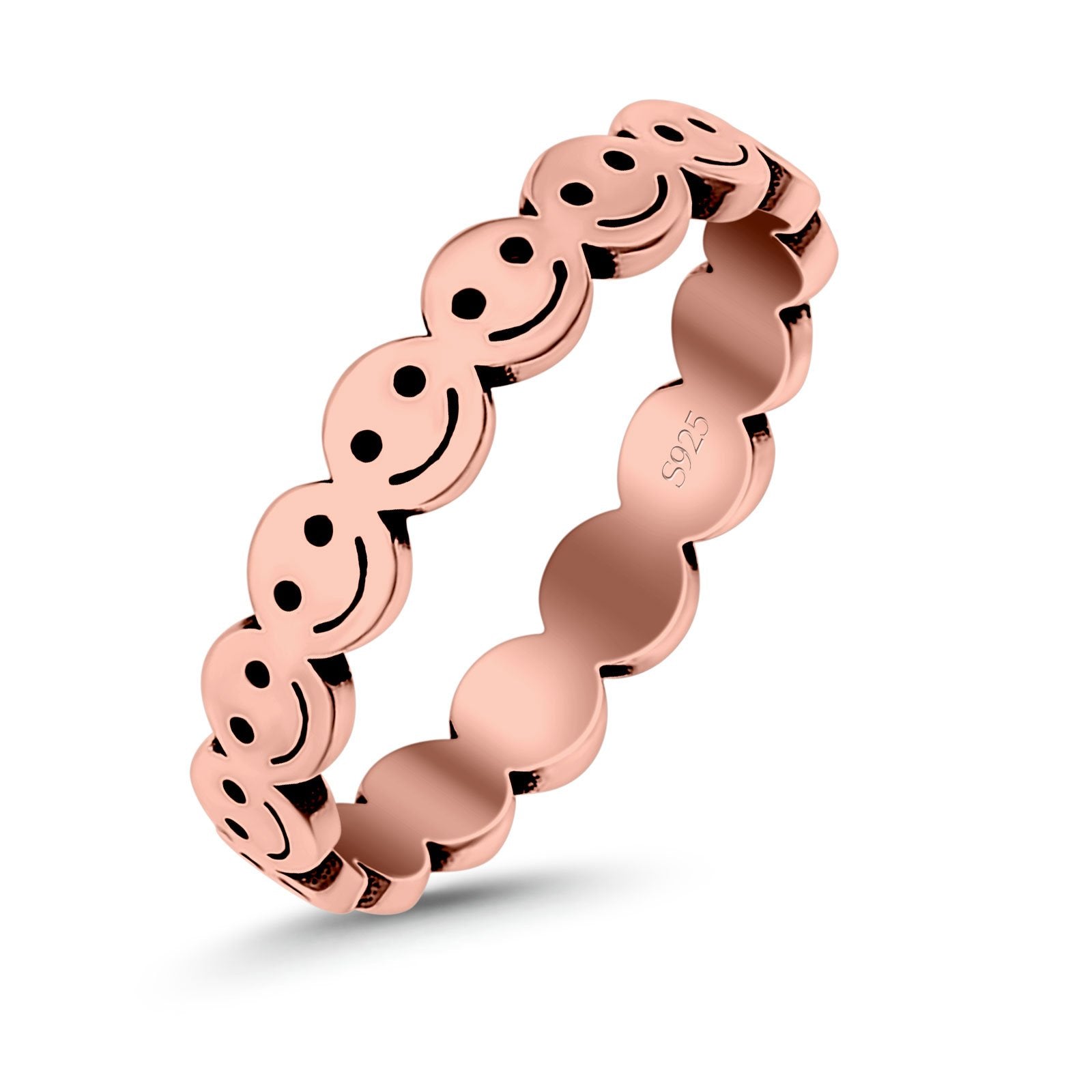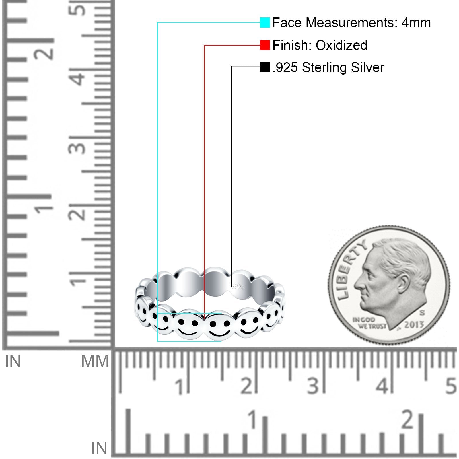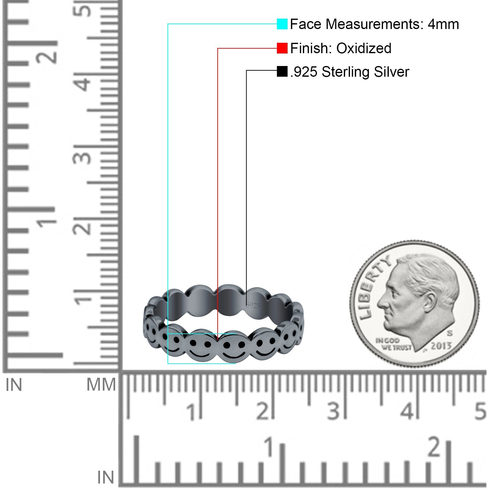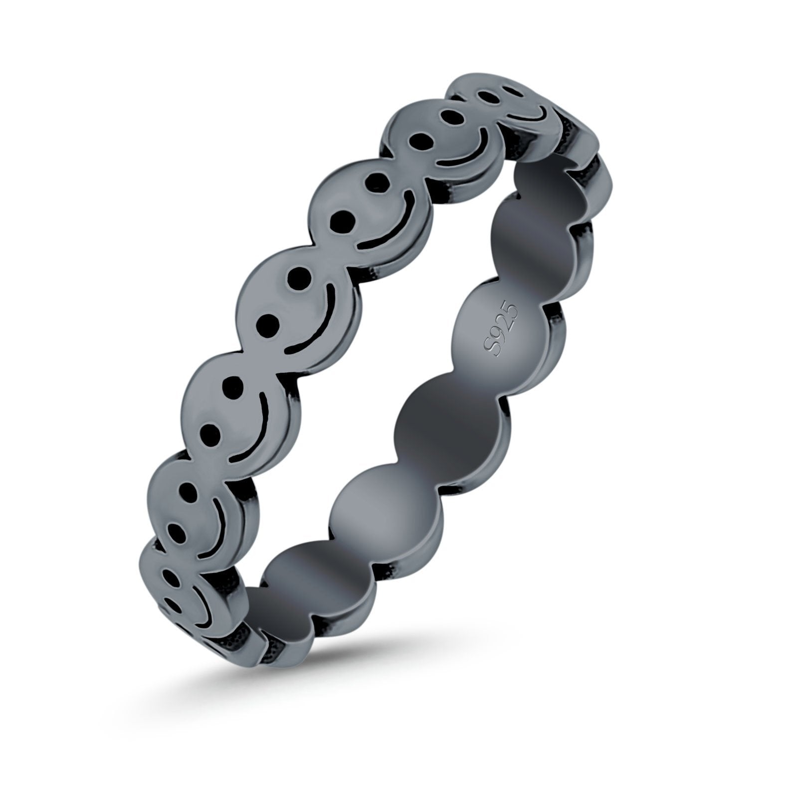 Happy Face Ring Oxidized Band Solid 925 Sterling Silver Thumb Ring (4mm)