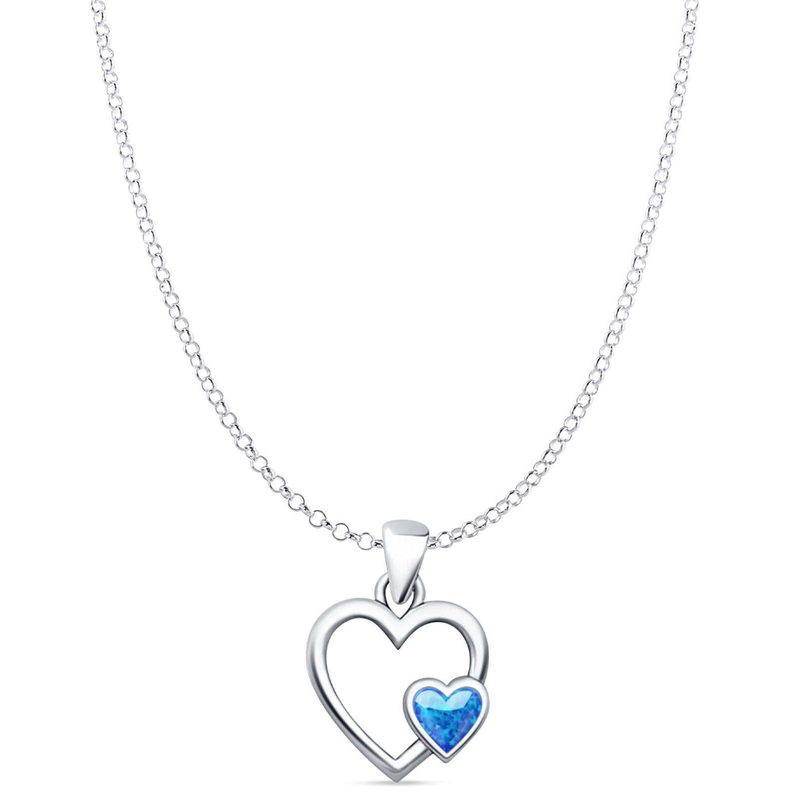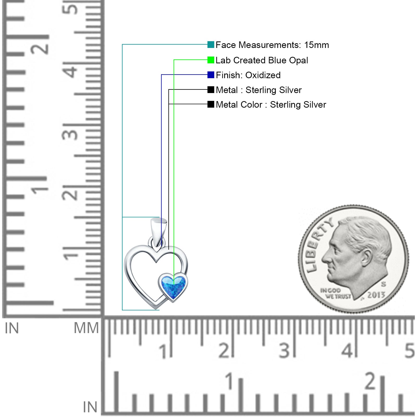 Heart Lab Created Blue Opal Oxidized Promise Filigree Pendant Rolo Chain Necklace 925 Sterling Silver