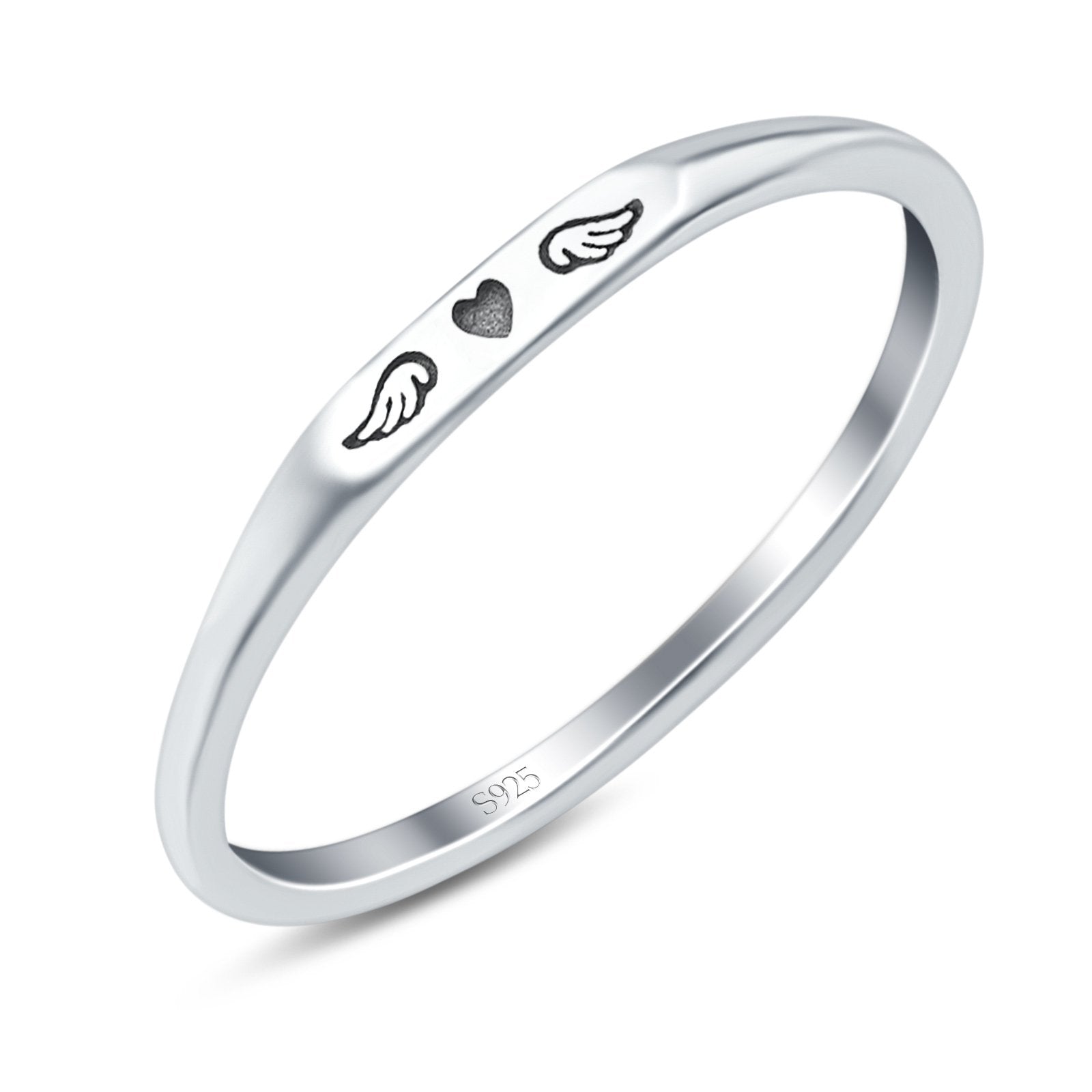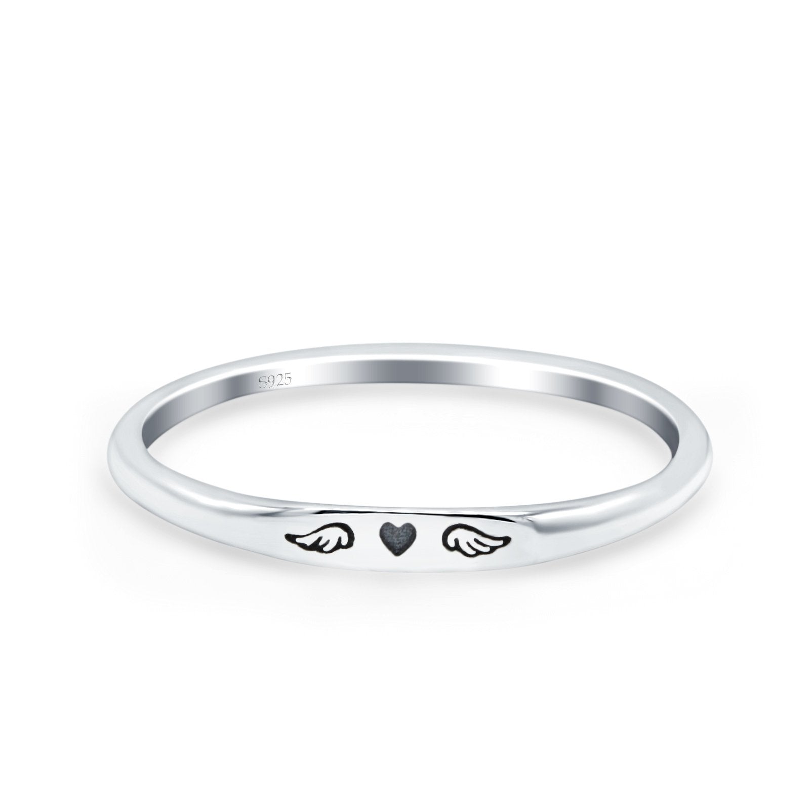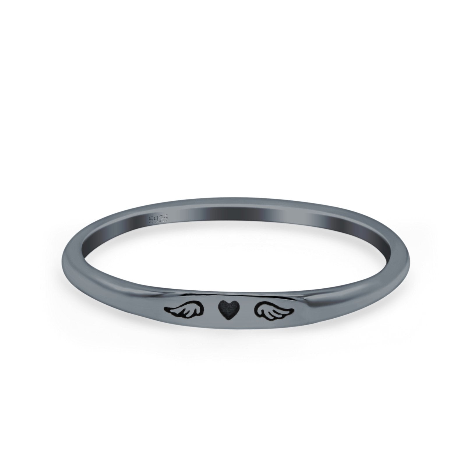 Heart & Wings Ring Oxidized Band Solid 925 Sterling Silver Thumb Ring (2.2mm)