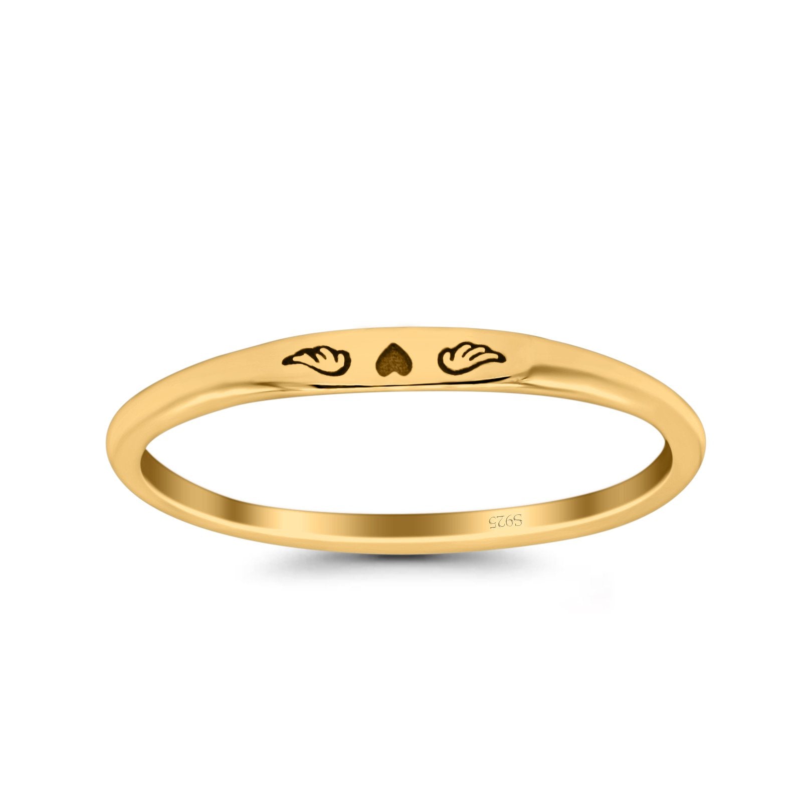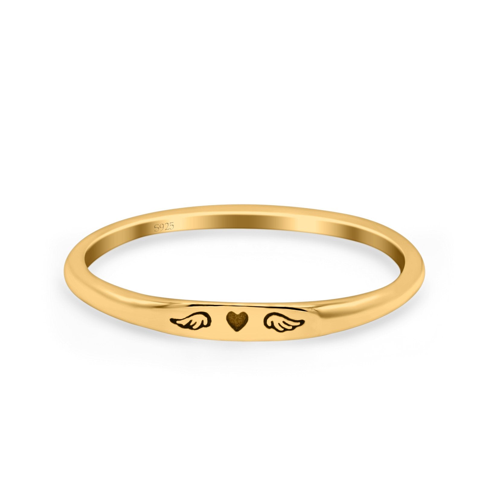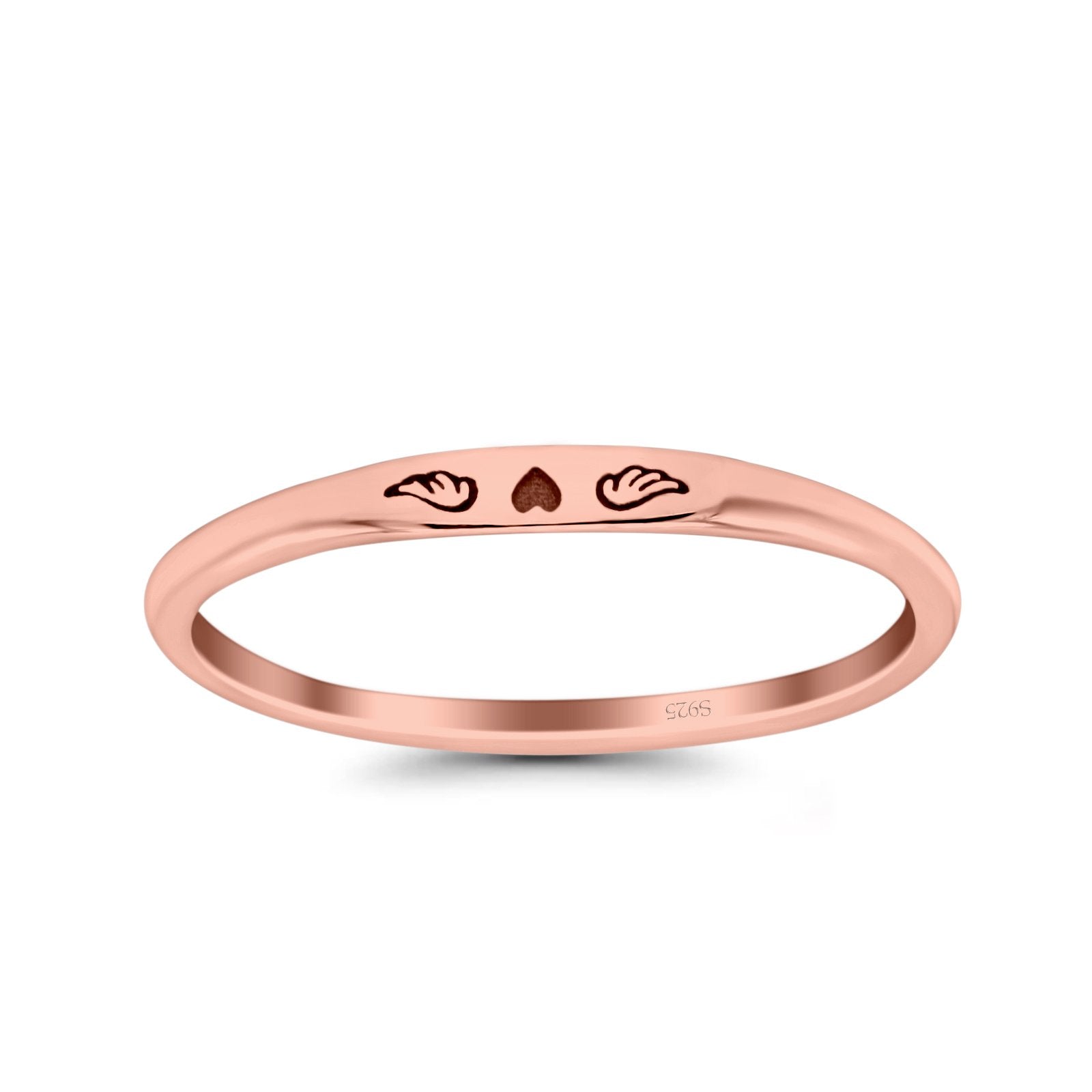 Heart & Wings Ring Oxidized Band Solid 925 Sterling Silver Thumb Ring (2.2mm)