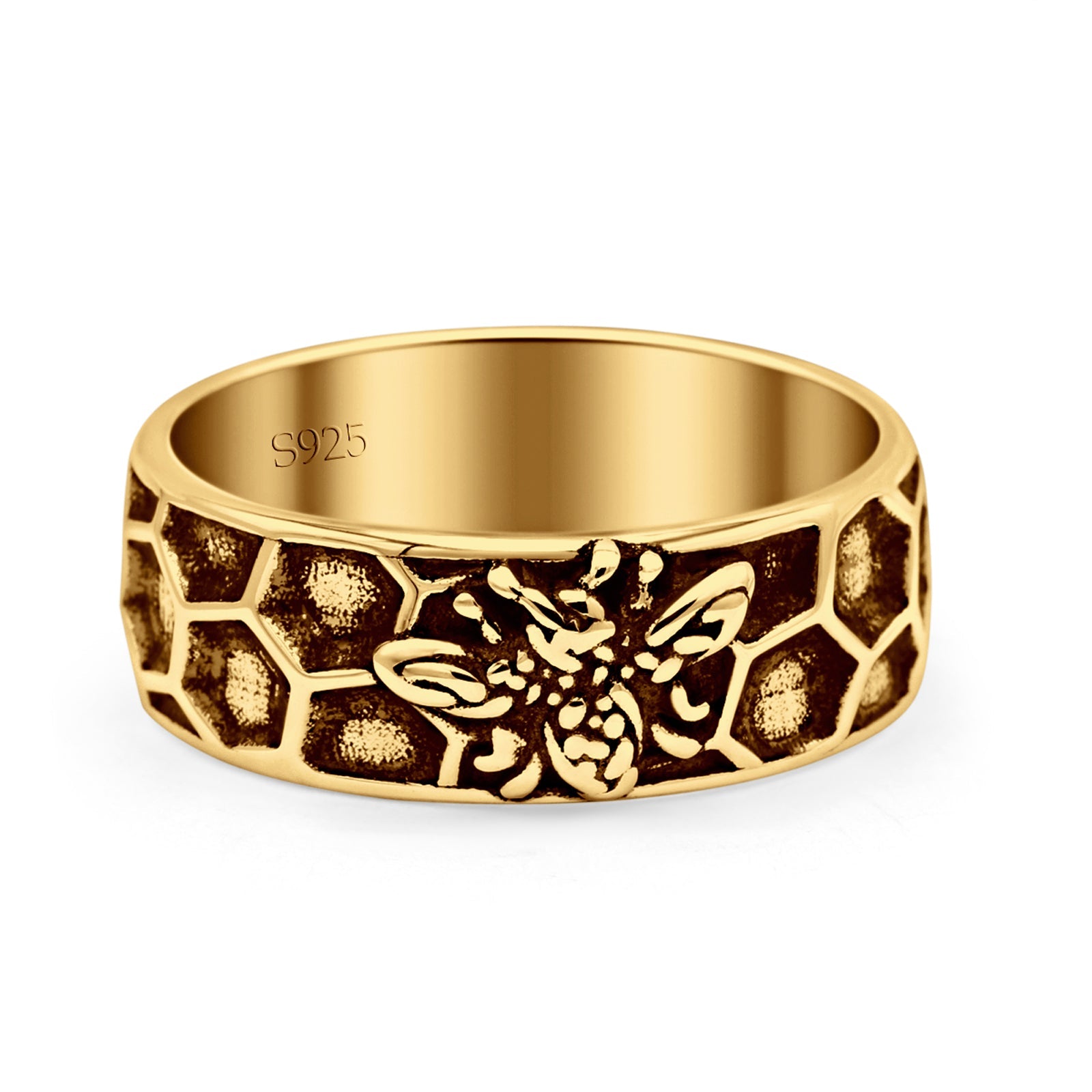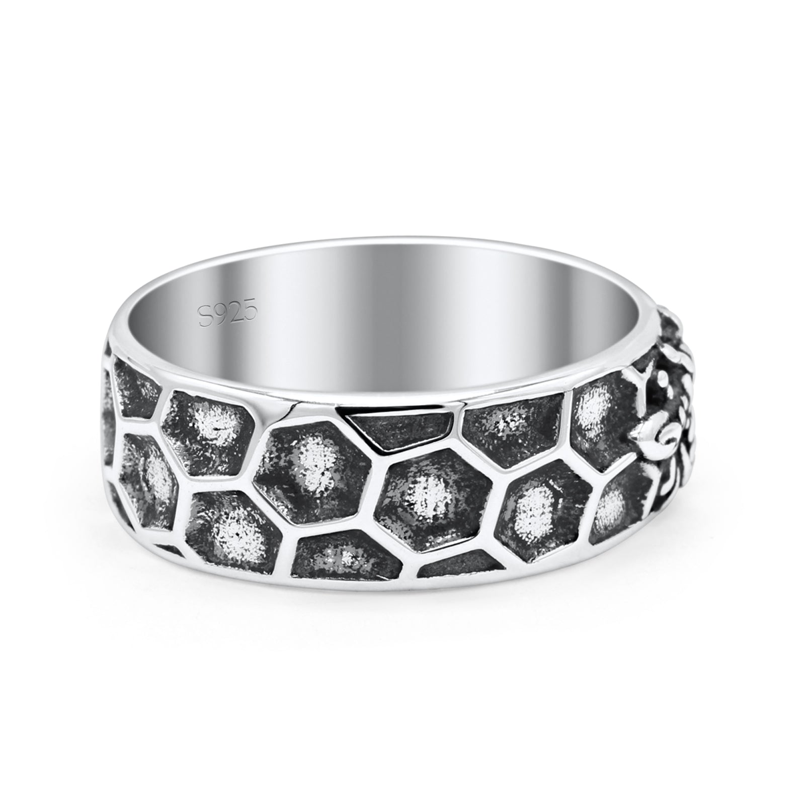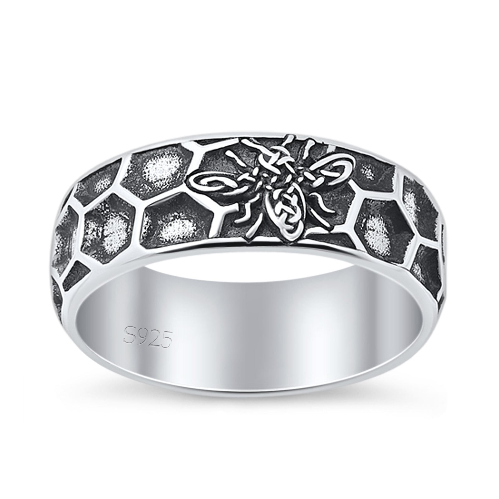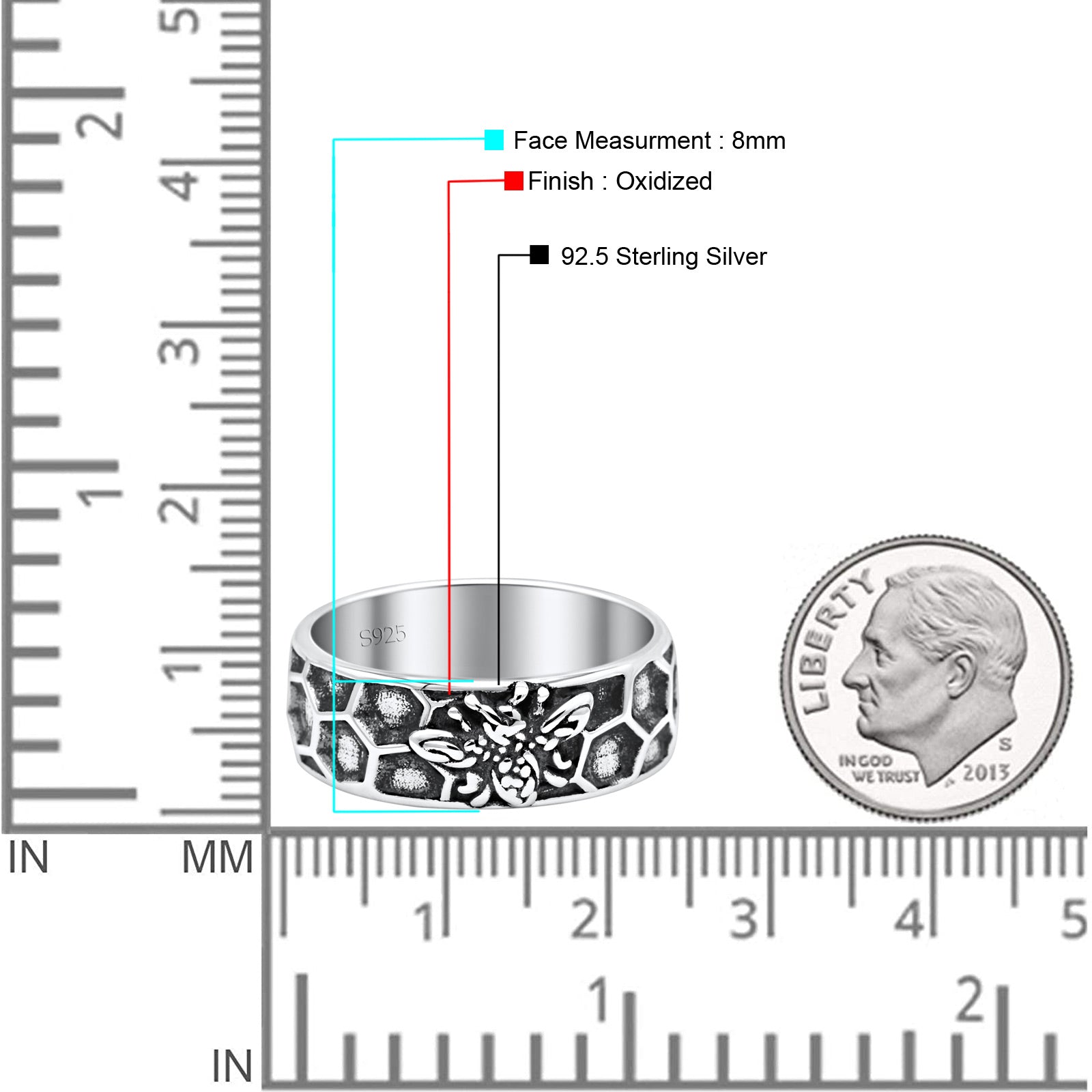 Honey Bee Band Oxidized Solid 925 Sterling Silver (8mm)