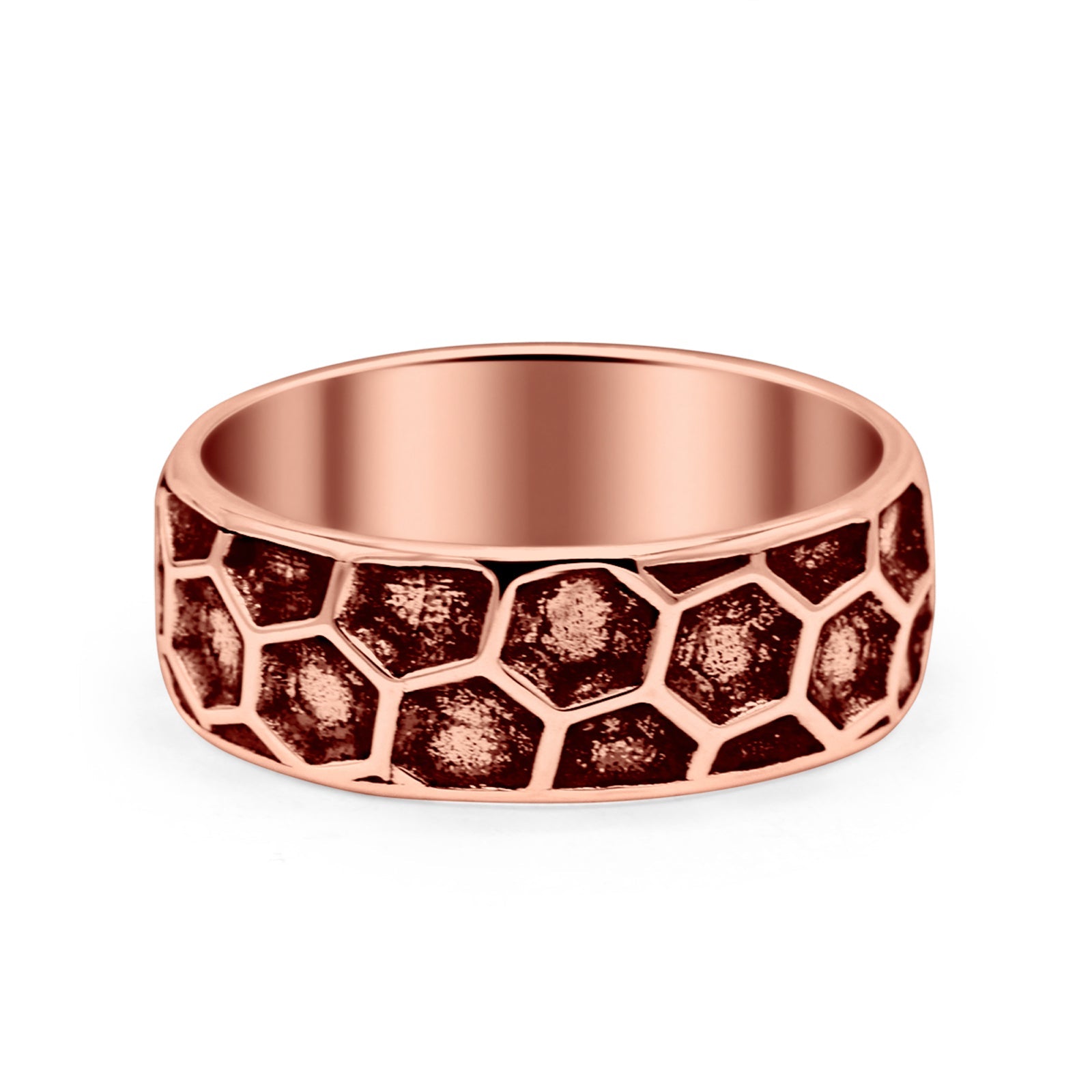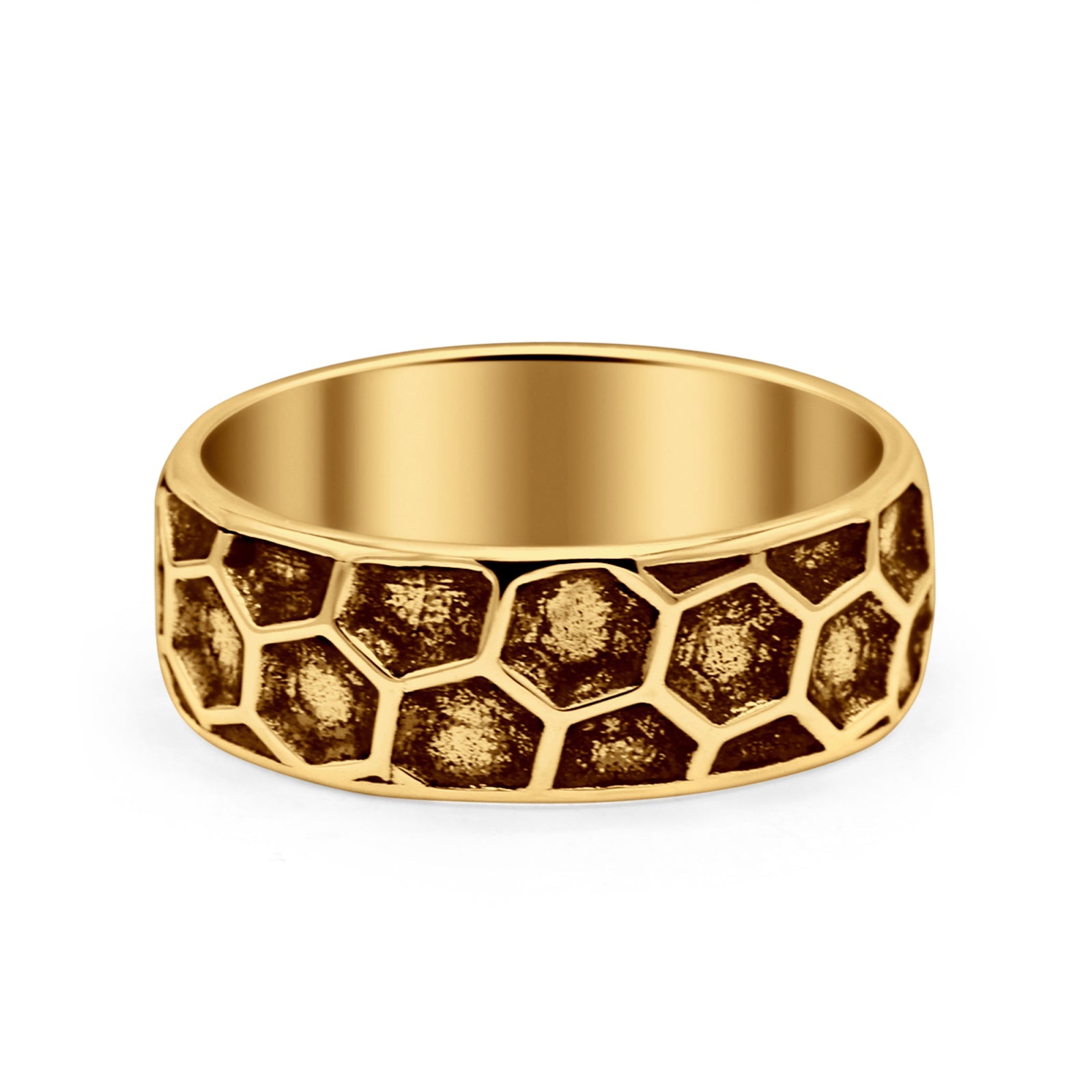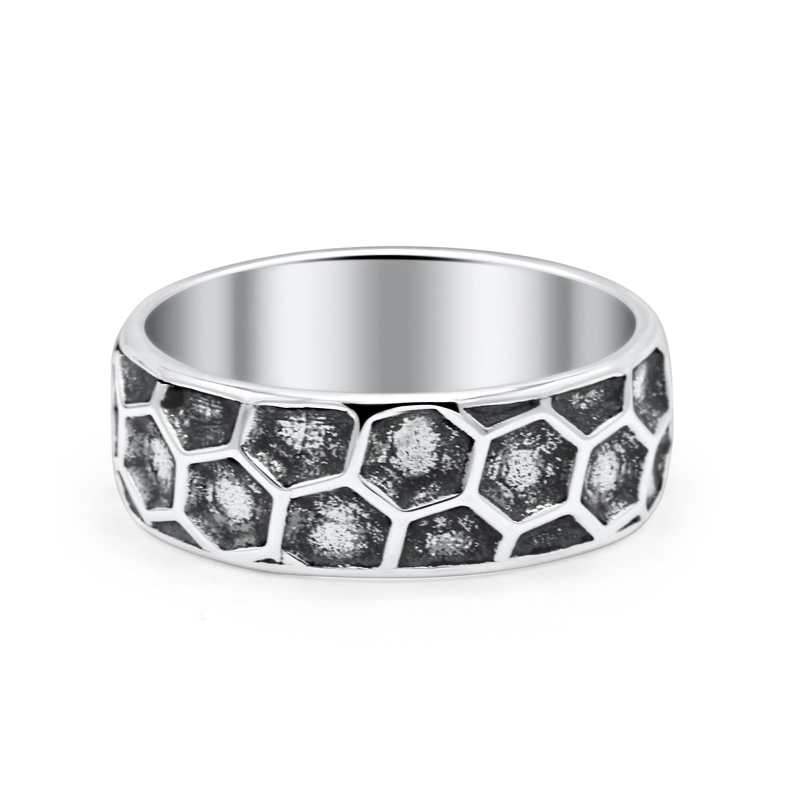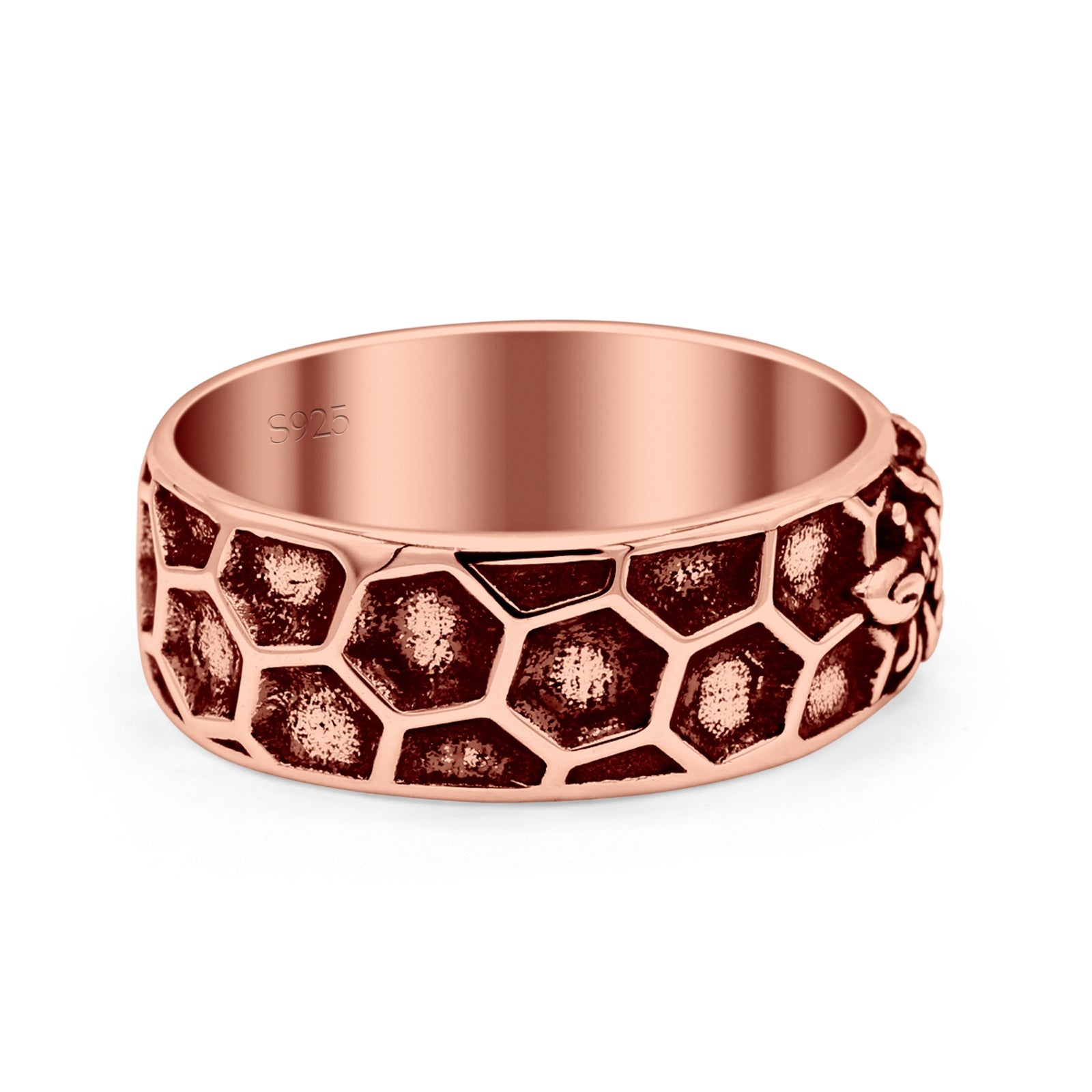 Honey Bee Band Oxidized Solid 925 Sterling Silver (8mm)