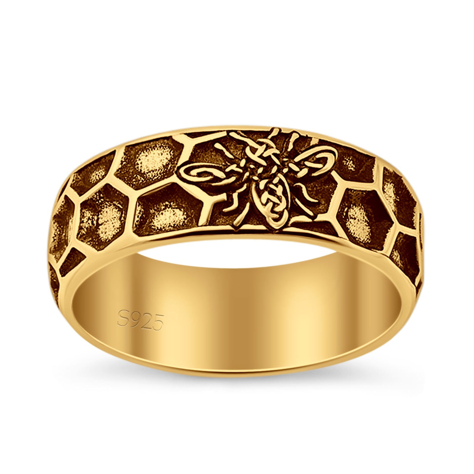 This beautiful honey bee band ring is made of high-quality sterling silver and features a delicate honeycomb pattern with a small bee resting on top. The intricate details of the ring make it a unique and eye-catching piece of jewelry that is perfect for any occasion.