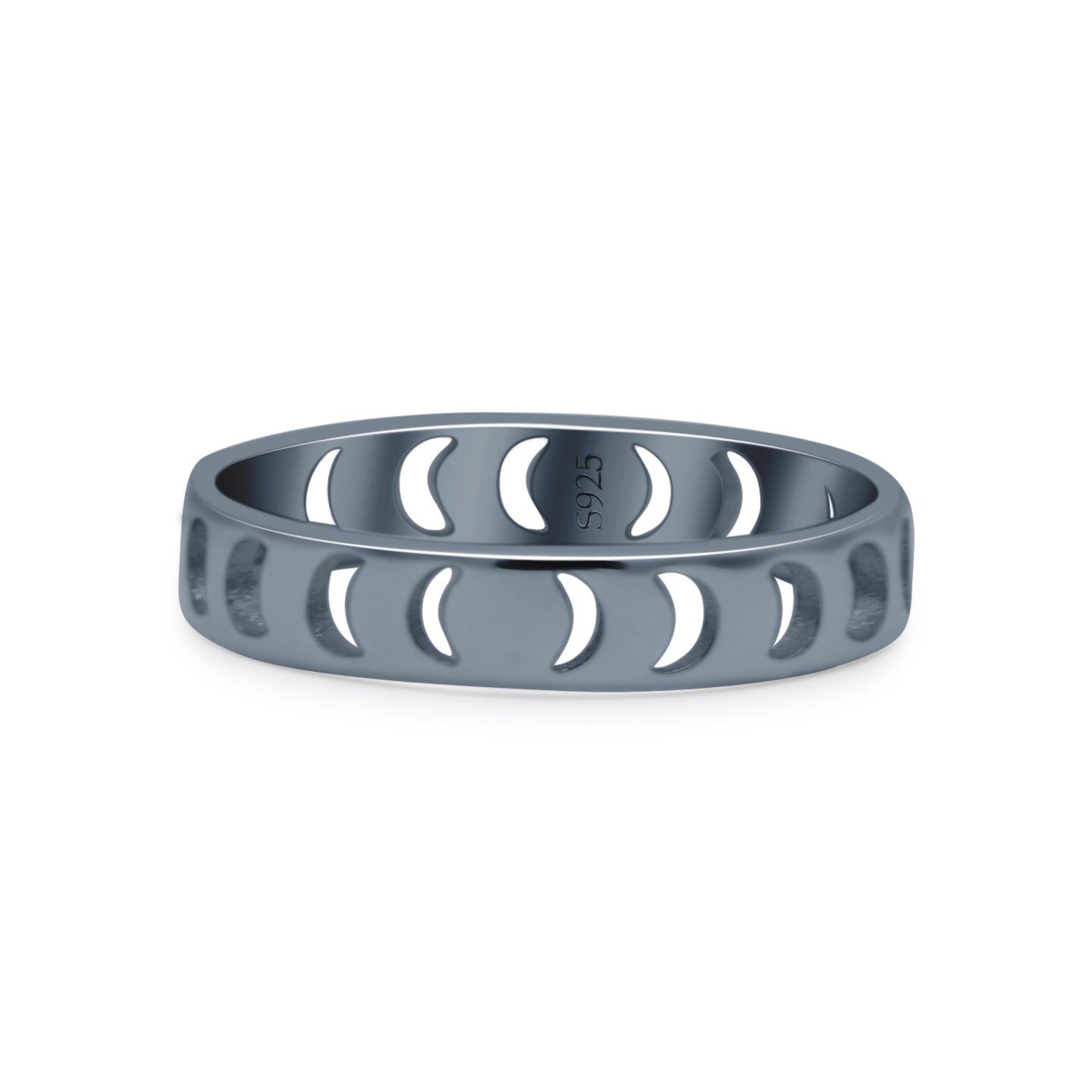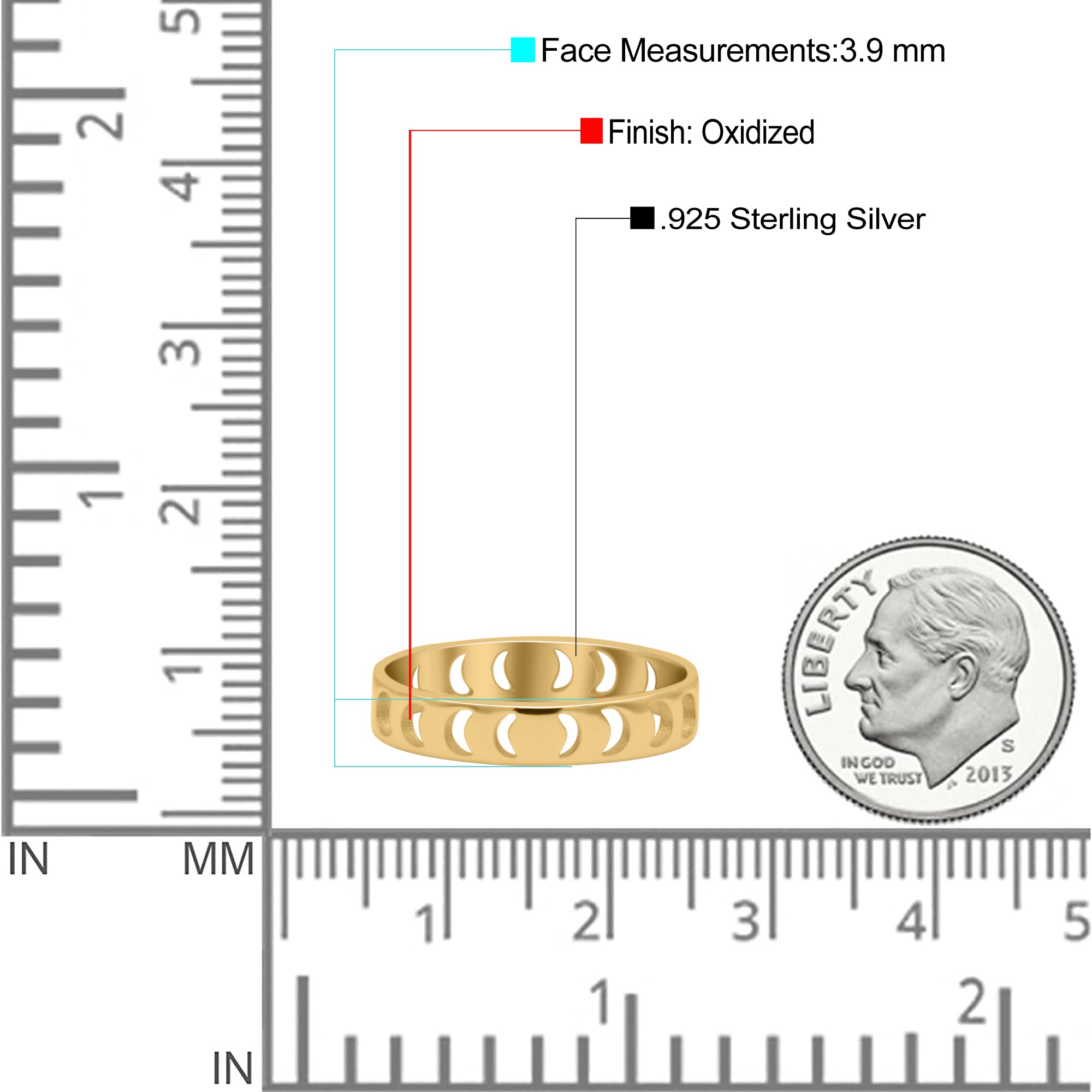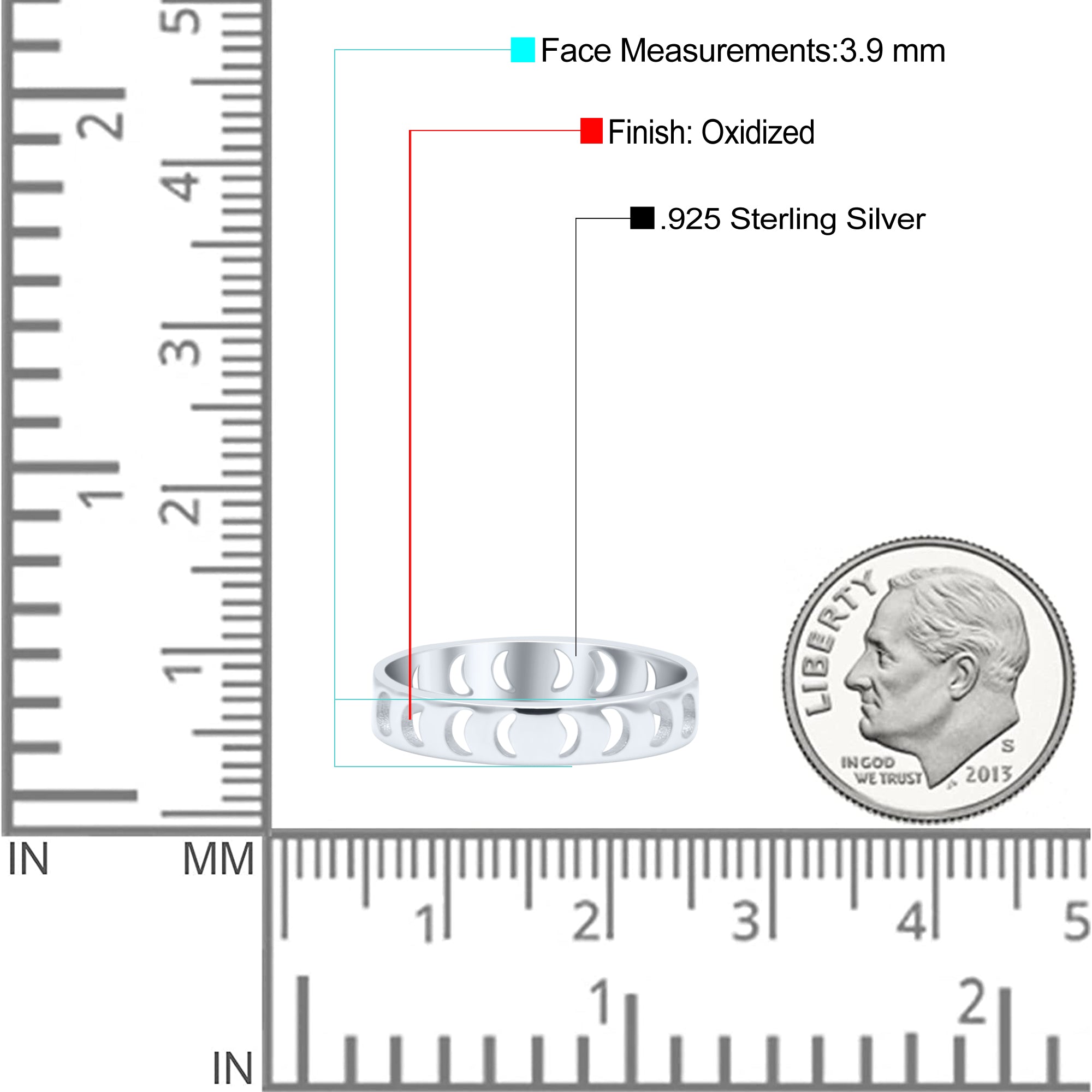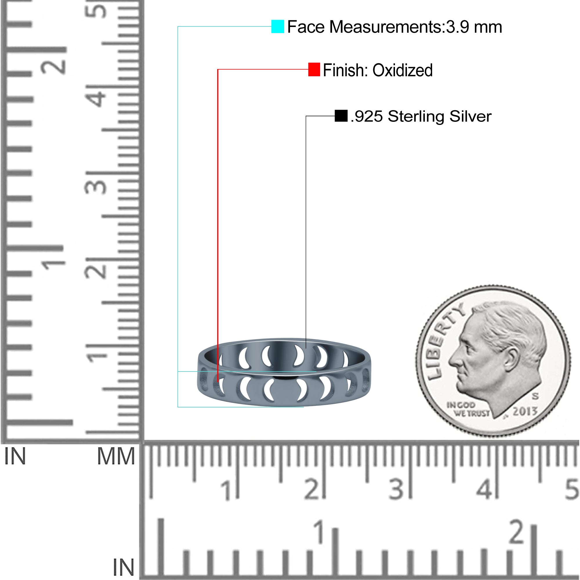 Iconic Celestial Moon Phases Cut Out And Lunar Cycle Stylish Oxidized Band Thumb Ring (3.9mm)