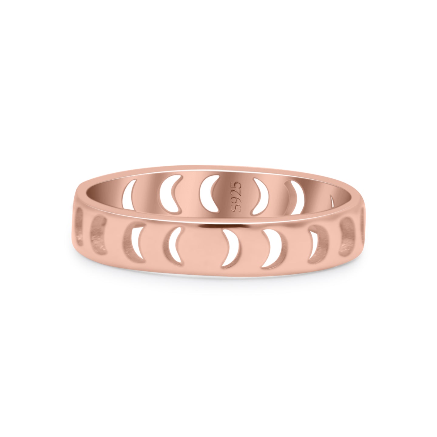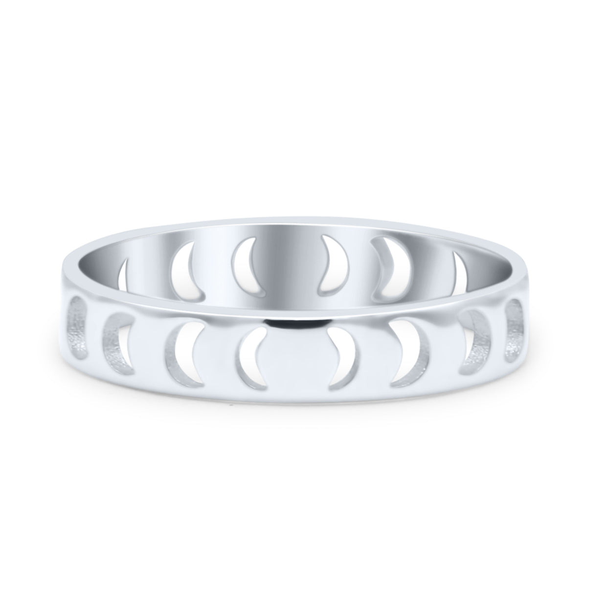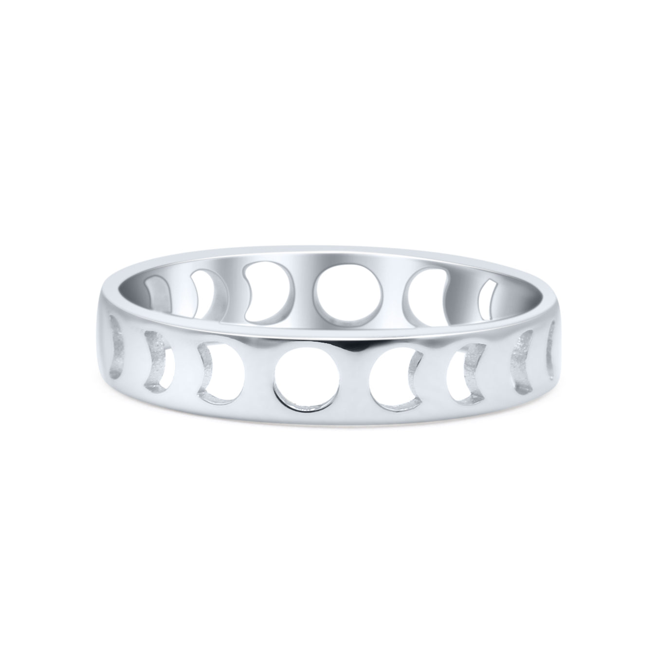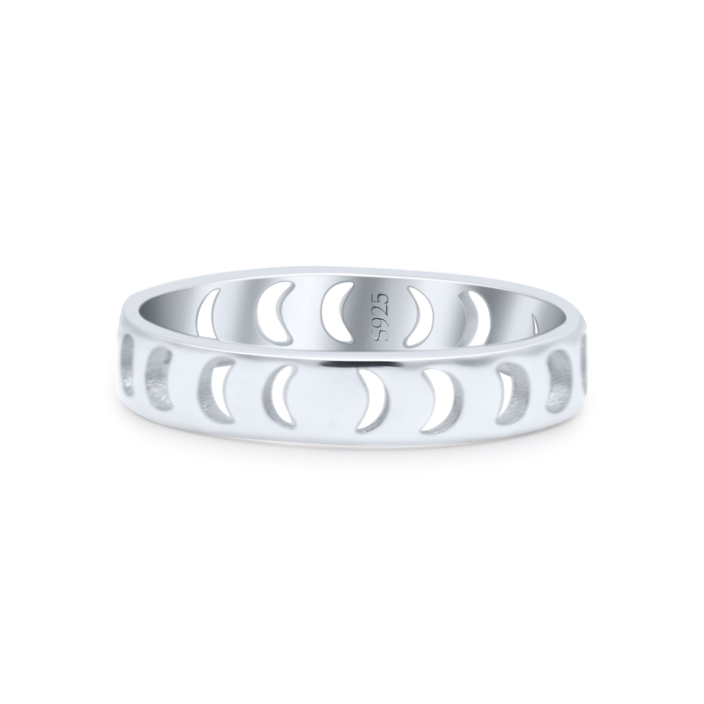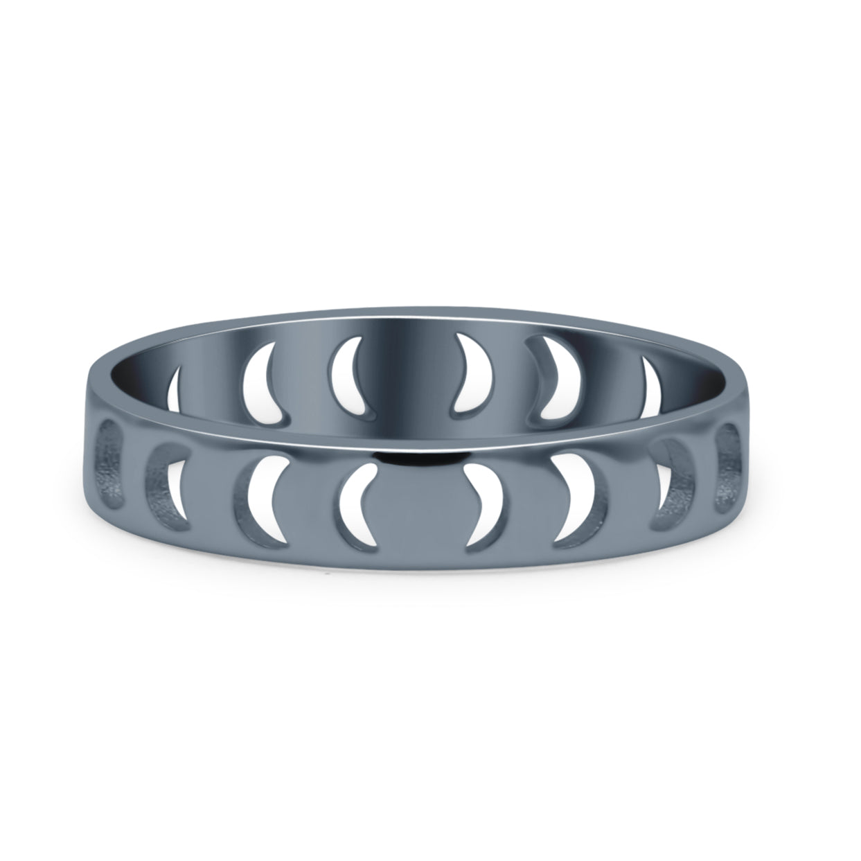 Iconic Celestial Moon Phases Cut Out And Lunar Cycle Stylish Oxidized Band Thumb Ring (3.9mm)