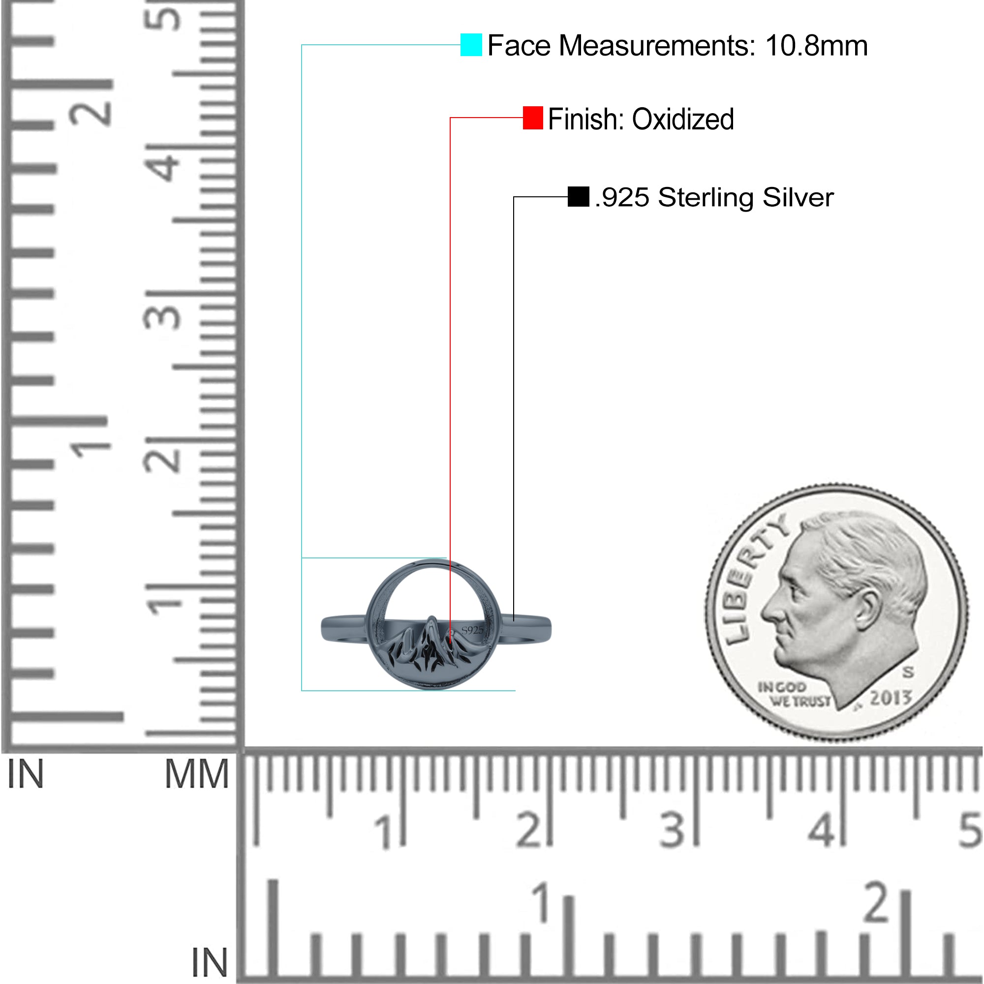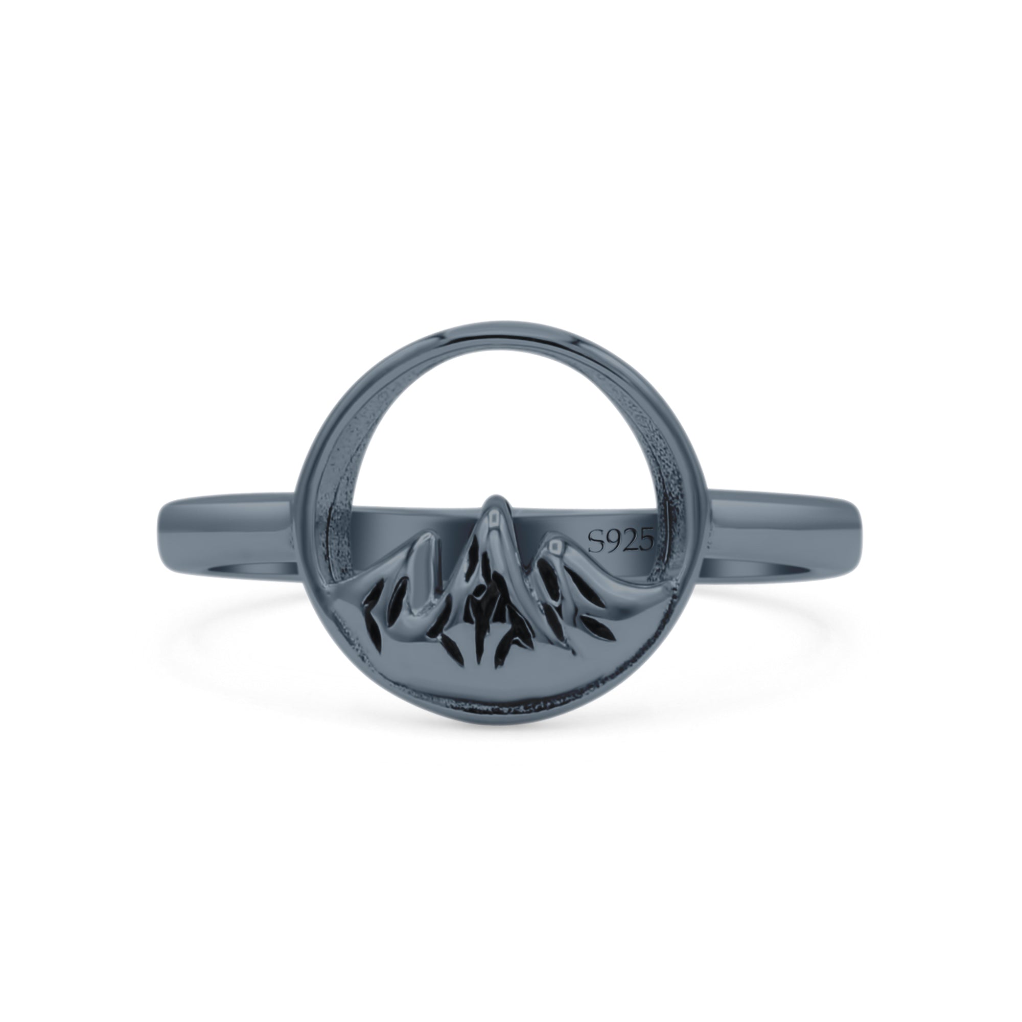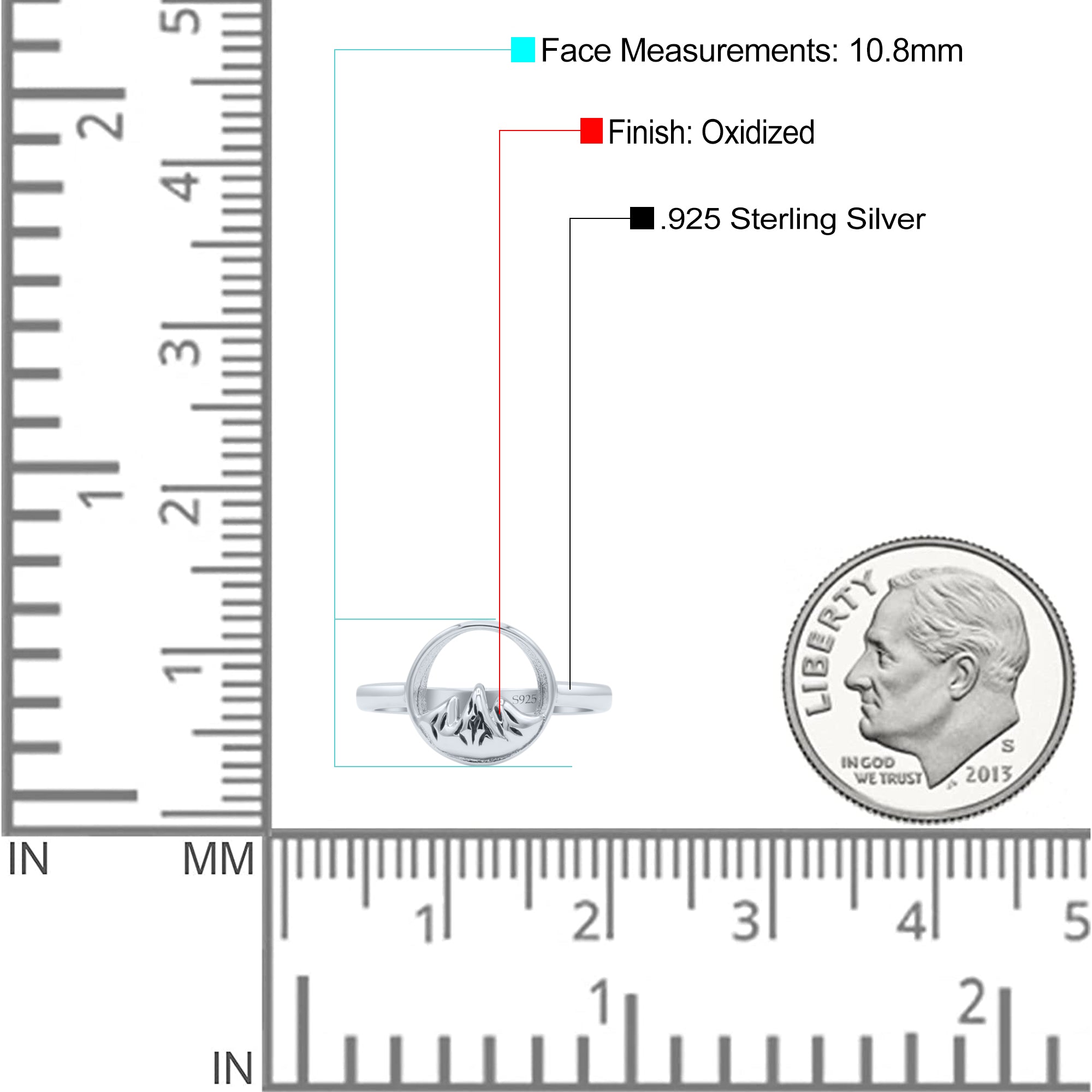 Iconic Snow Capped Mountains Circle Dainty Nature Lover Oxidized Finish Statement Band Solid 925 Sterling Silver Thumb Ring (10.8mm)