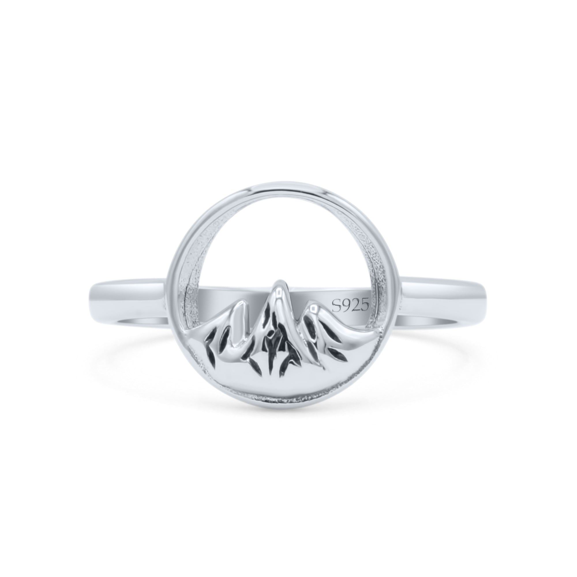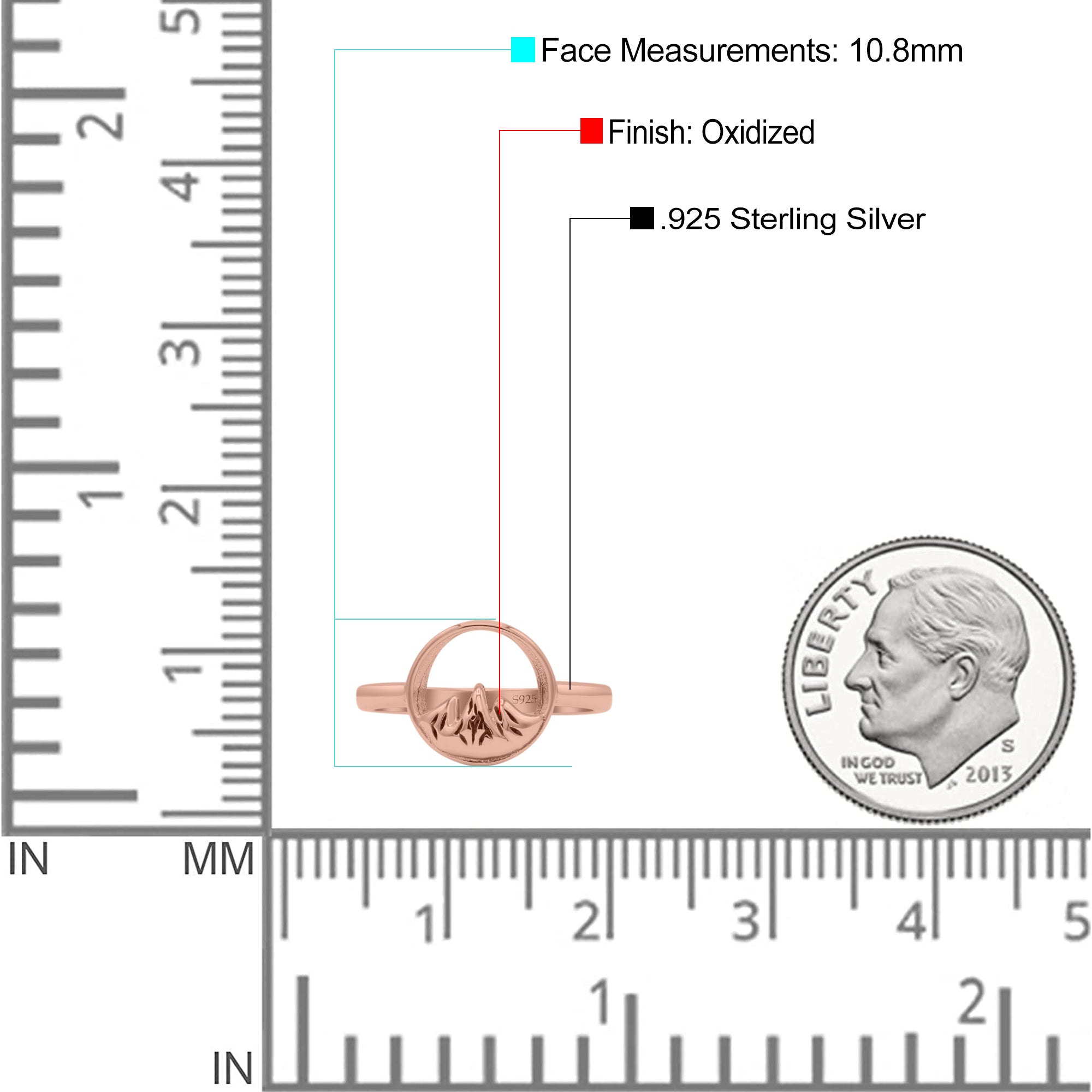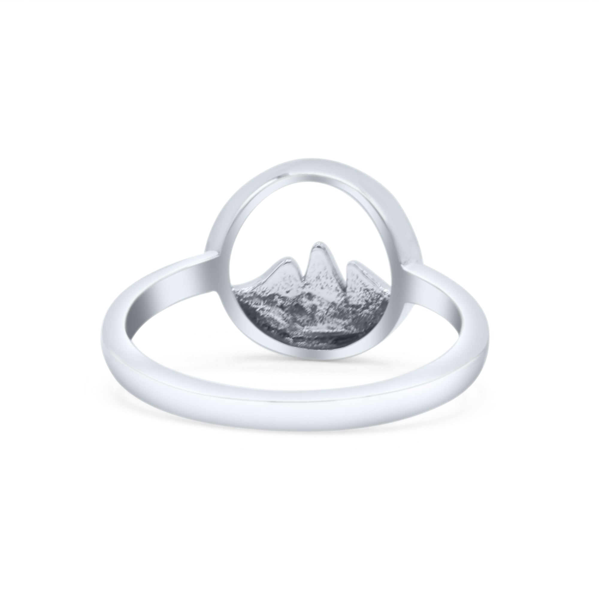 Iconic Snow Capped Mountains Circle Dainty Nature Lover Oxidized Finish Statement Band Solid 925 Sterling Silver Thumb Ring (10.8mm)