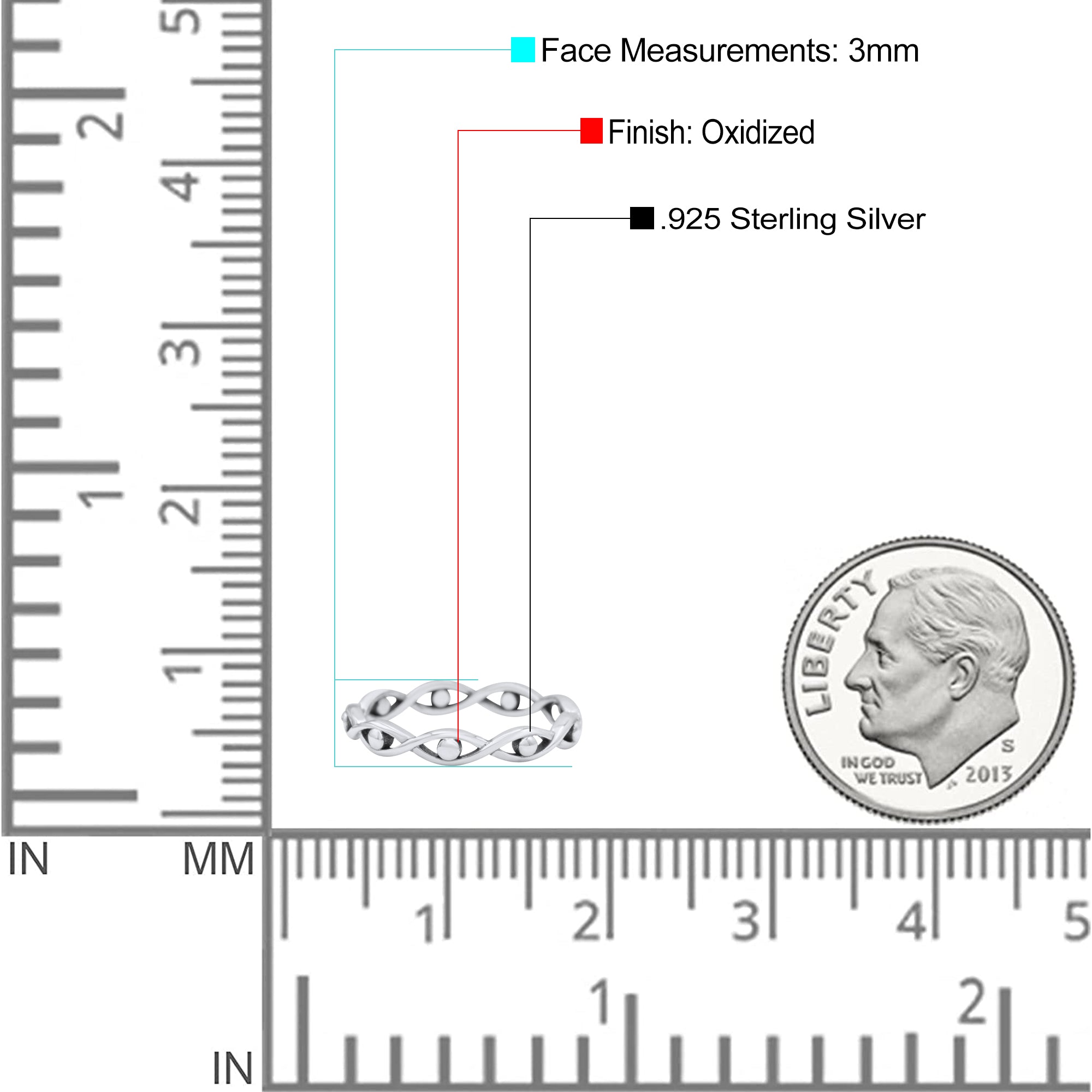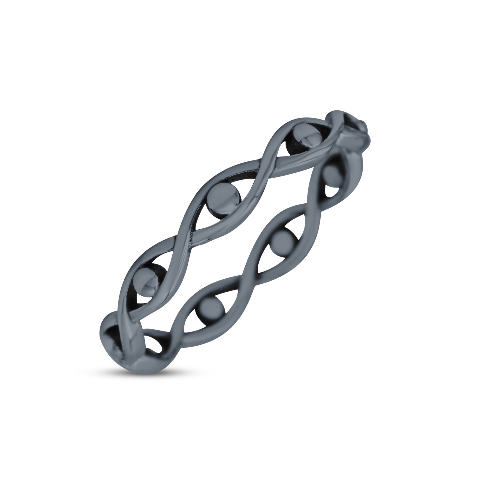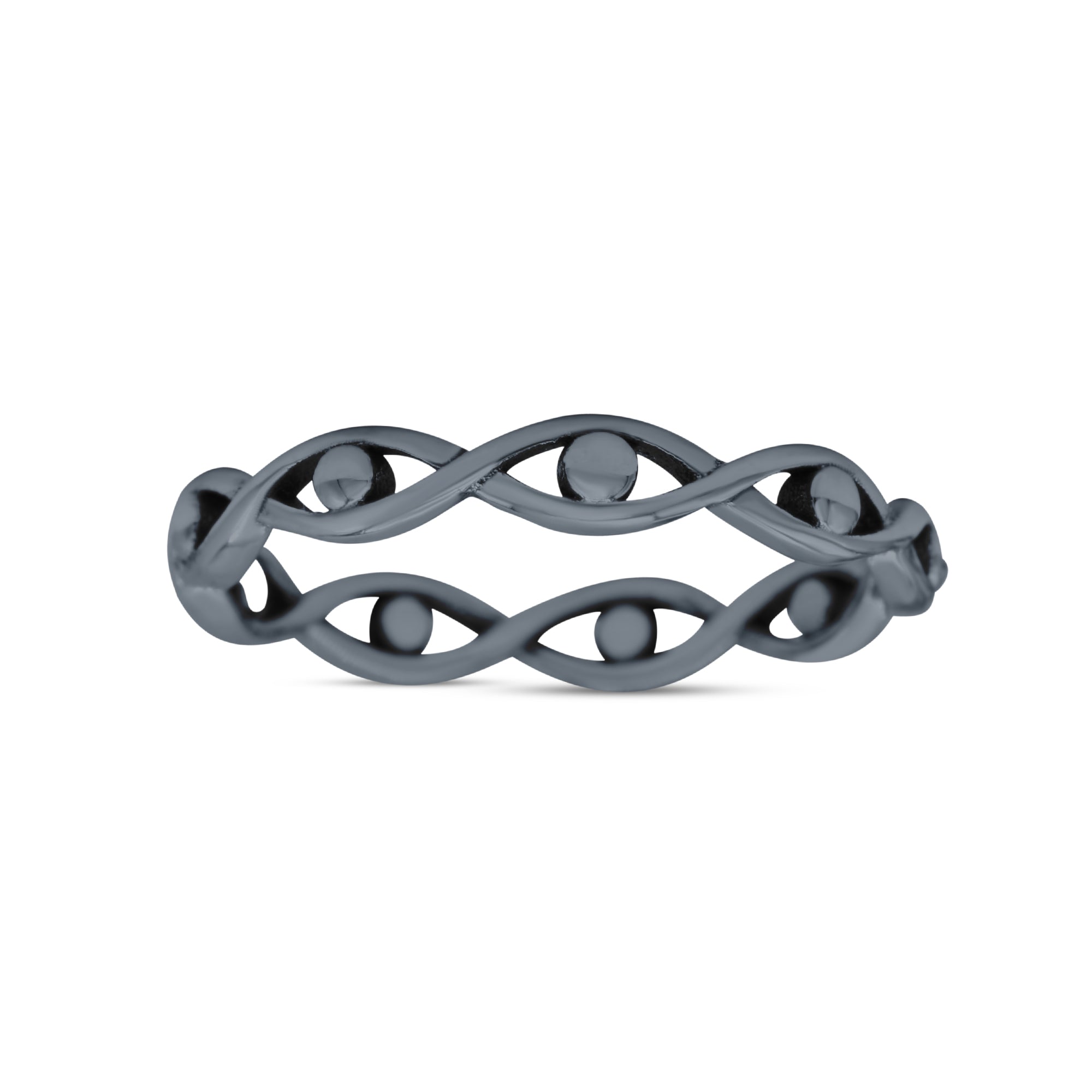 Infinity Bead Evil Eye Stackable Ring Oxidized Band Solid 925 Sterling Silver Thumb Ring (3mm)