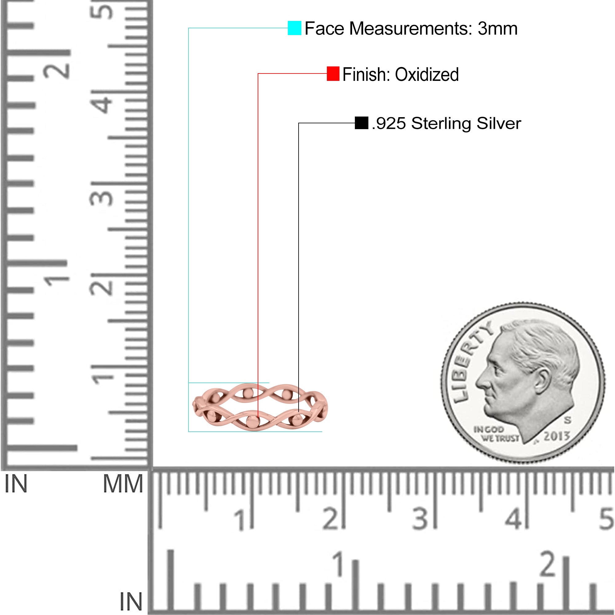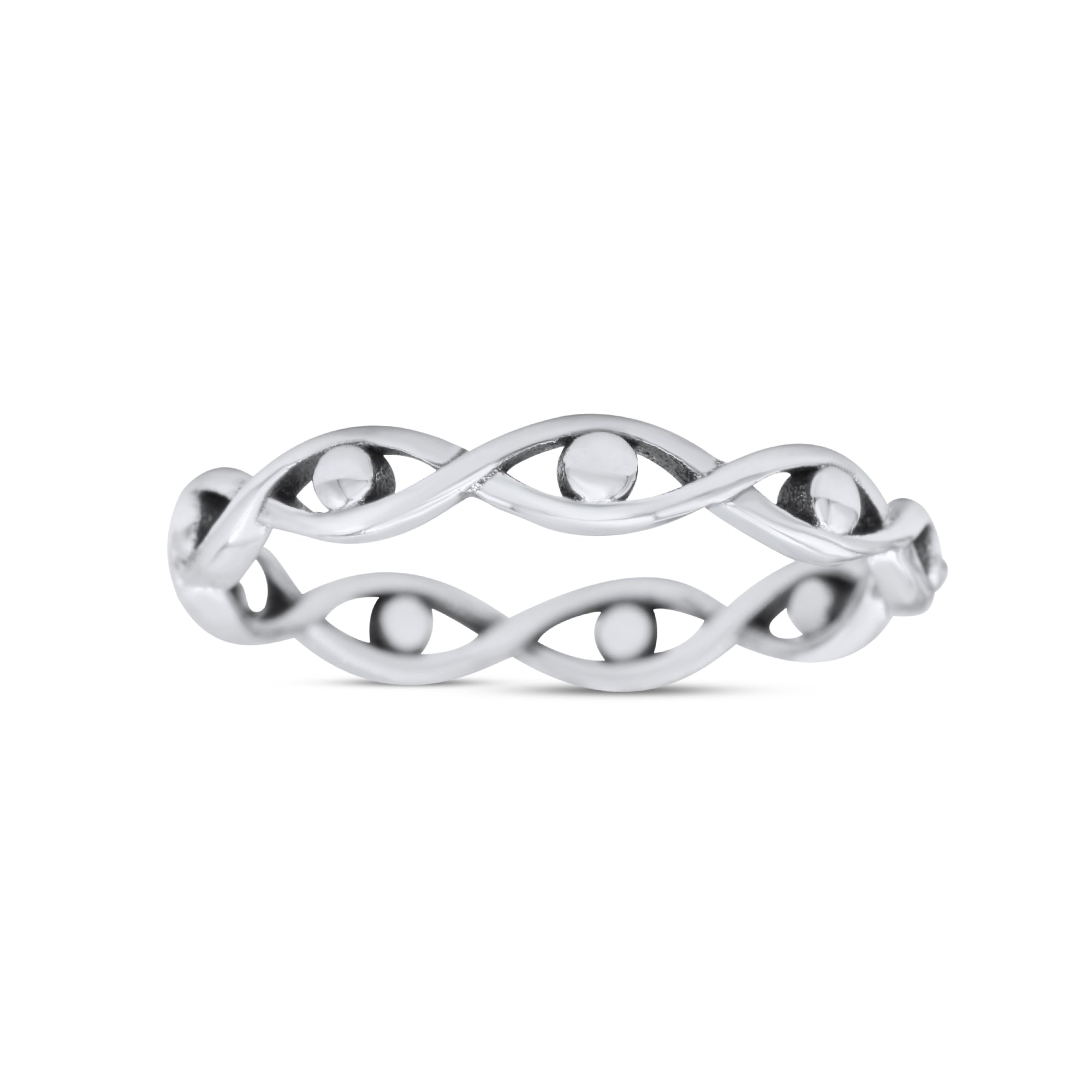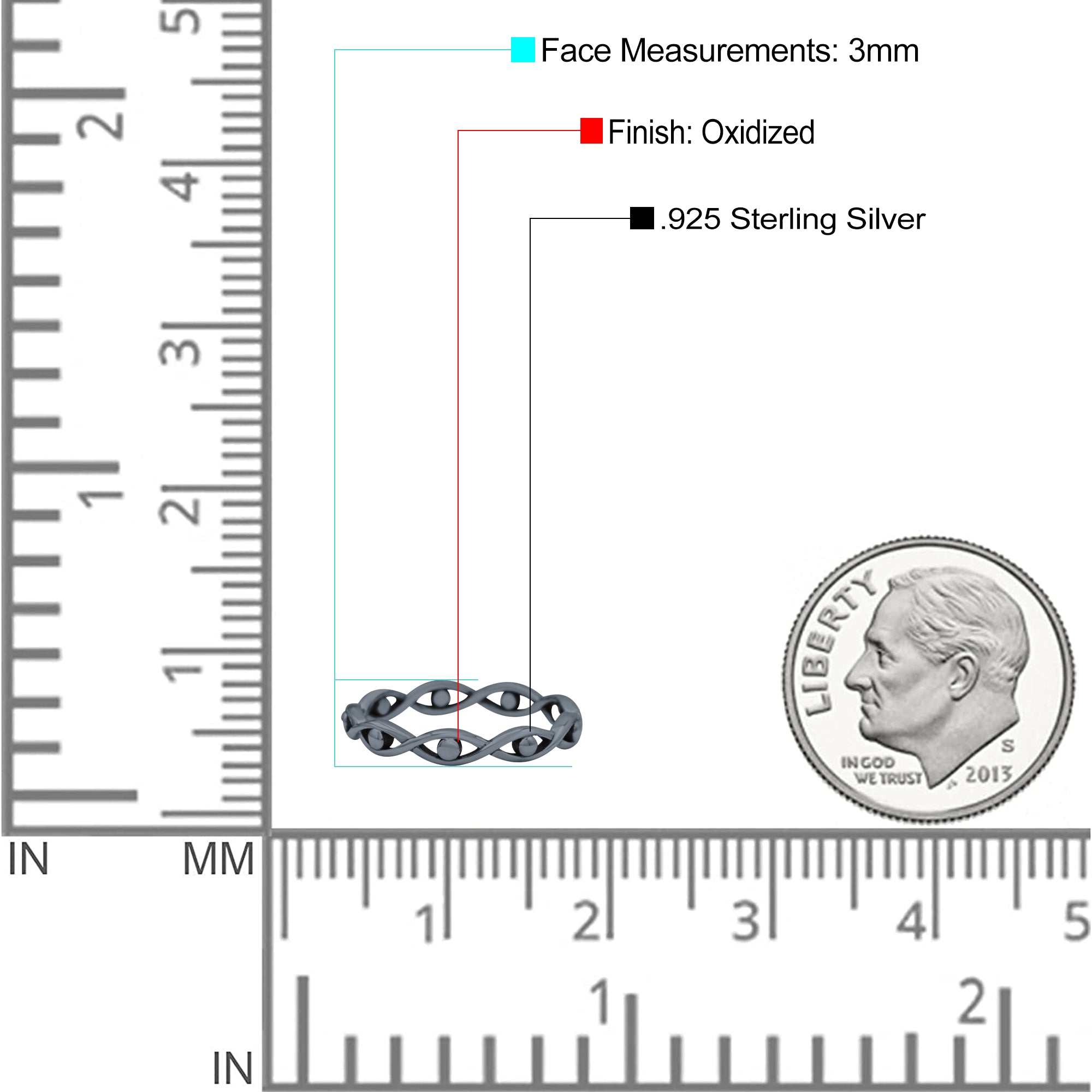 Infinity Bead Evil Eye Stackable Ring Oxidized Band Solid 925 Sterling Silver Thumb Ring (3mm)