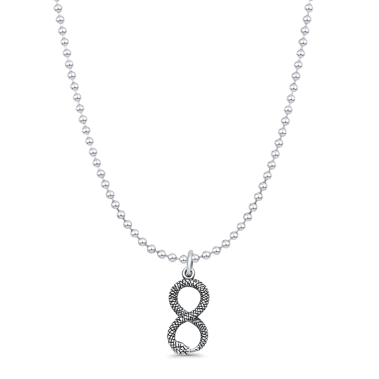 Infinity Snake Pendant Bead Chain Necklace Oxidized 925 Sterling Silver