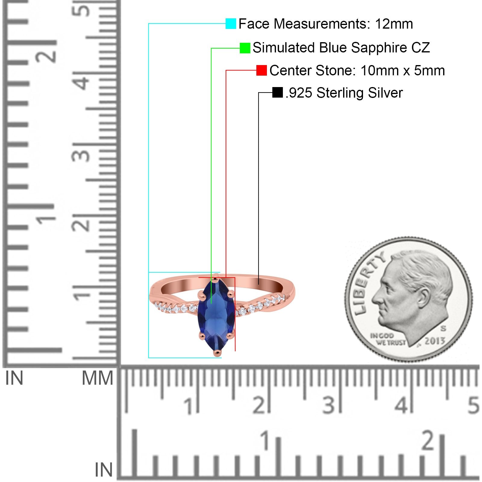 Infinity Twist Marquise Wedding Ring Simulated Cubic Zirconia 925 Sterling Silver