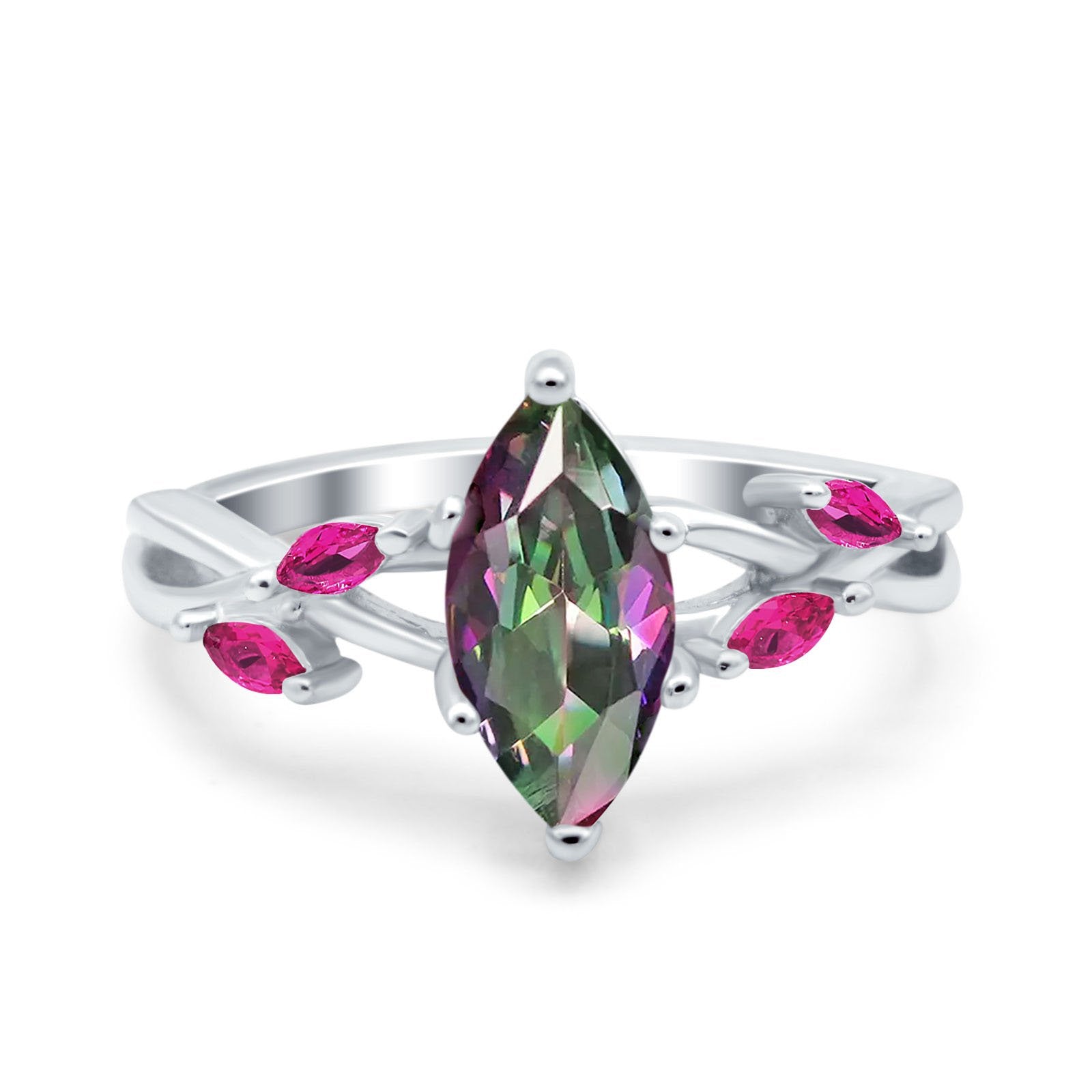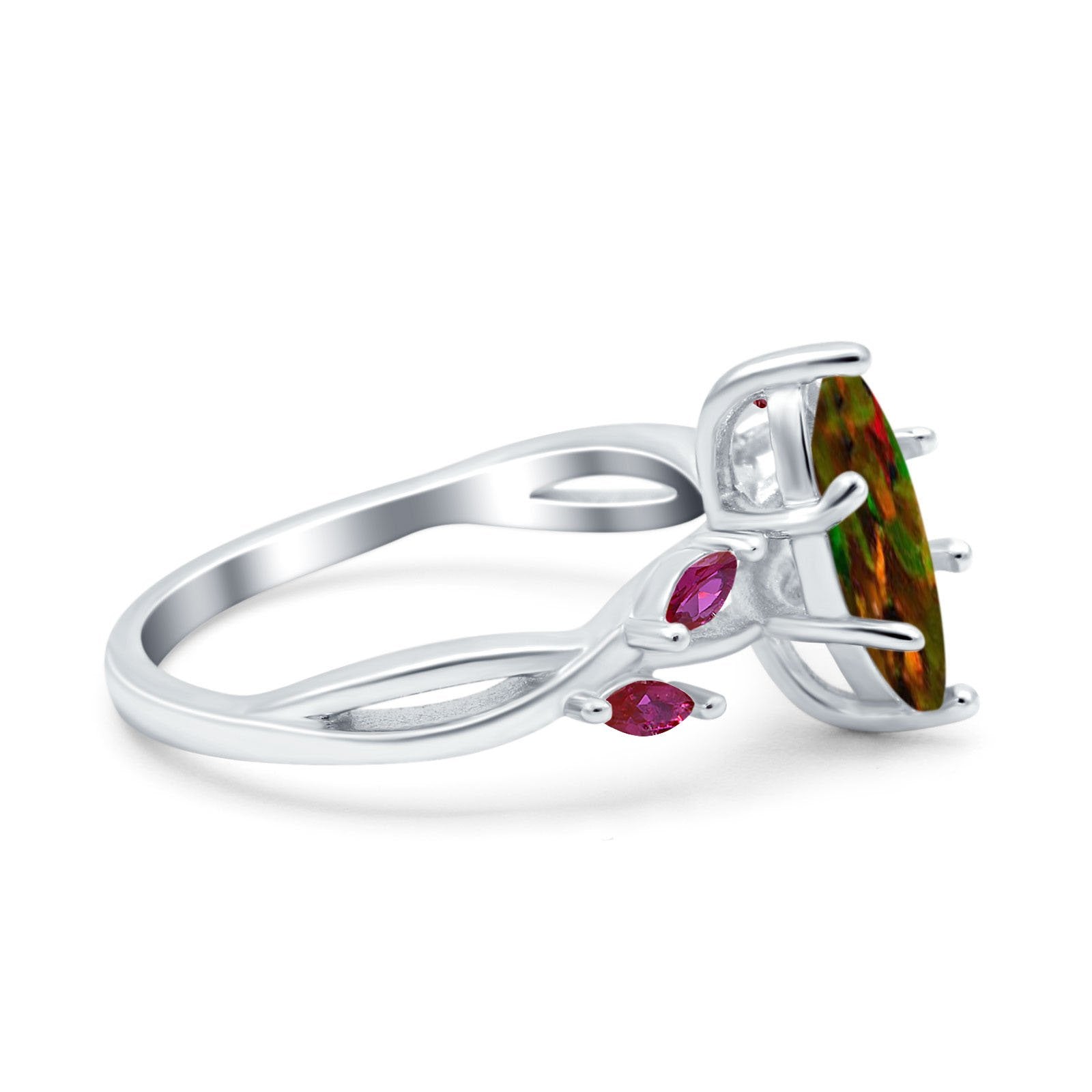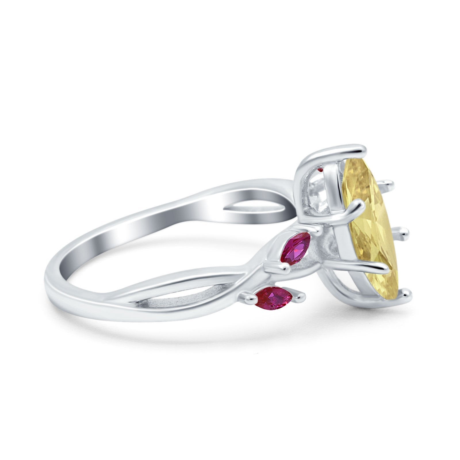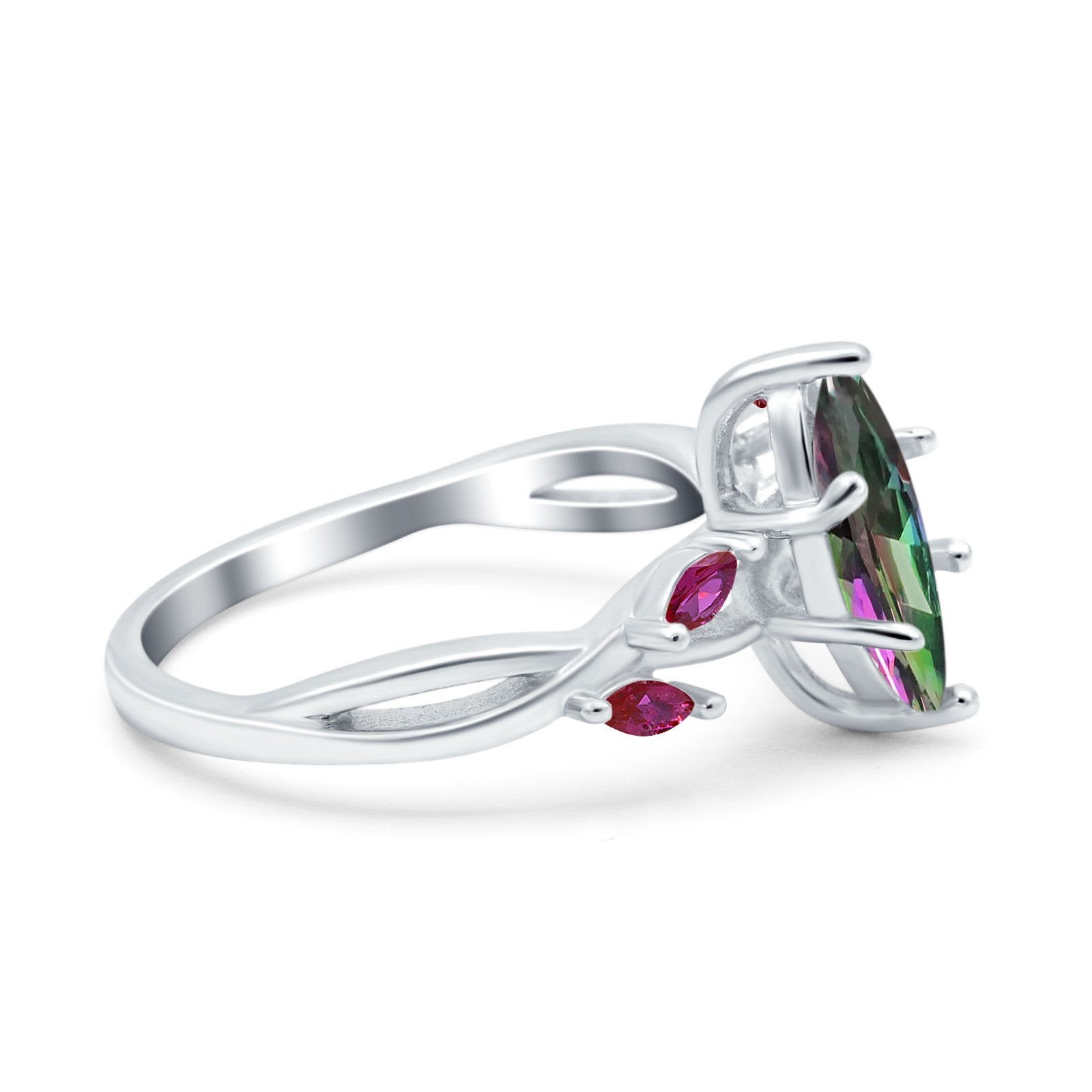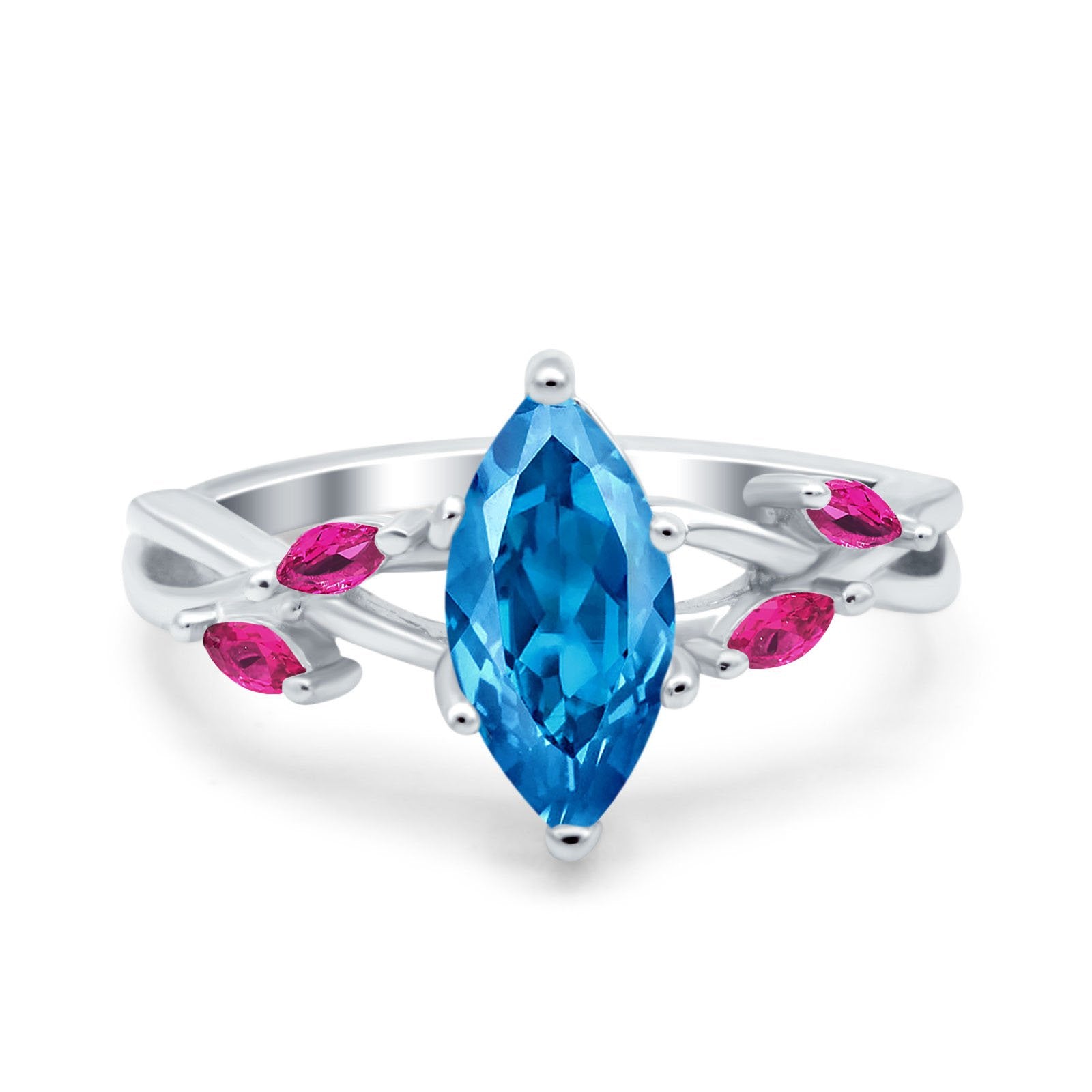 Infinity Twist Marquise Wedding Ring Simulated Cubic Zirconia & Ruby 925 Sterling Silver