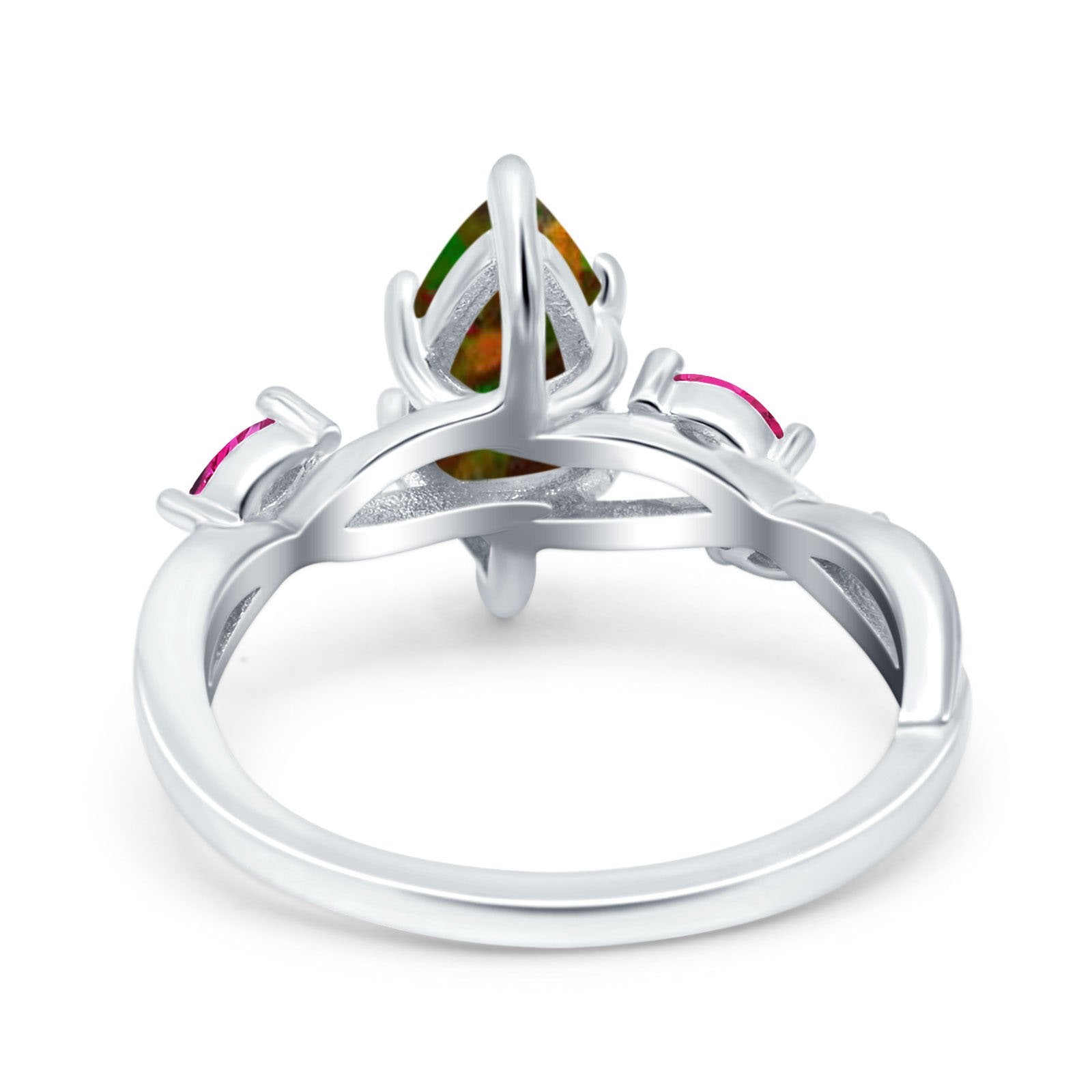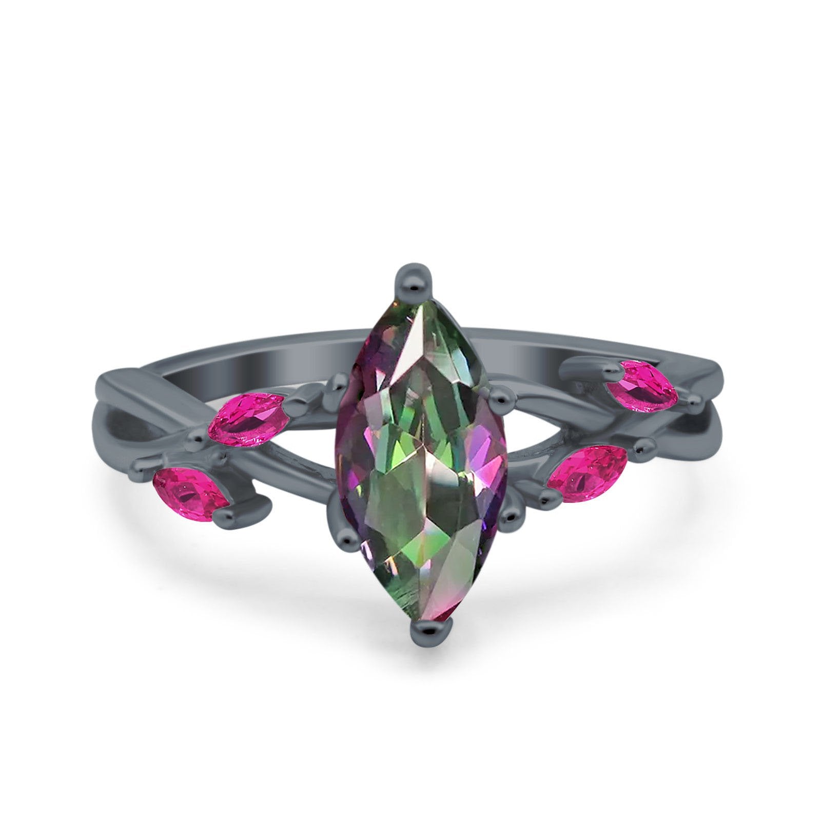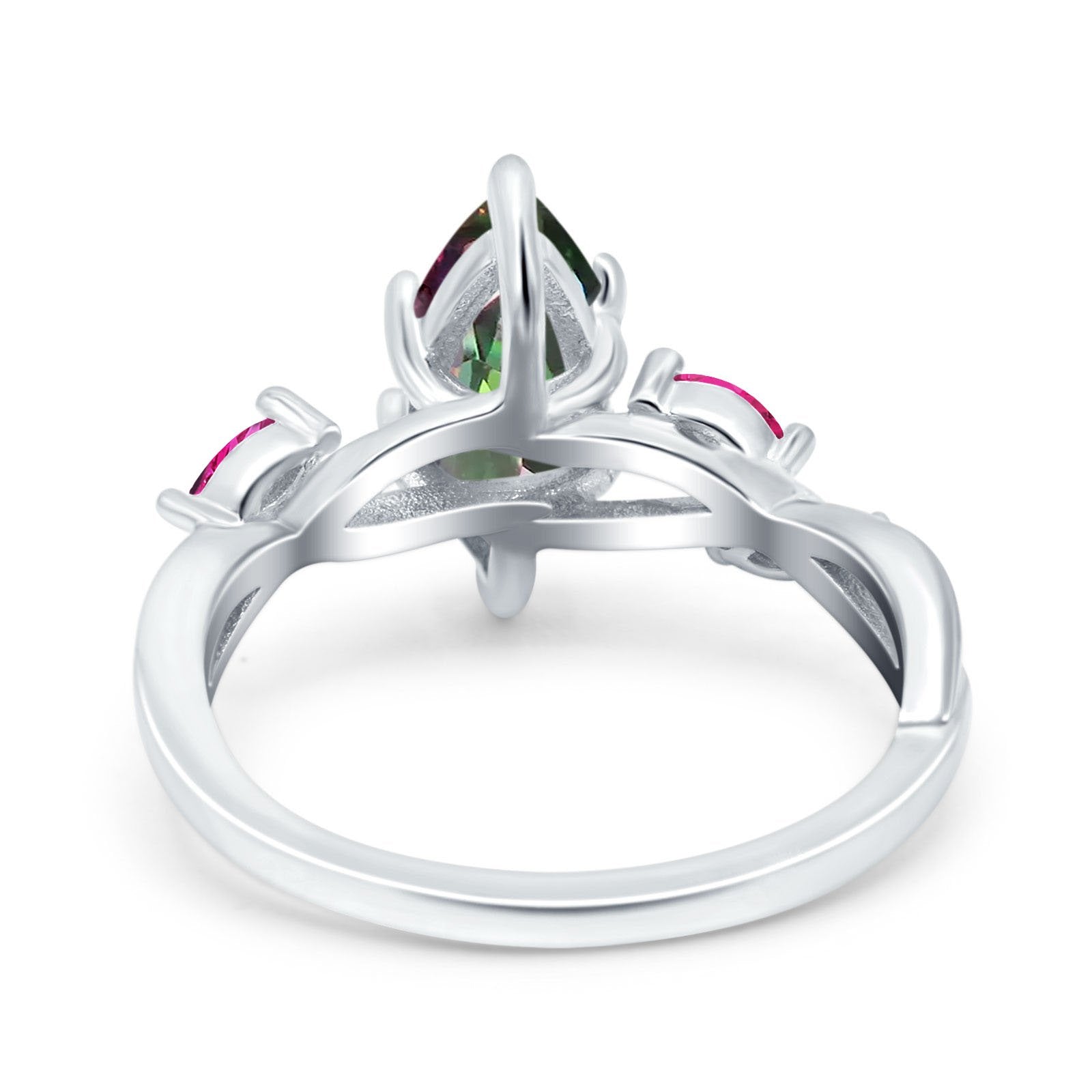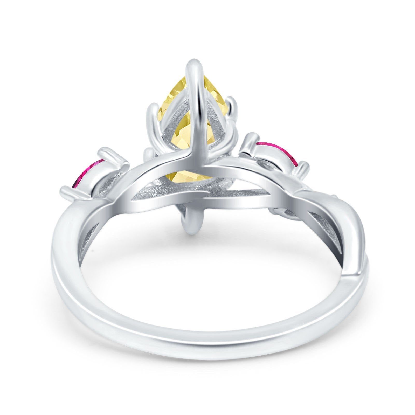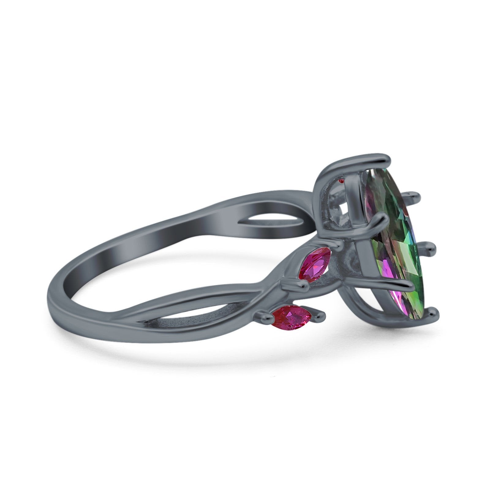 Infinity Twist Marquise Wedding Ring Simulated Cubic Zirconia & Ruby 925 Sterling Silver
