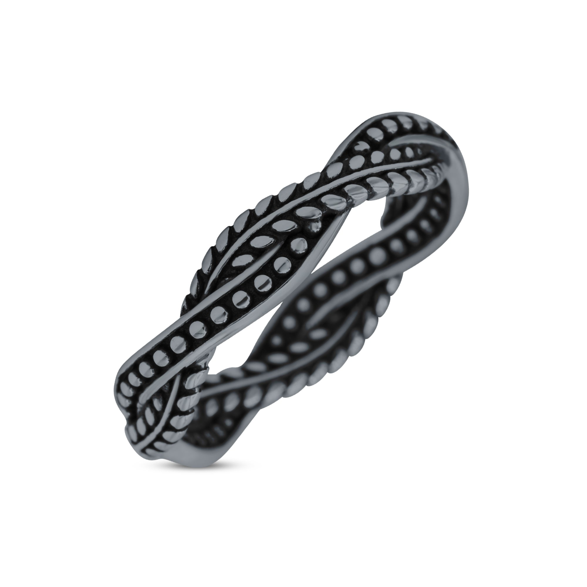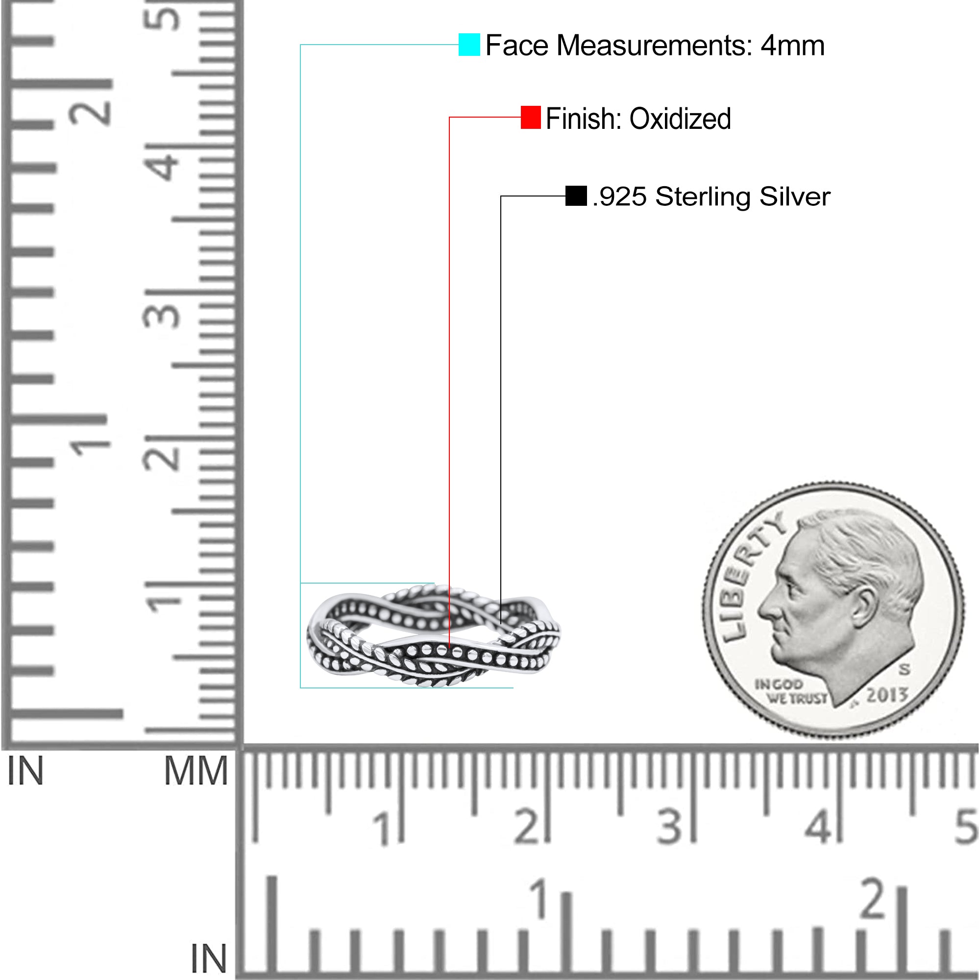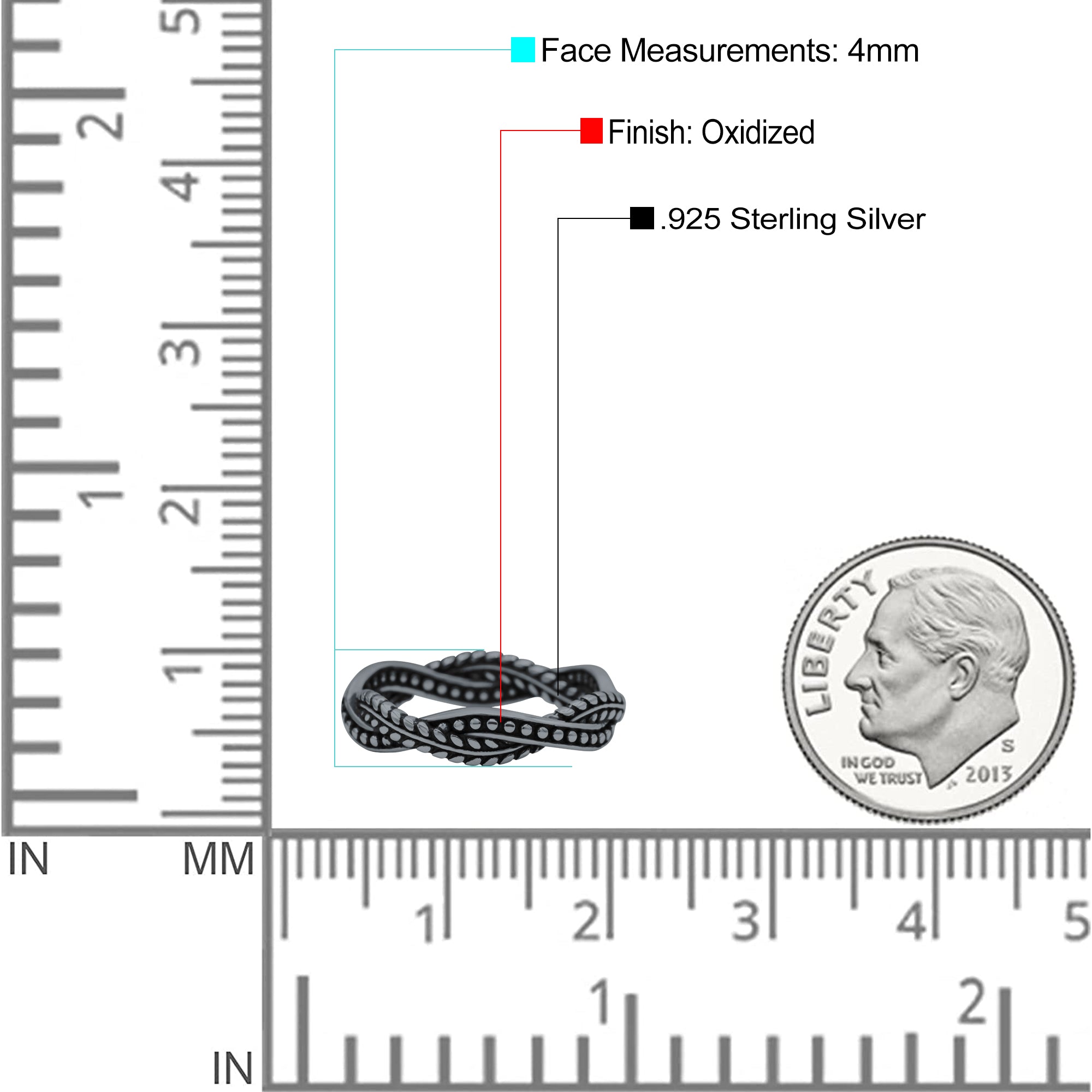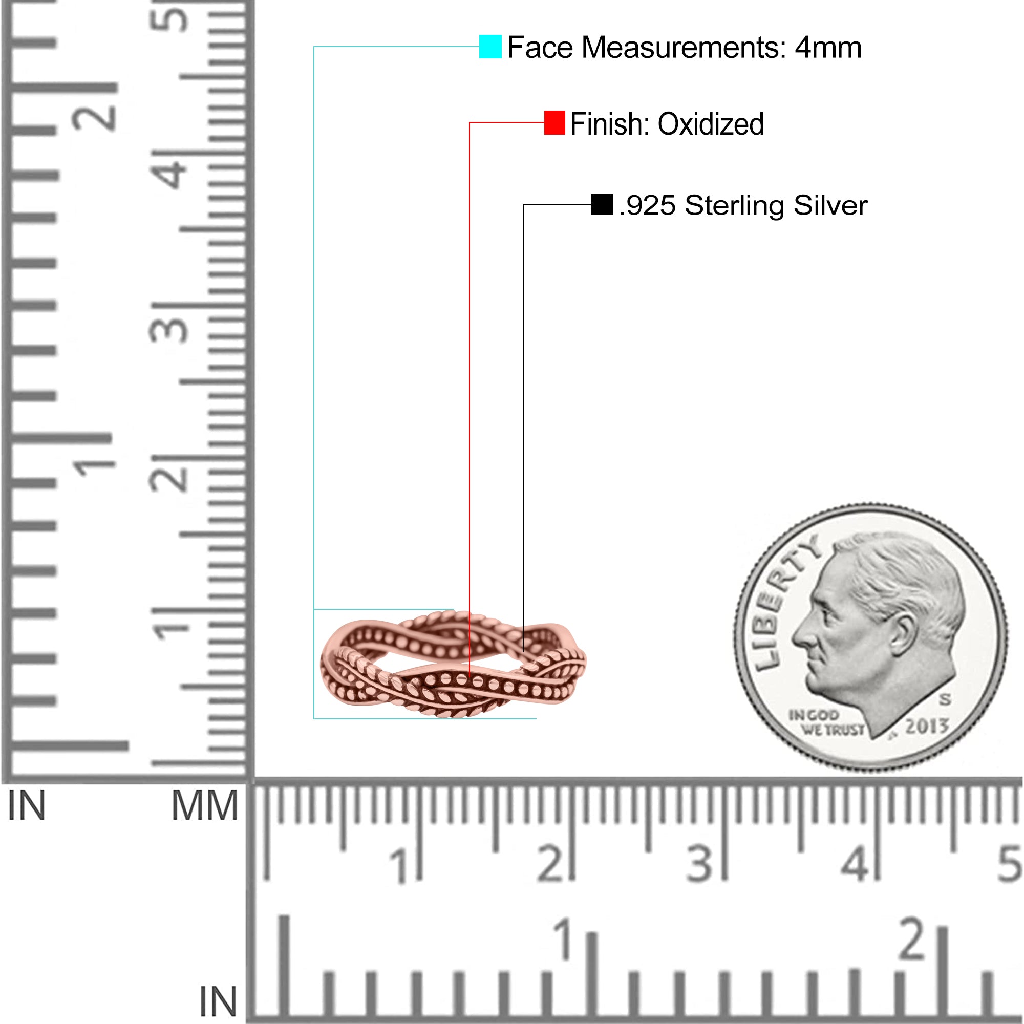 Infinity Weave Twisted Leaf Style Oxidized Band Solid 925 Sterling Silver Thumb Ring (4mm)