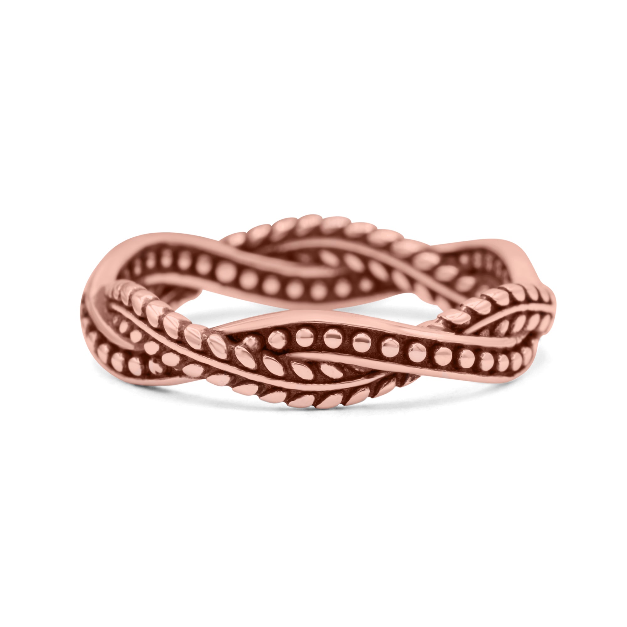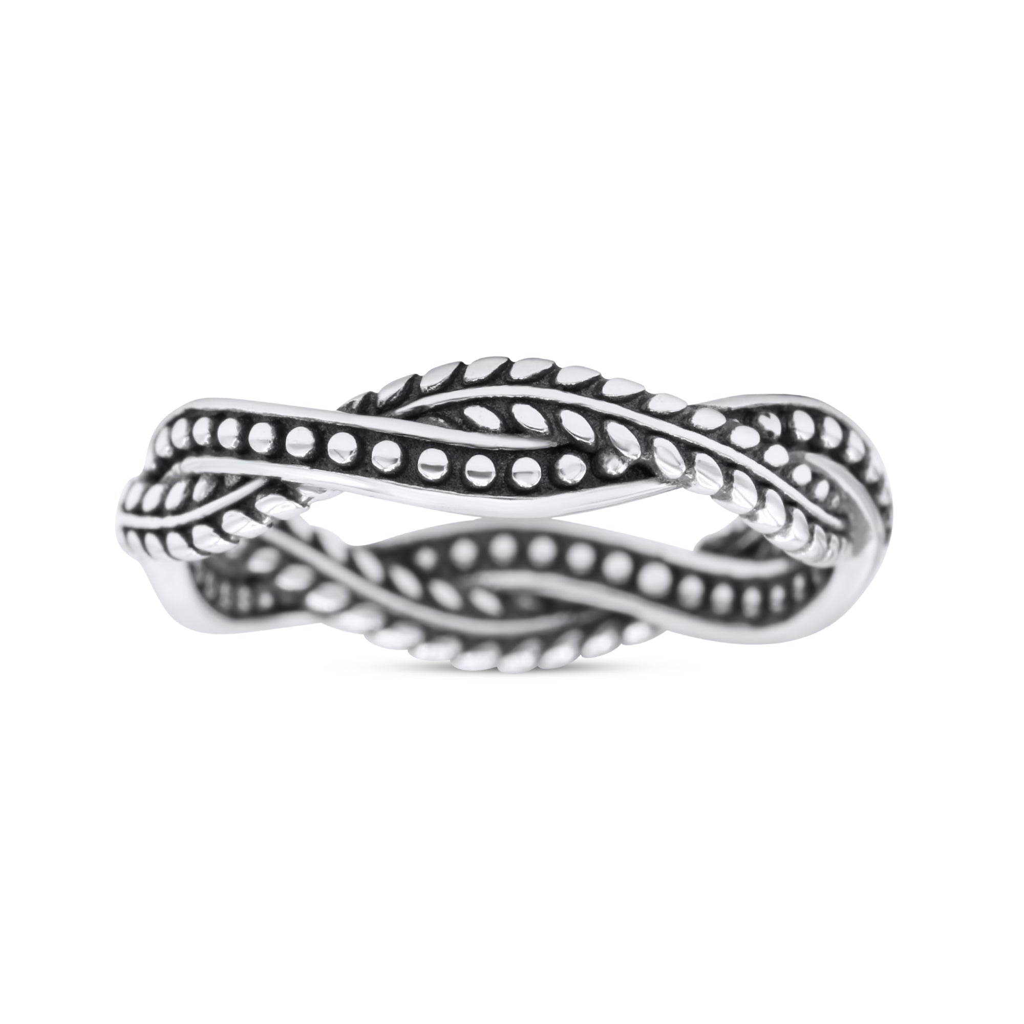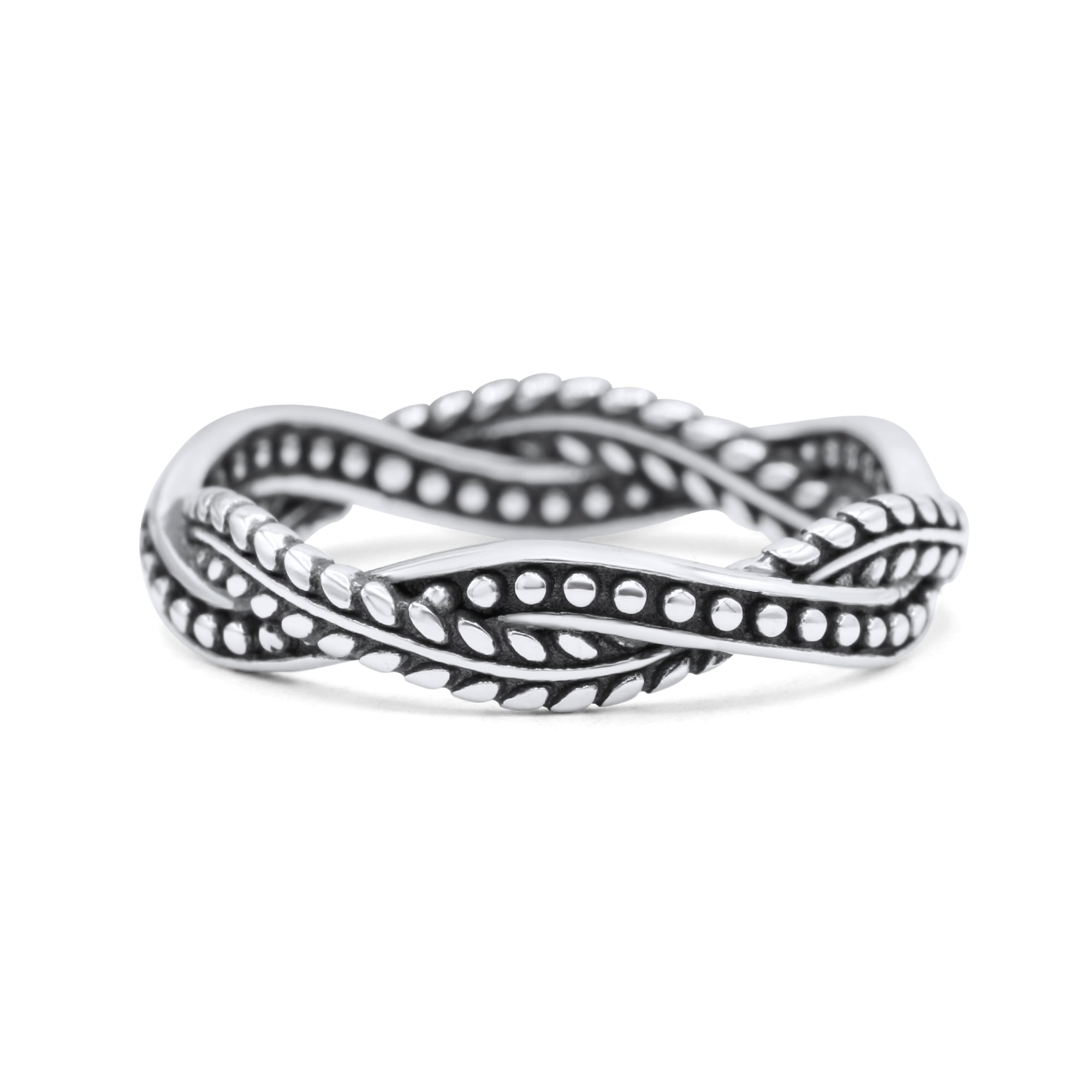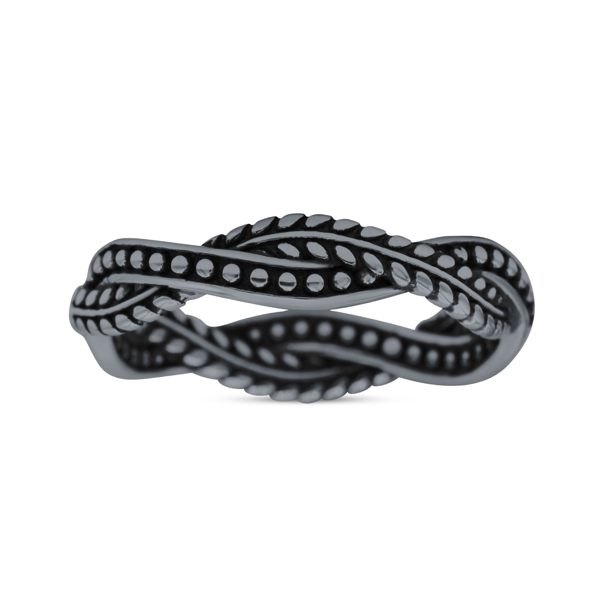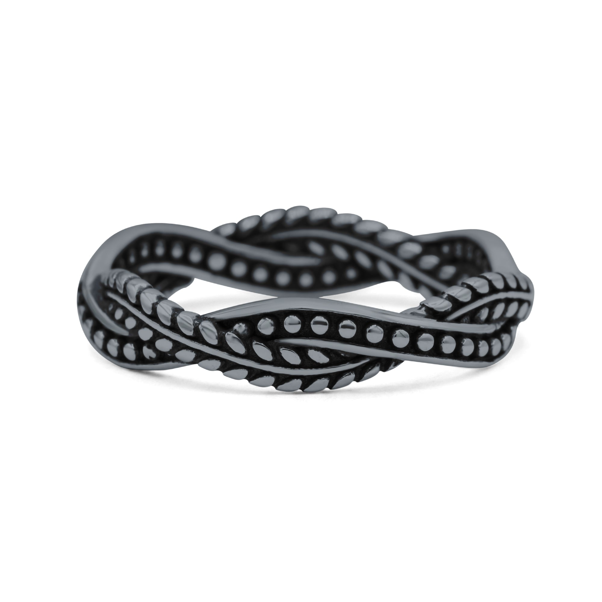 Infinity Weave Twisted Leaf Style Oxidized Band Solid 925 Sterling Silver Thumb Ring (4mm)