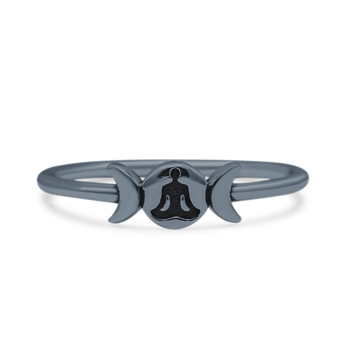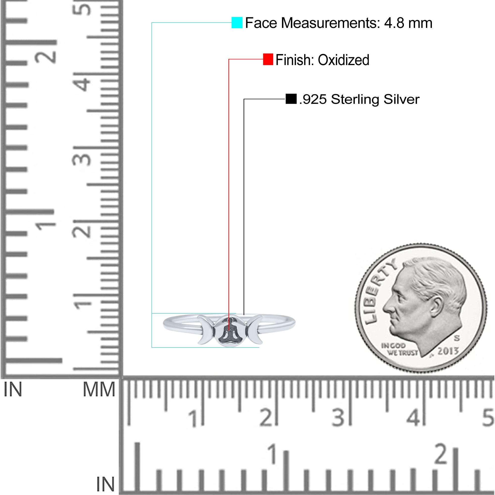 Inspire Buddha Meditation With Moon Phases Motivation Cultural Oxidized Statement Band Solid 925 Sterling Silver Thumb Ring (4.8mm)