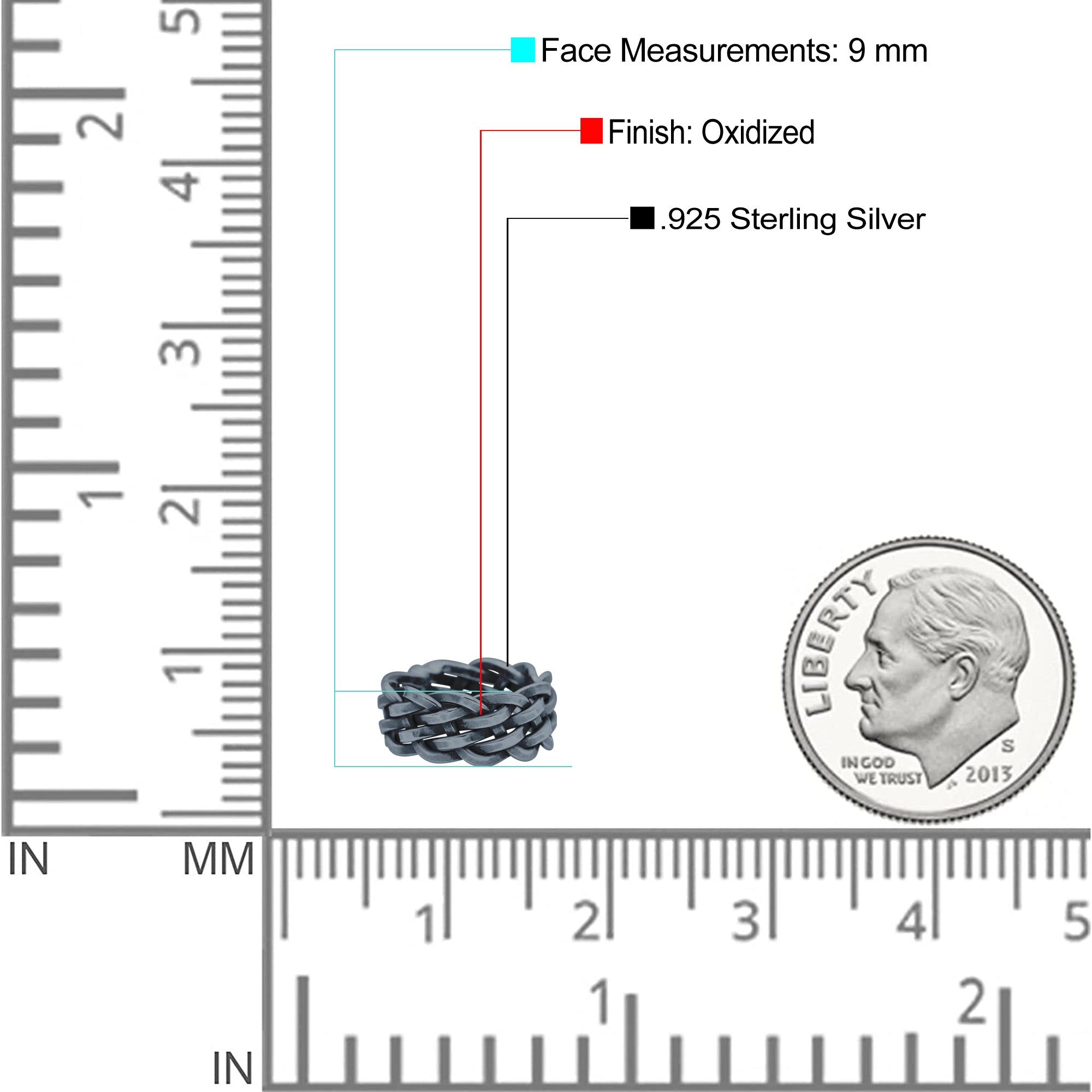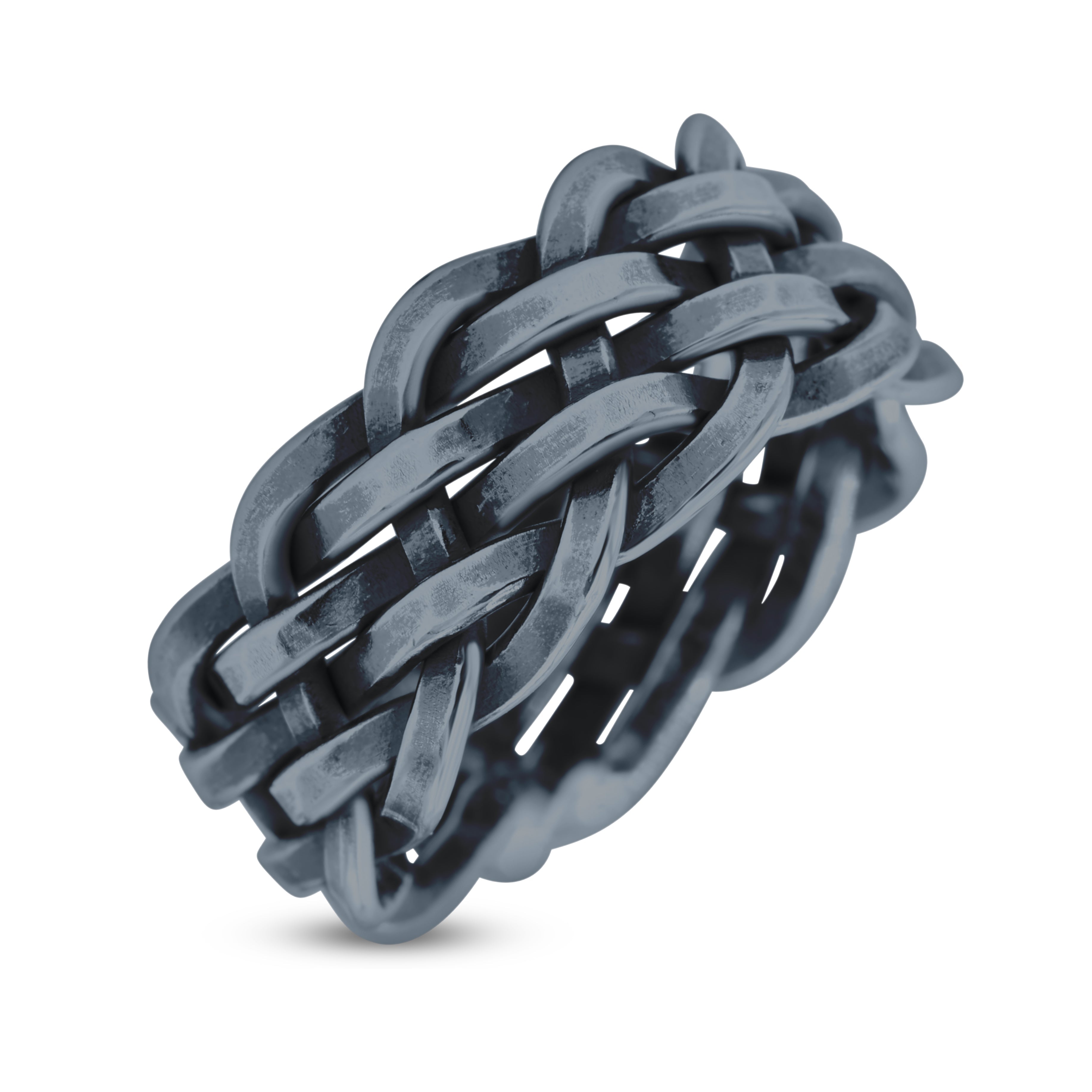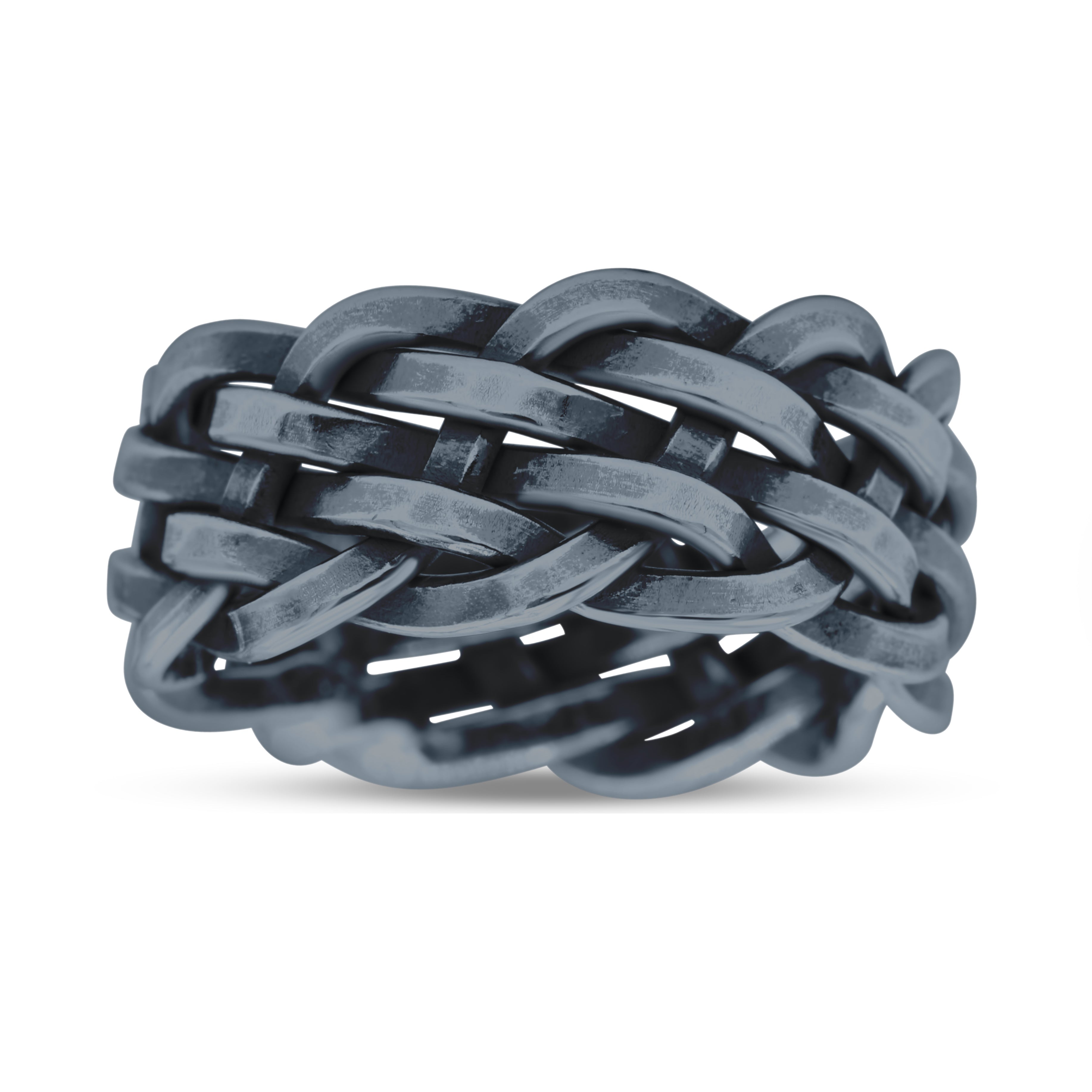 Interlacing Braided Woven Celtic Knot Woven Celtic Knot Oxidized Band Solid 925 Sterling Silver Thumb Ring (9mm)