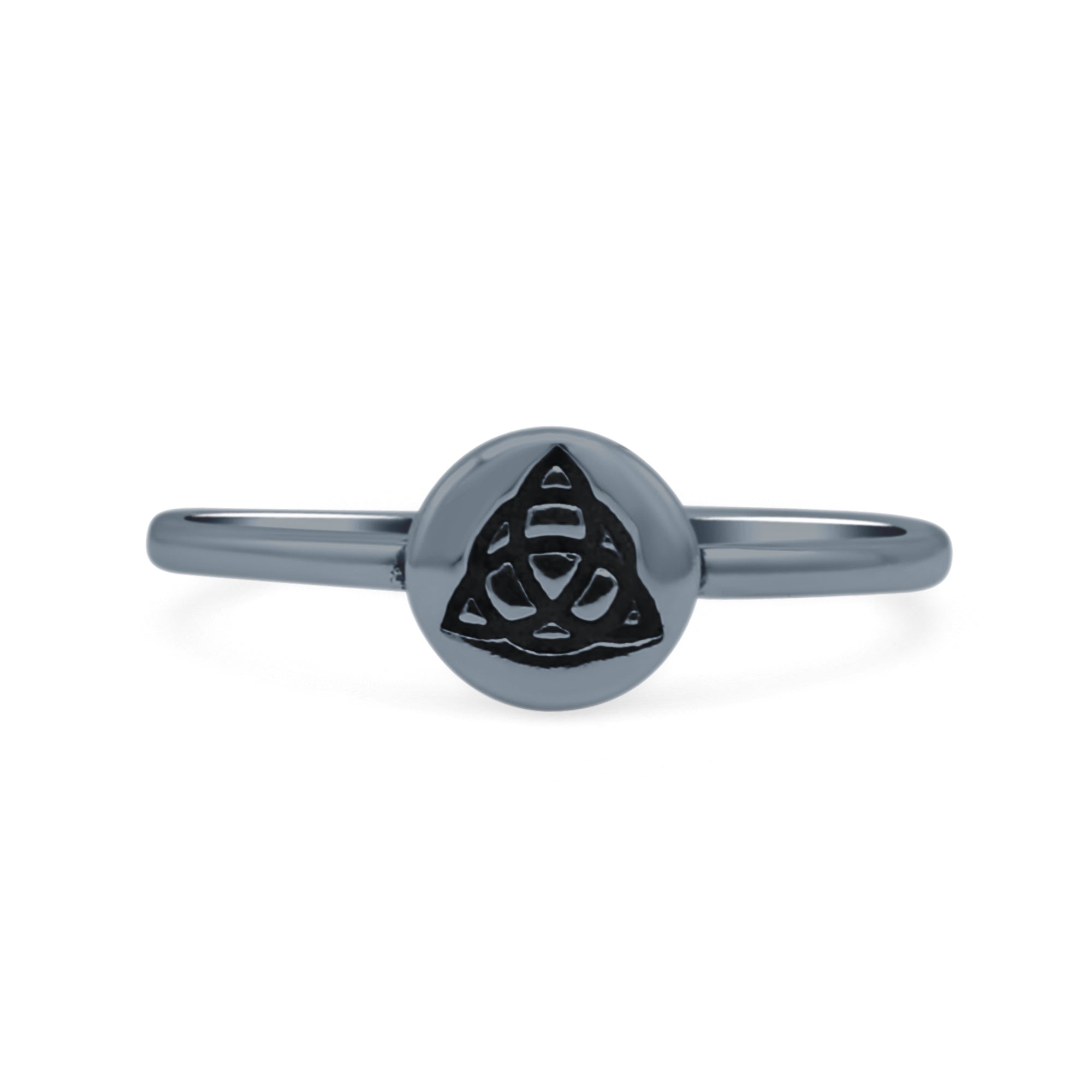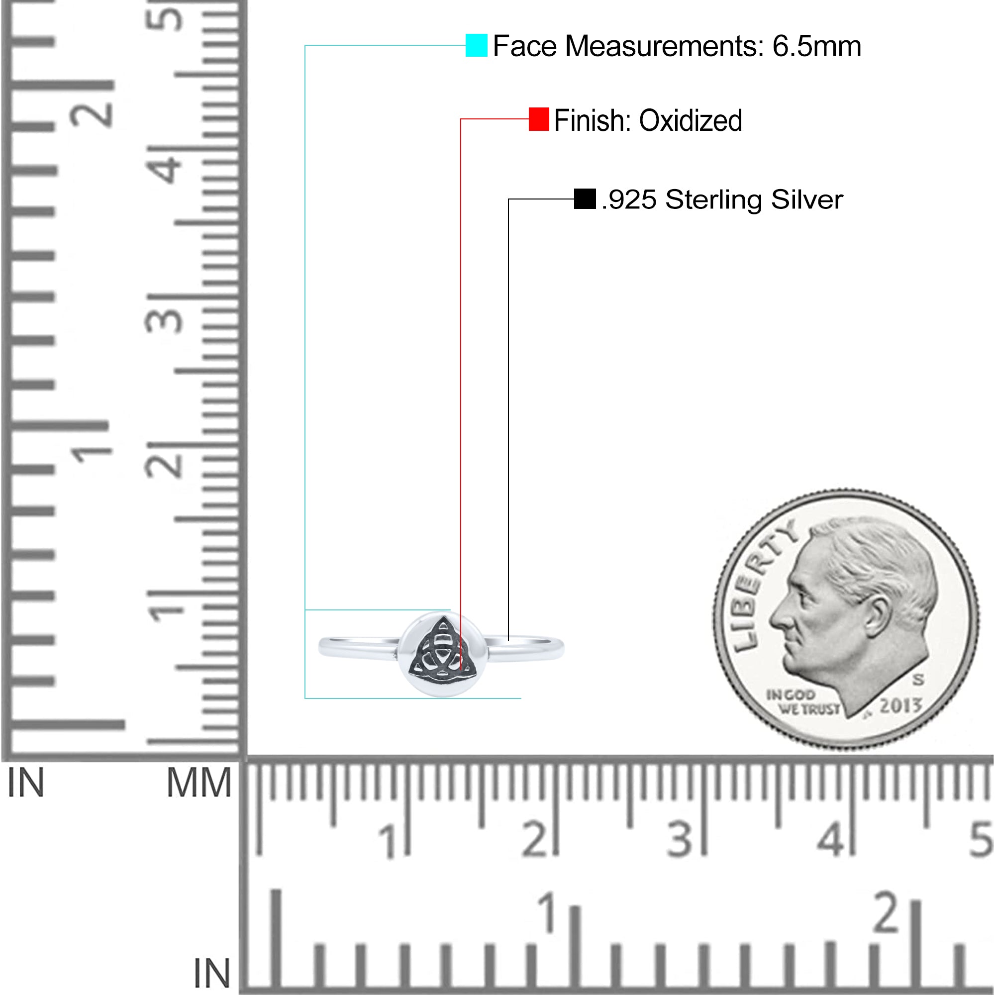 Irish Wicca Celtic Infinity Knot Triquetra Ancient Pagan Symbol Traditional Oxidized Band Solid 925 Sterling Silver Thumb Ring (6.5mm)
