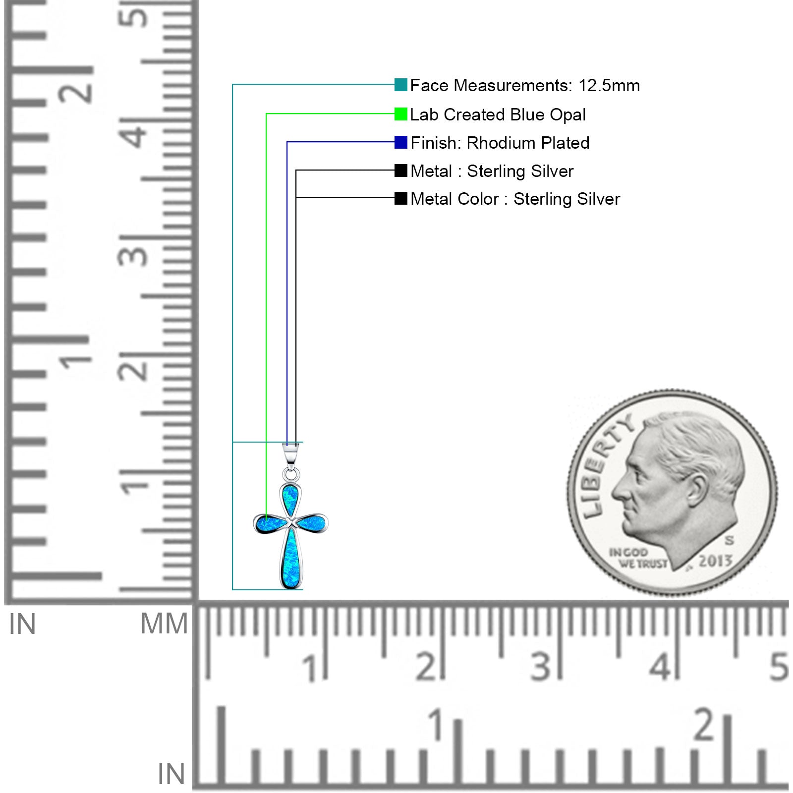 Lab Created Blue Opal Cross Pendant Rolo Chain Necklace 925 Sterling Silver