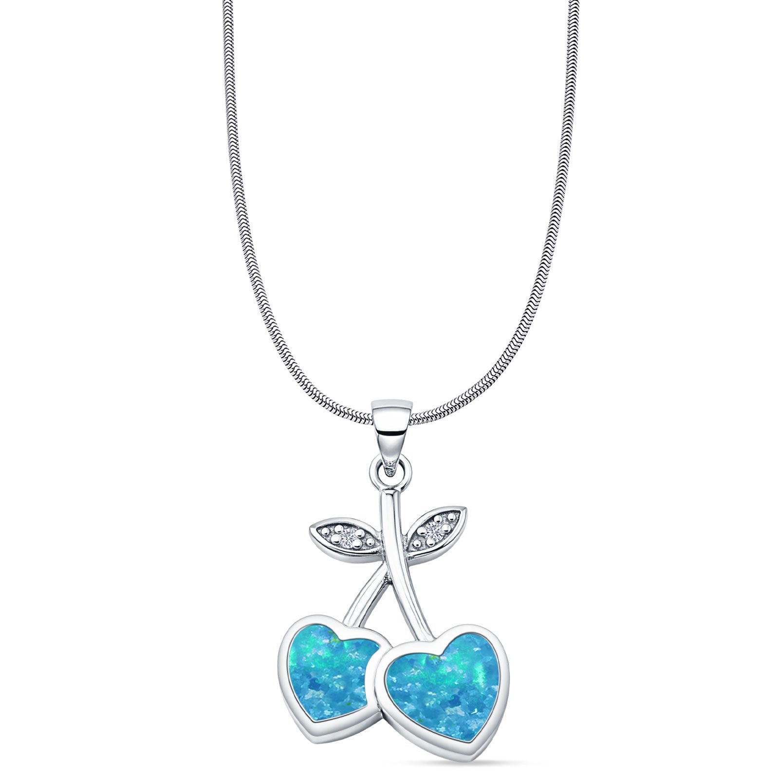 Style: Lab Created Blue Opal & CZ Heart Pendant Necklace