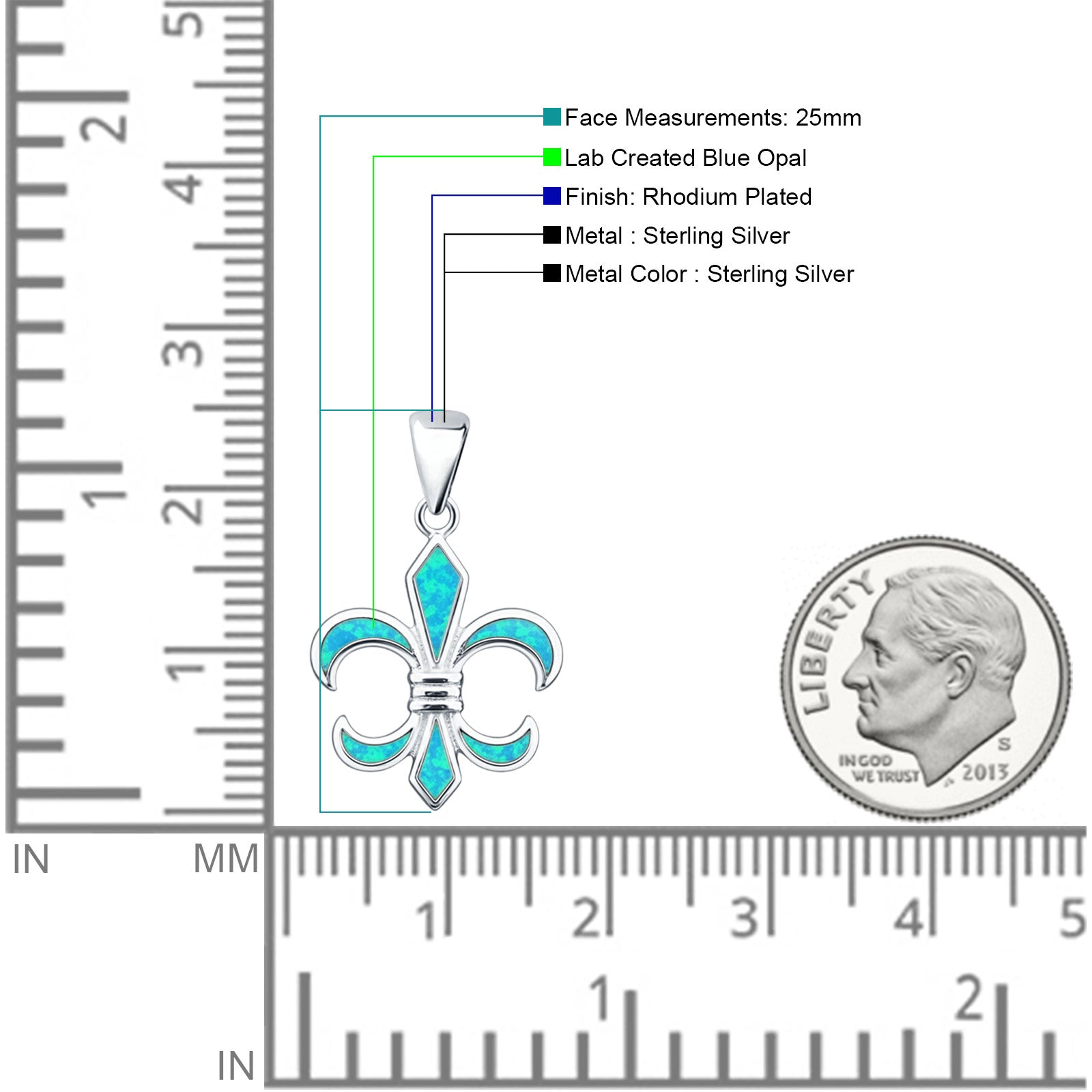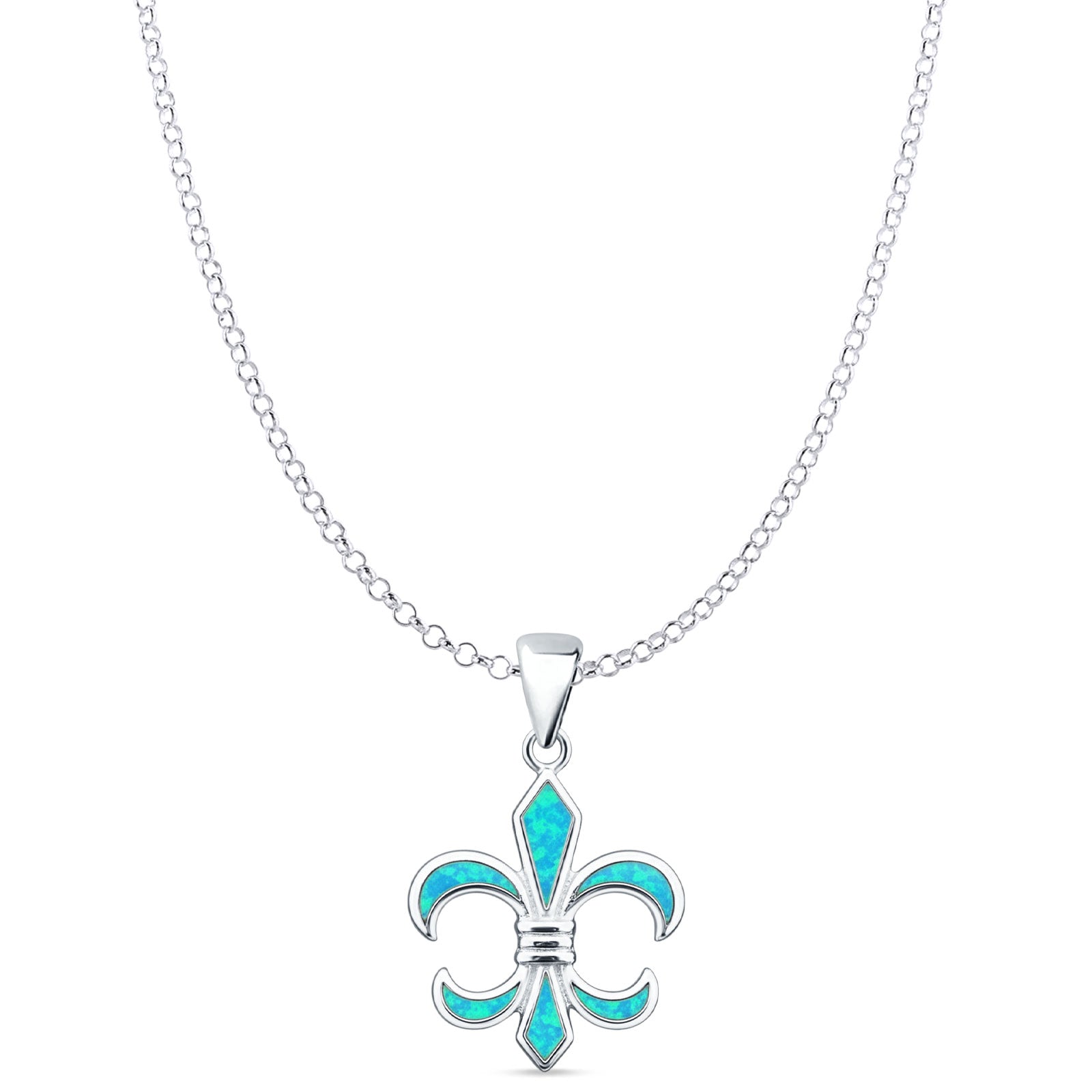 Style: Lab Created Blue Opal Fleur De Lis Pendant Necklace