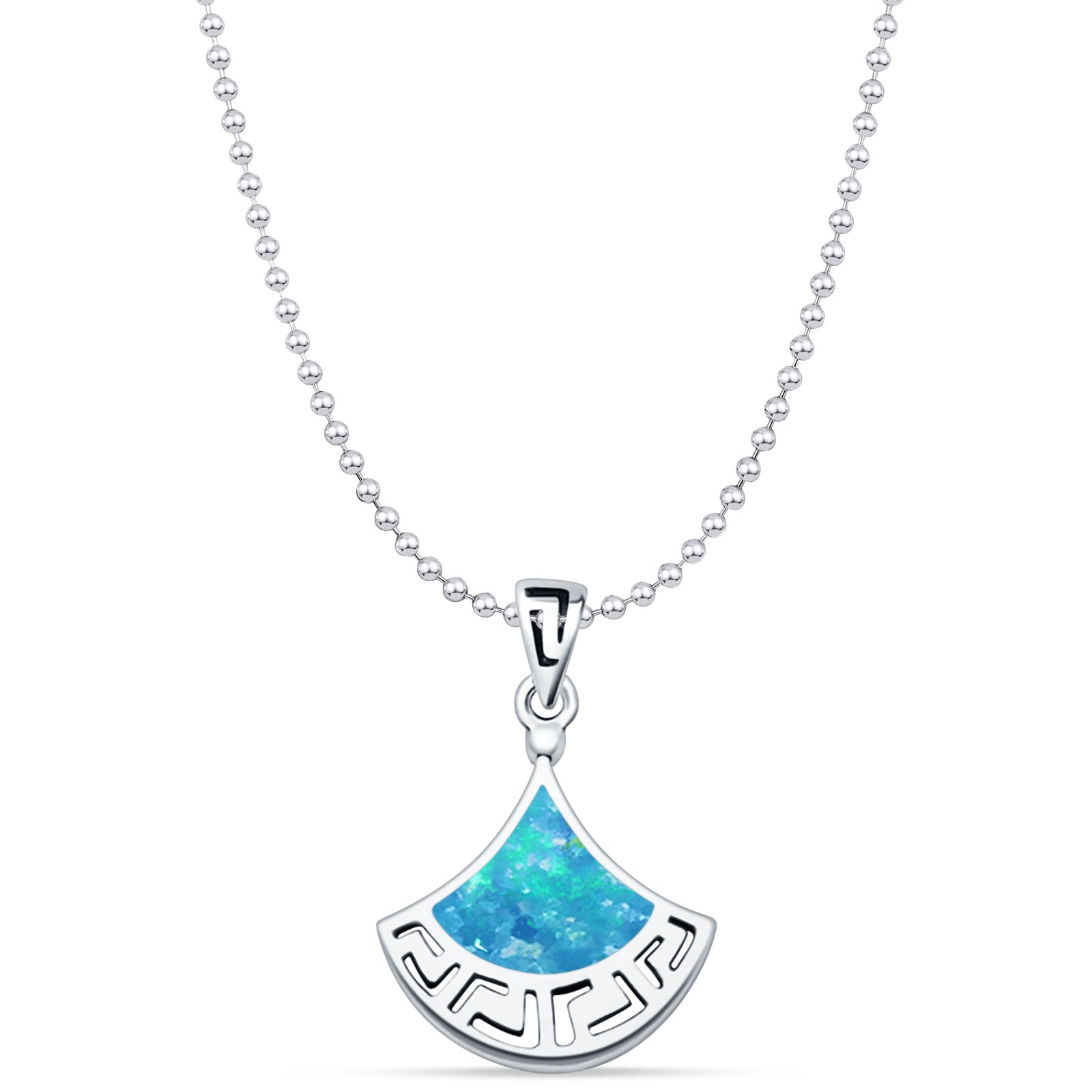 Lab Created Blue Opal Greek Key Pendant Bead Chain Necklace 925 Sterling Silver
