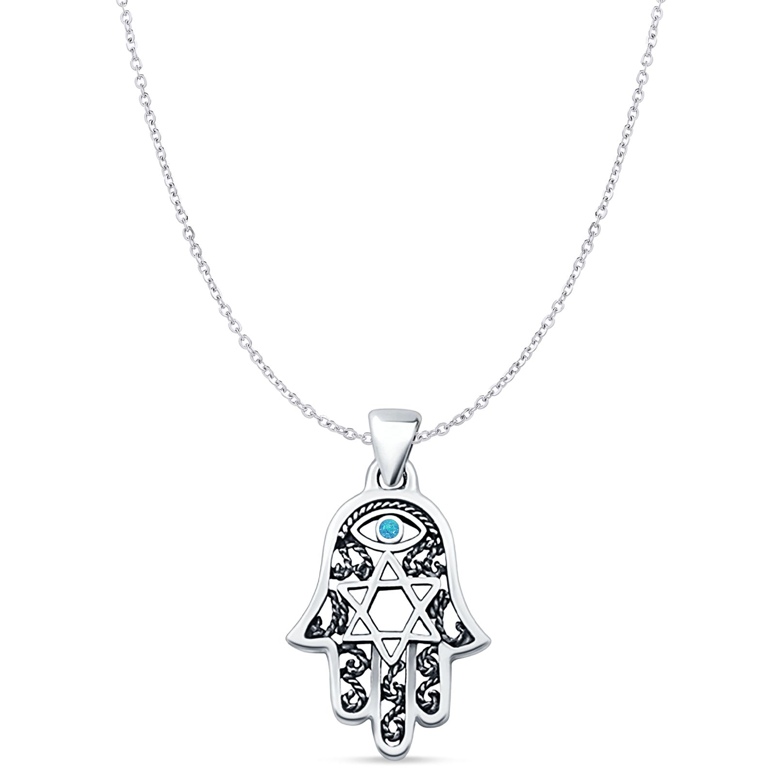 Style: Lab Created Blue Opal Hamsa & Star Of David Pendant Necklace