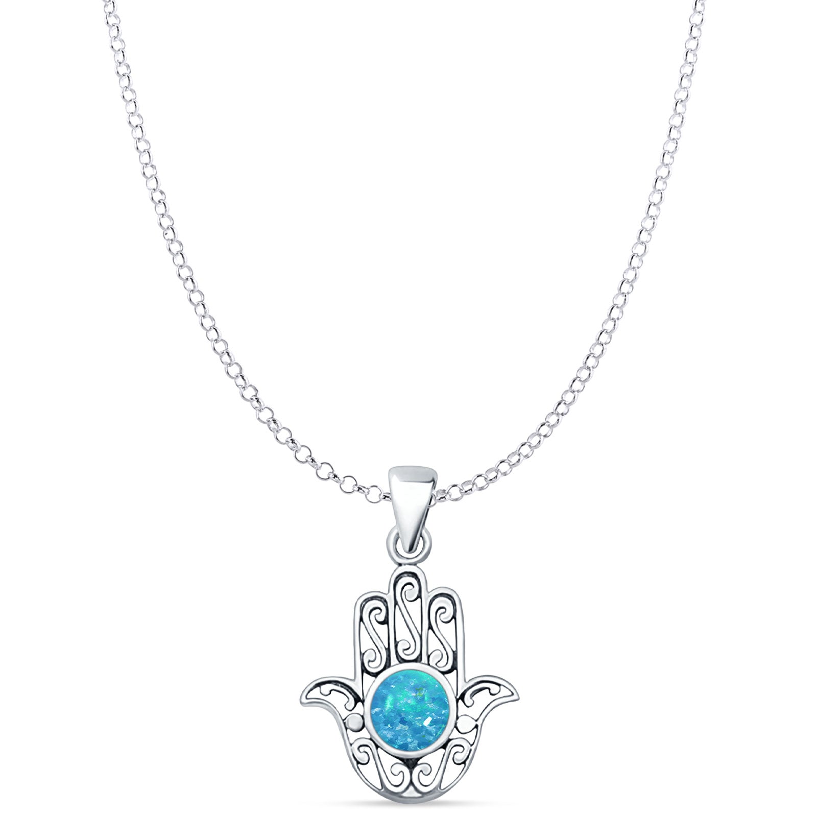 Style: Lab Created Blue Opal Hand Of Hamsa Pendant Necklace