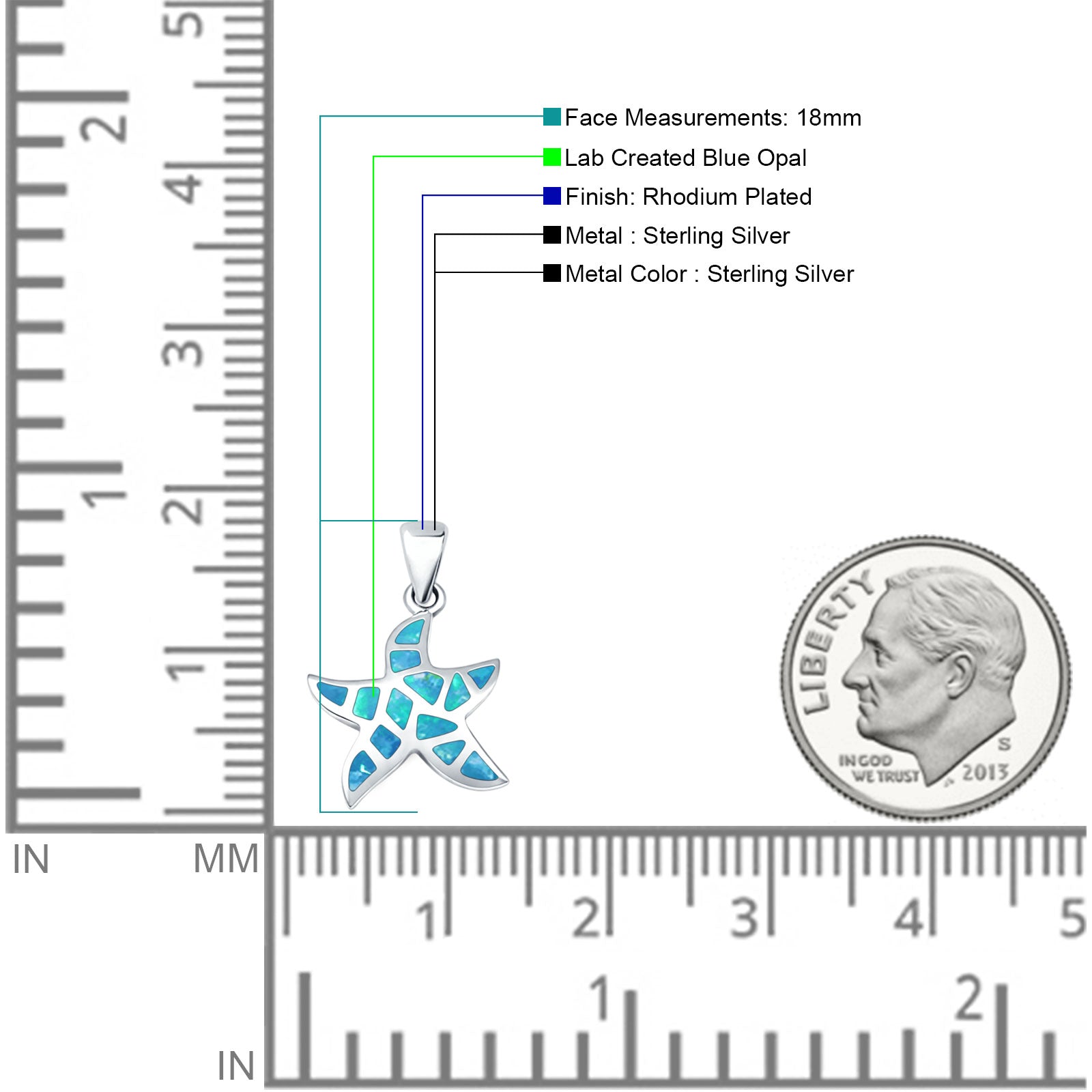 Lab Created Blue Opal Starfish Pendant Cable Chain Necklace 925 Sterling Silver